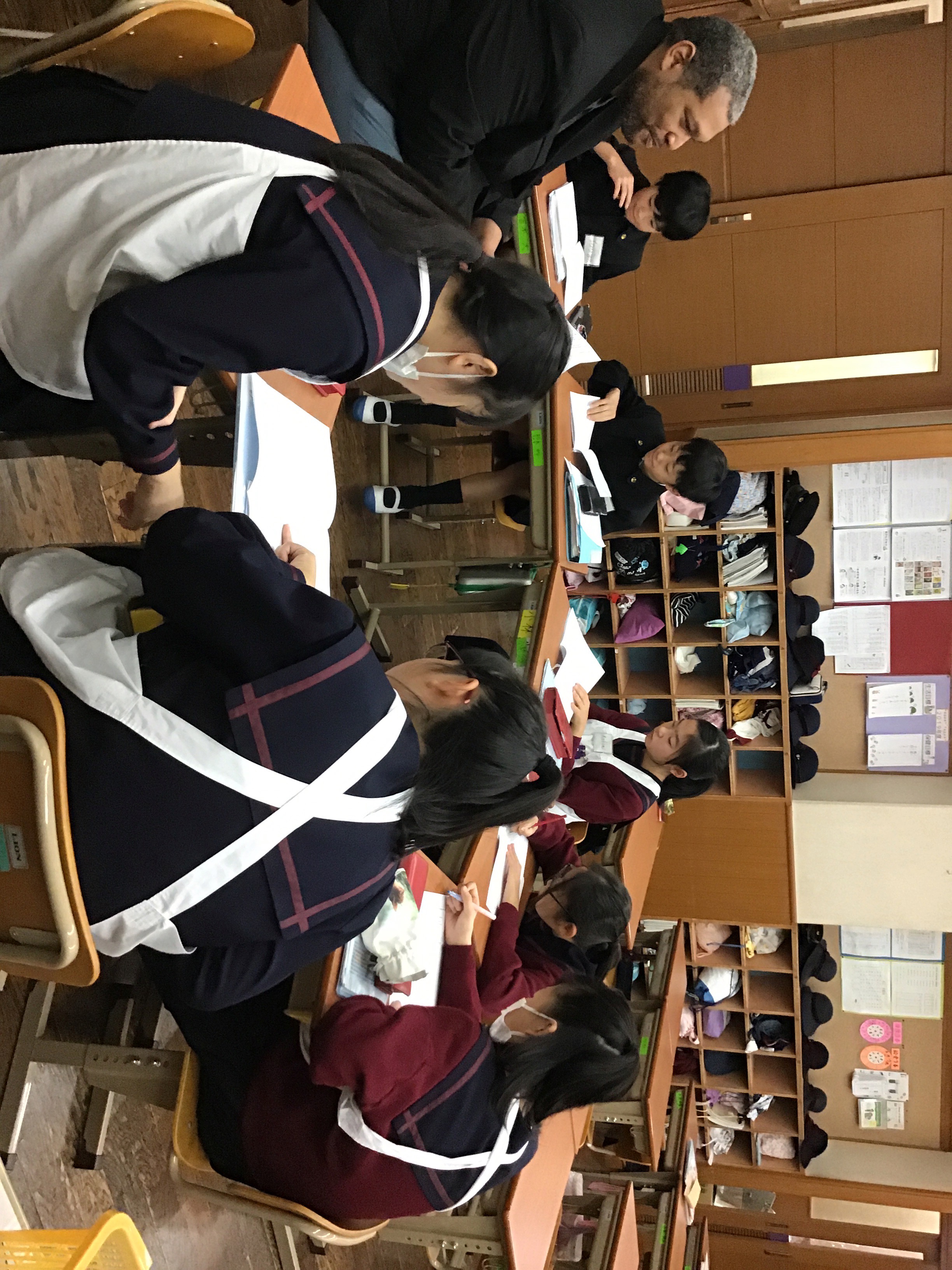長さを測ったり、切り込みを入れる作業を全て英語で行うので、なかなか大変な作業ですが、みんなワクワクした気持ちで楽しそうに進めていきます。