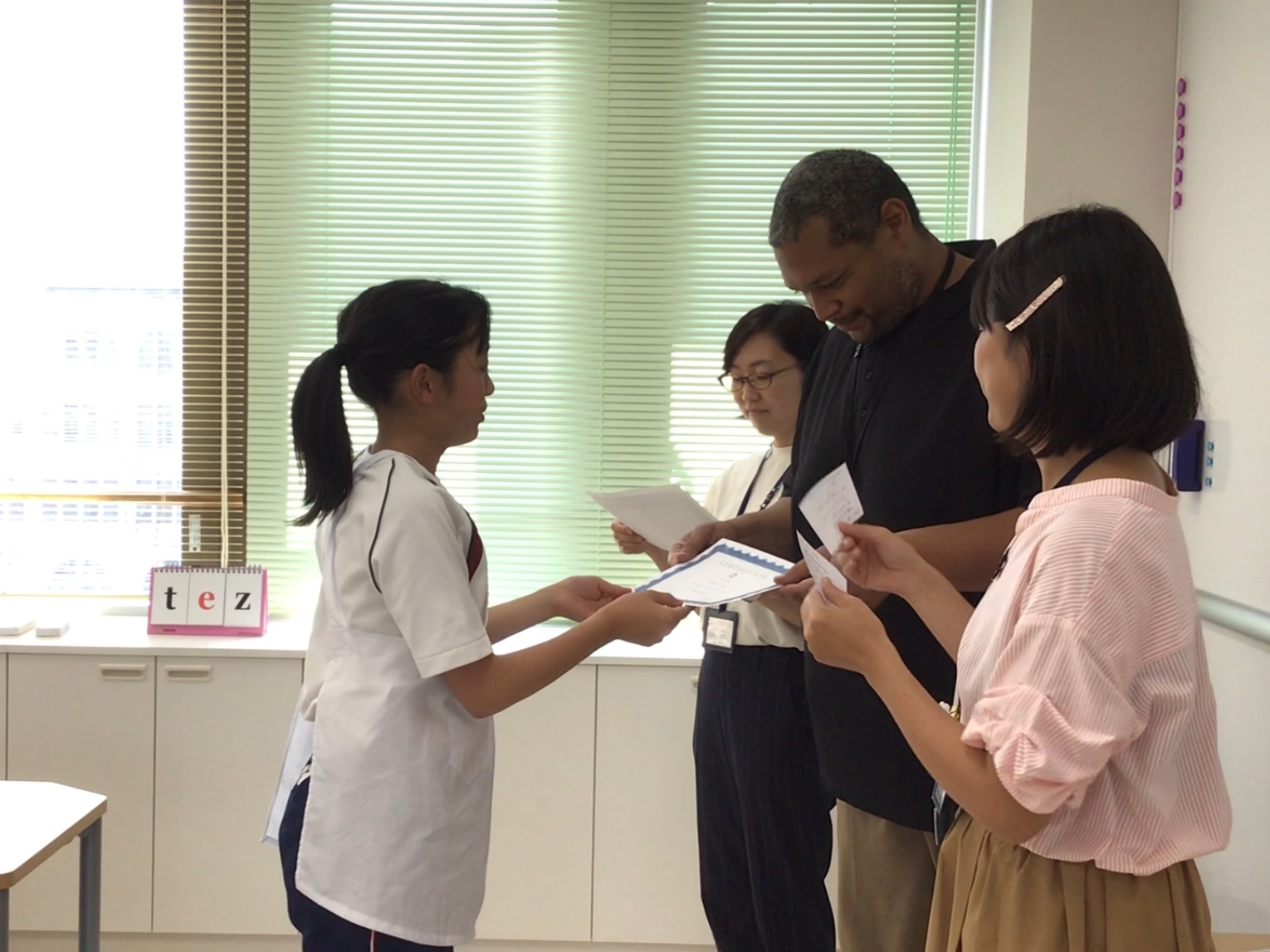 大きなホールで緊張している様子も見られましたが、2人とも夏休みの間懸命に練習してきた成果をしっかりと発揮してくれました。発音やイントネーション、声の出し方、そして聞いている方々にどのように伝えるかという表現力。細かいところまで丁寧に発表できたと思います。
