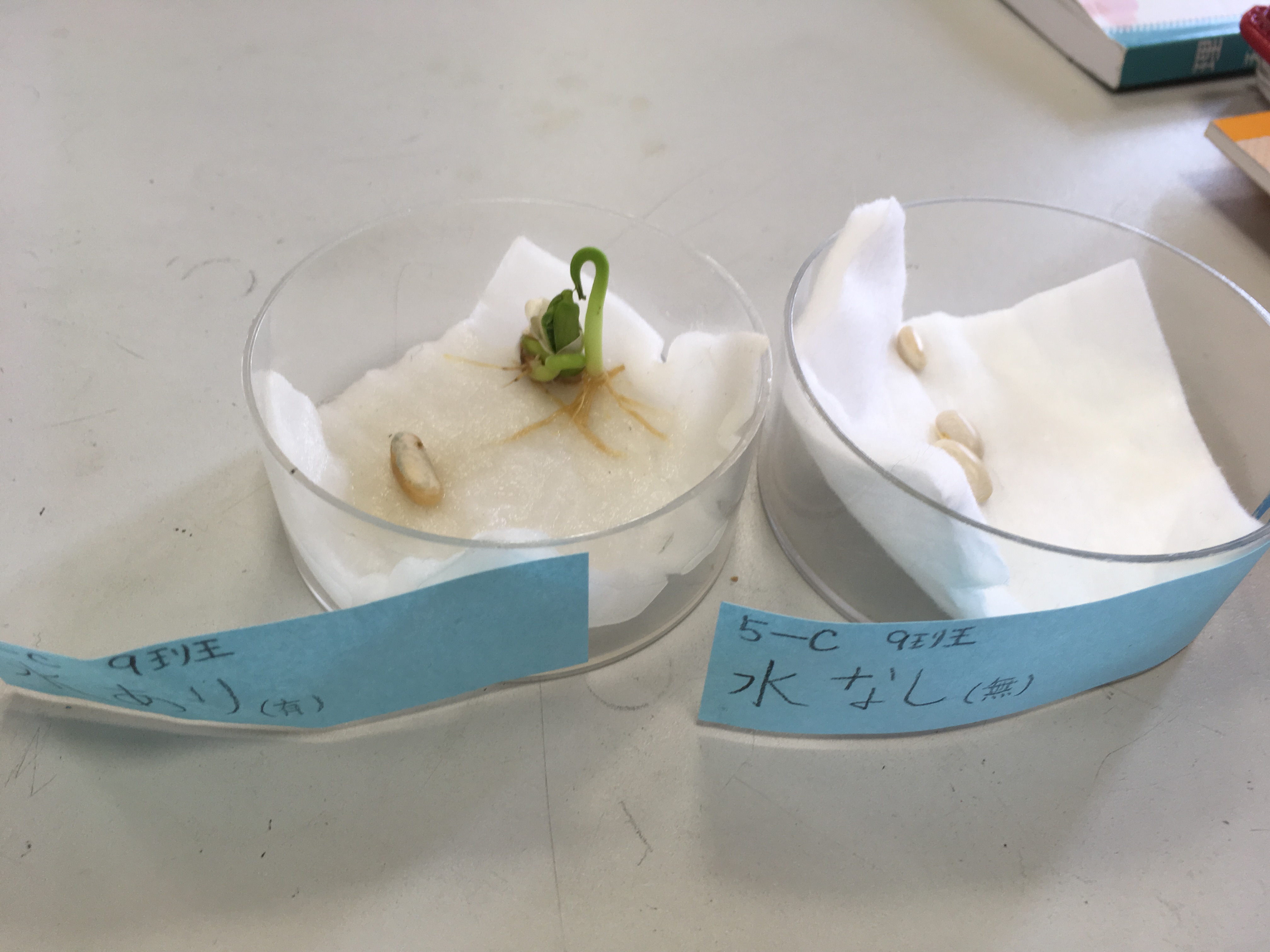 結果をクラスで共有すると、種子を発芽させるために必要な条件が3つあることがわかりました!