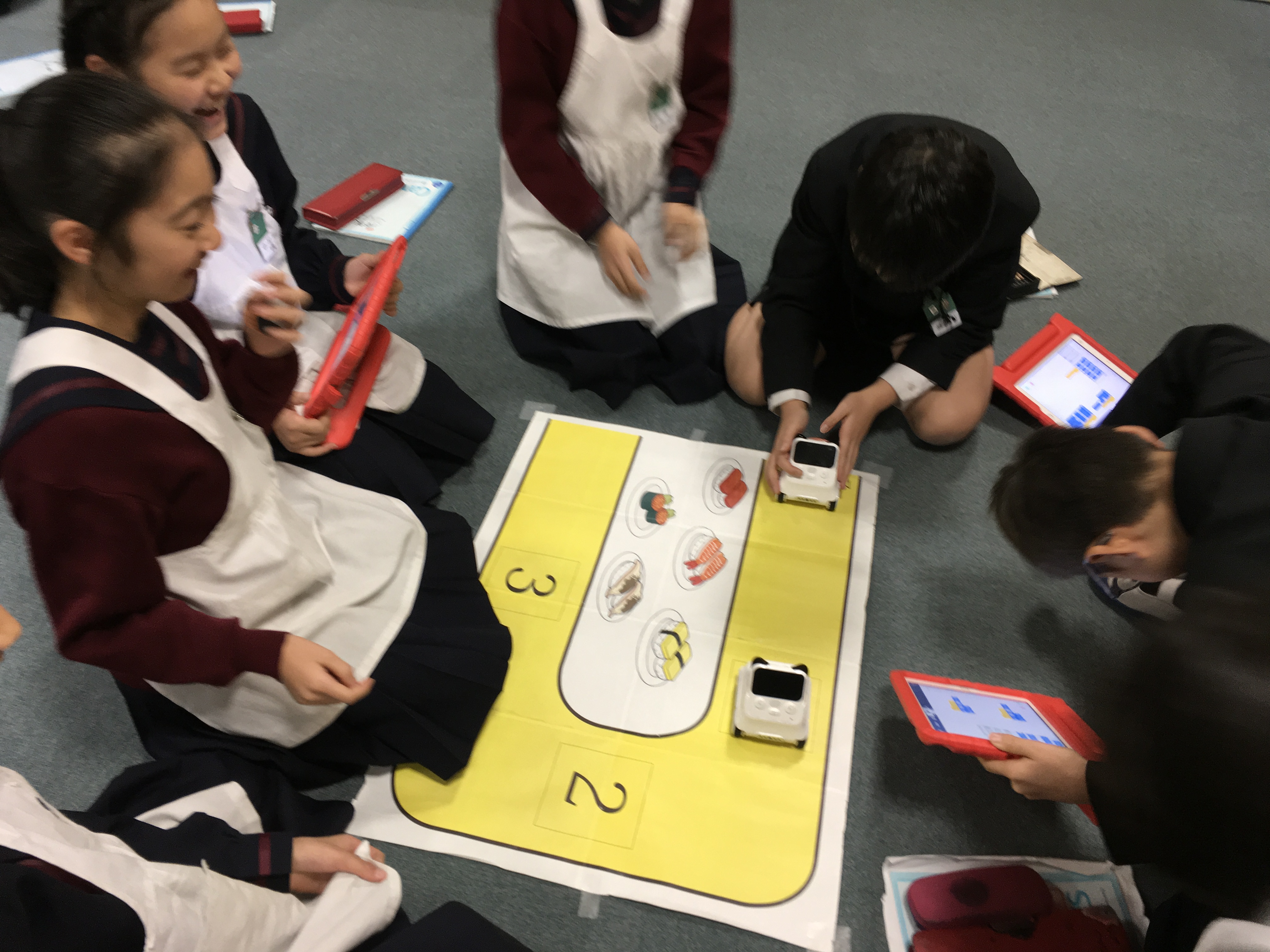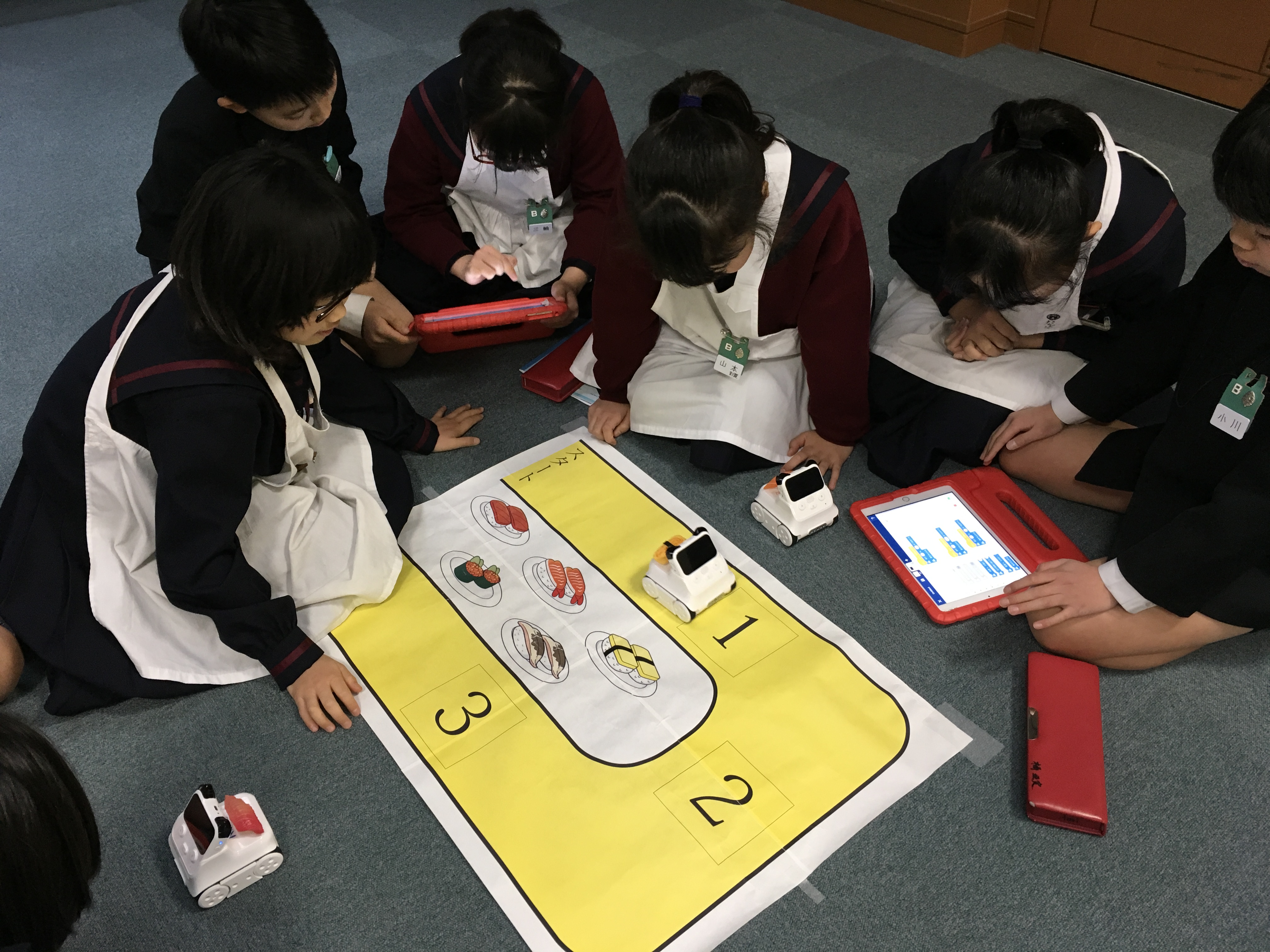 2年生でキャタピラーロボットを使って、プログラミングの授業を行いました。 真っ直ぐ進む、右に曲がる、左に曲がるのパーツを組み合わせて、与えられたミッションをクリアする為に、グループで色々な意見を出し合いました。 何度もトライアンドエラーを繰り返しながら、ミッションをクリアすると歓声が沸いていました。