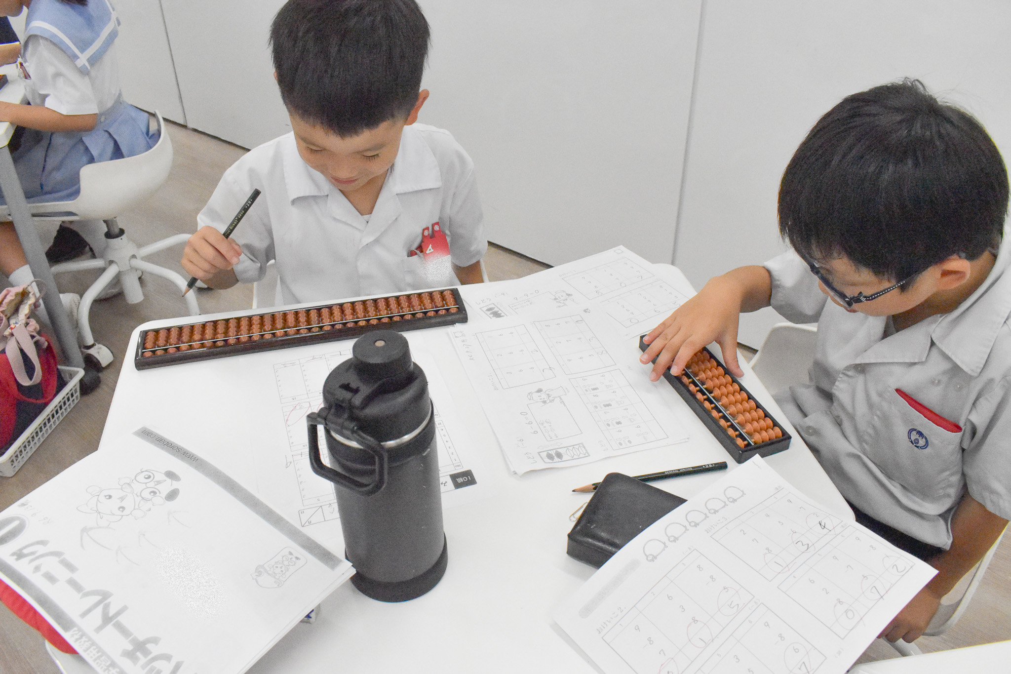 暗算で解ける簡単な計算もいざそろばんでやってみると苦戦している子どもたちが多かったのですが、たくさん問題を解くうちに段々スピードもあがりスラスラ解ける児童が増えてきました。