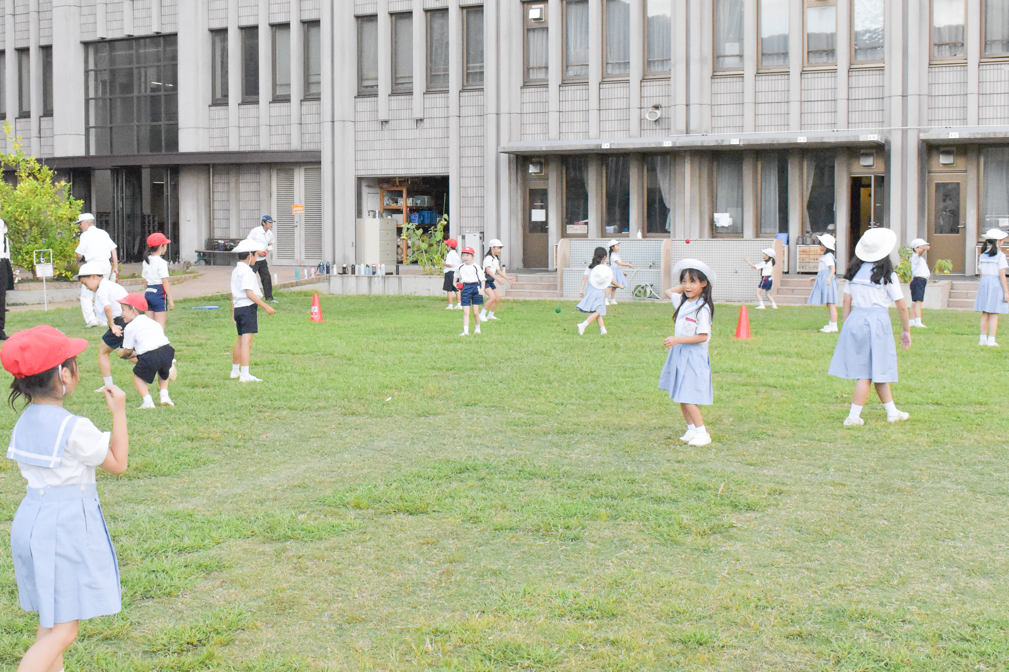 夏の間は集会室で運動遊びをやっていたのですが秋らしい気候になってきたので、外での運動遊びを再開しました。