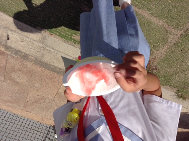 職員室から、運動場を見てみると、行列ができていました。 近くに行き見てみると、子どもたちは、先生たちにかき氷を作ってもらい、美味しそうに食べていました。 話を聞くと、今日はTASC (帝塚山放課後クラブ)の夏祭りということでした。 素敵な夏の思い出をつくってくださいね。