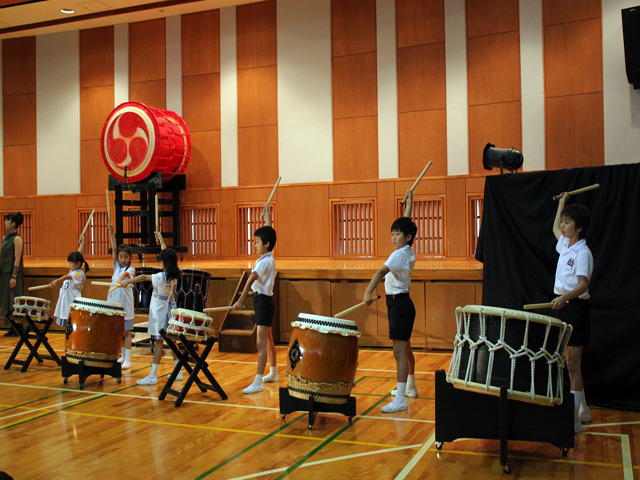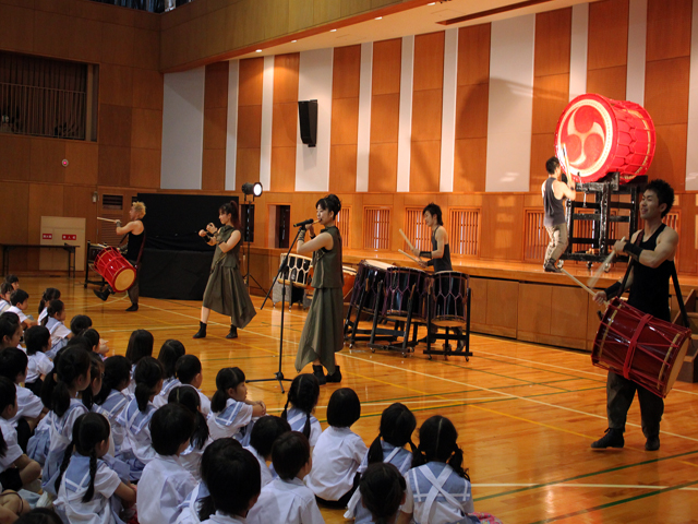 目の前で和太鼓の演奏が始まると、児童達は食い入るように和太鼓の世界に引き込まれました。