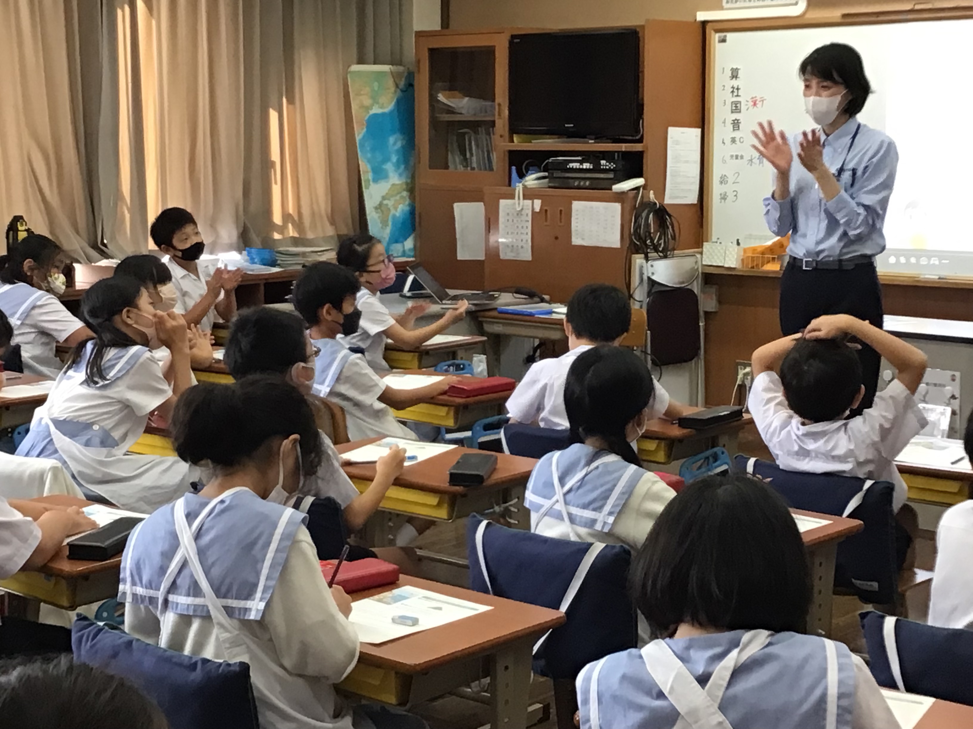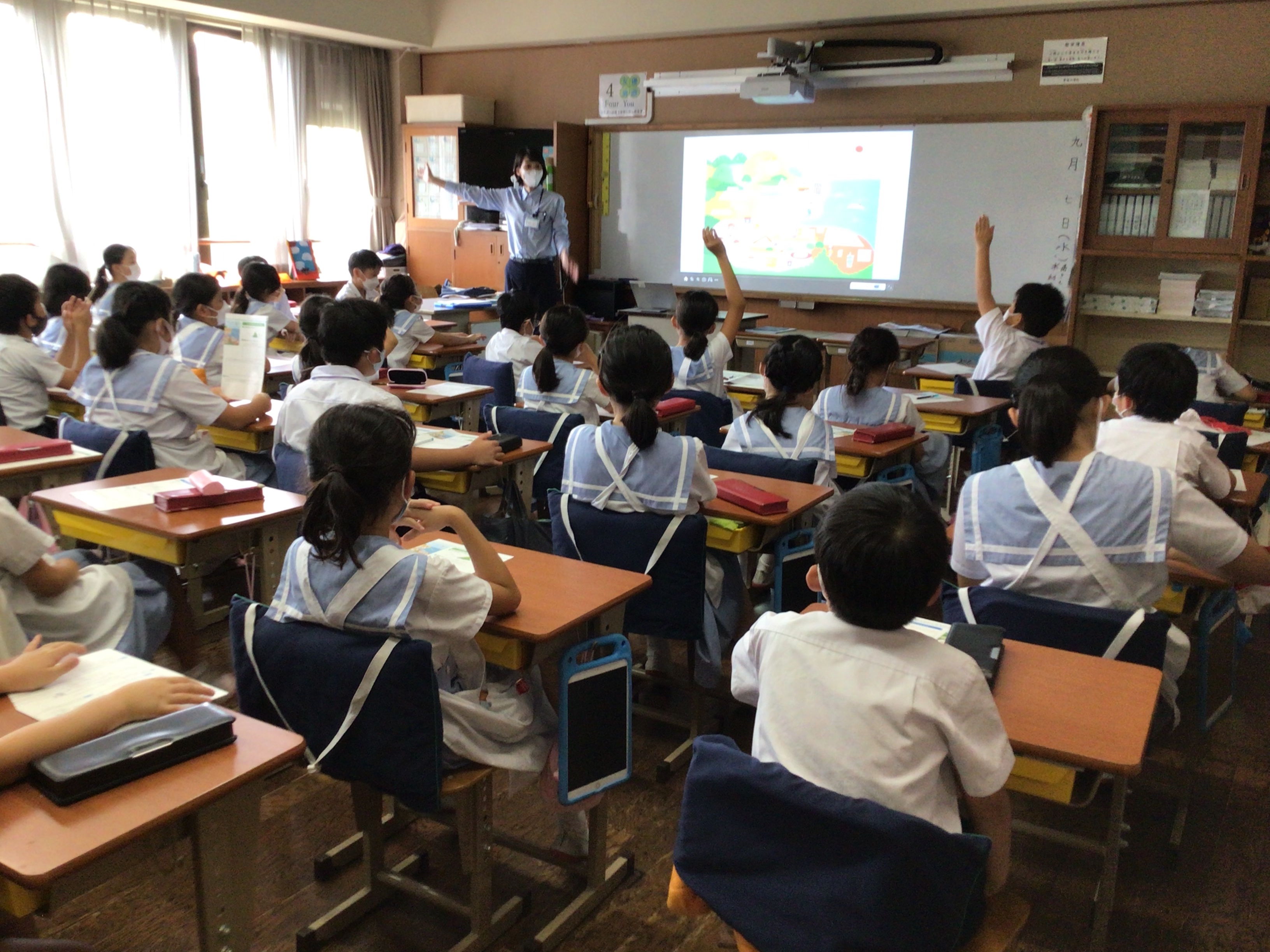 国語科で、「どうぶつ園のじゅうい」という単元を学習しています。その一環として、天王寺動物園の教育普及担当の職員の方に来ていただき、「獣医さんのお仕事」についてのお話を聞きました。