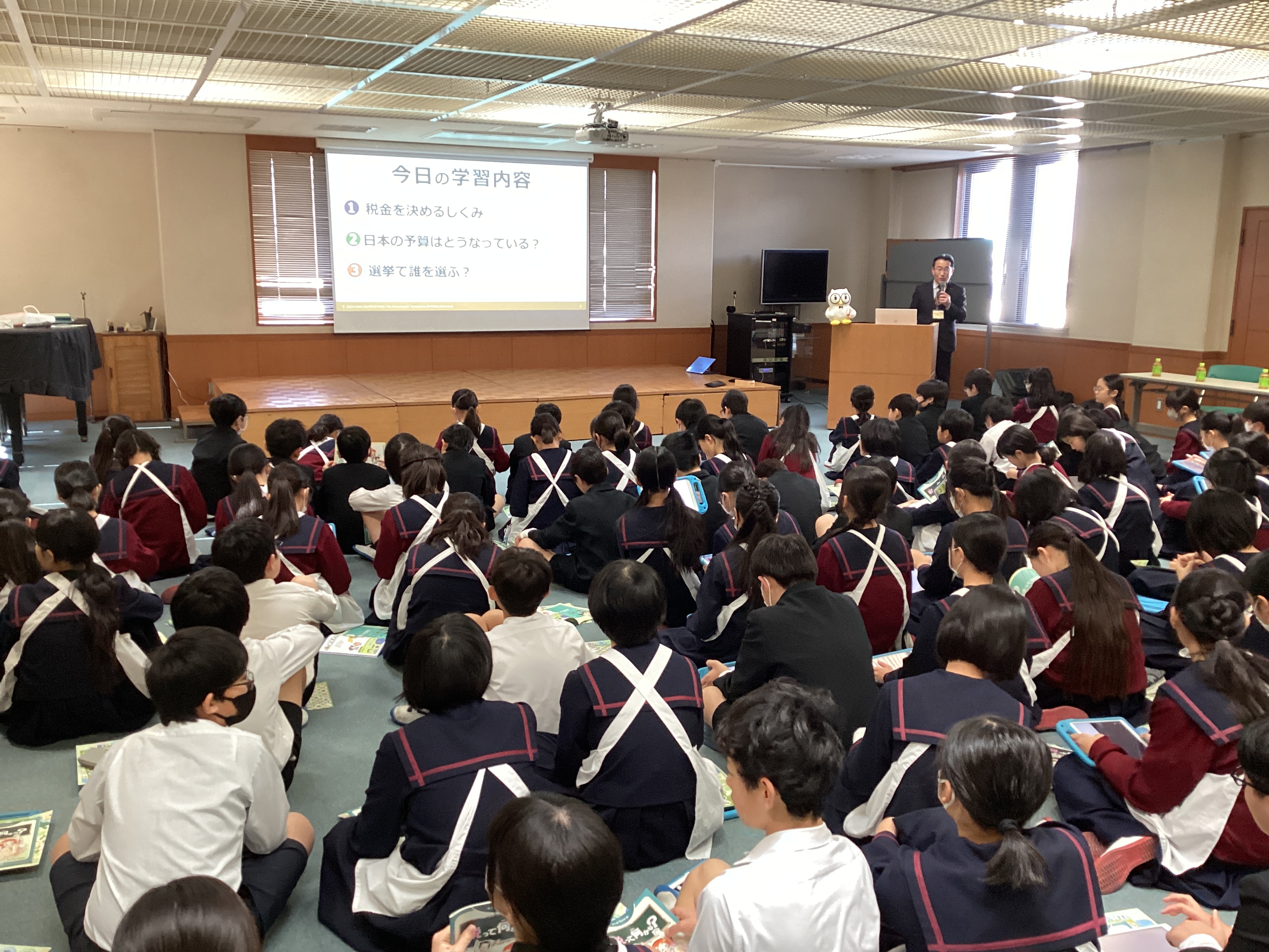 本日、社会科の授業の一環で、税について講師の方に来ていただき、出前授業を実施しました。