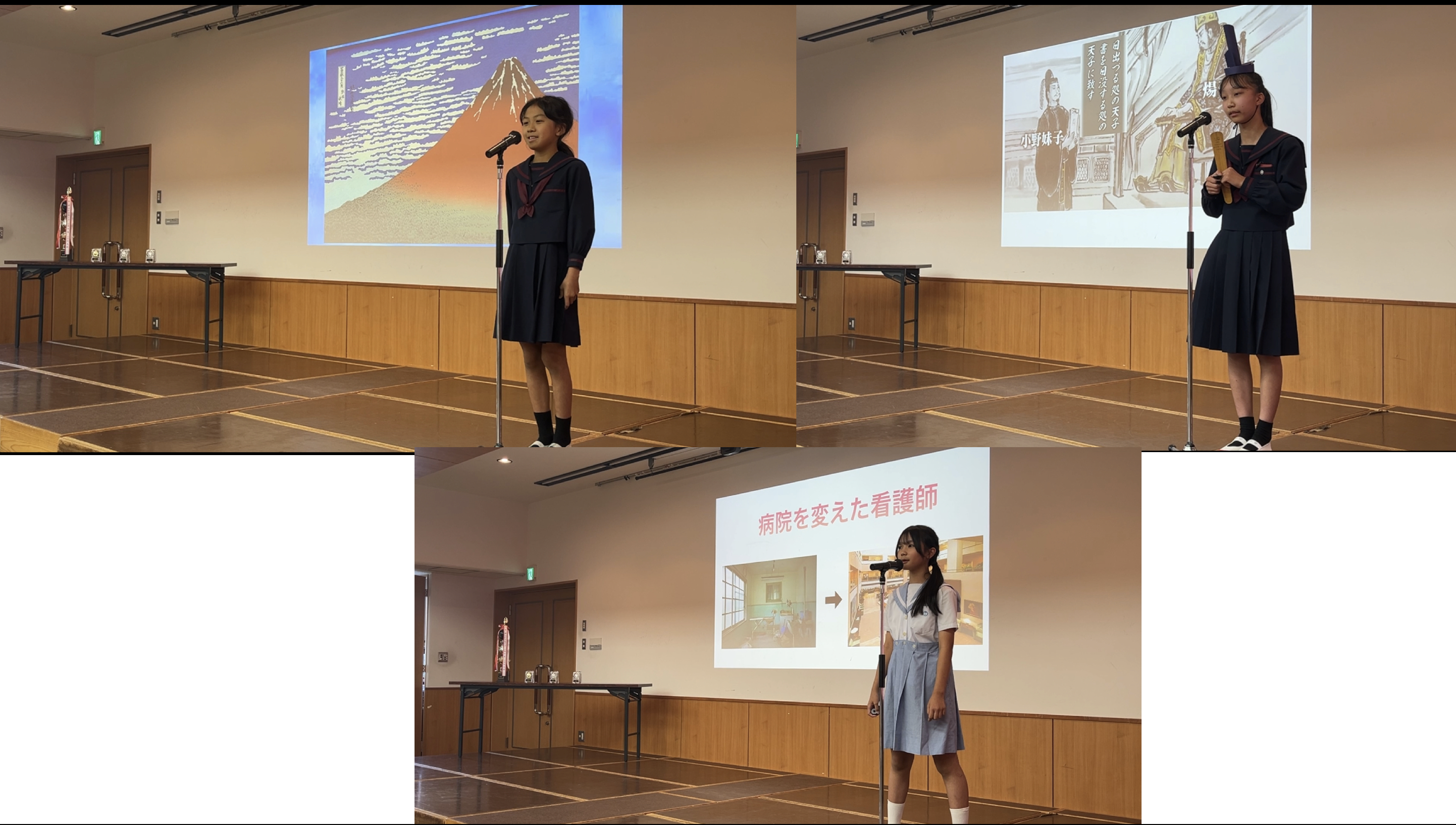 6年生を対象とし、7名の代表児童が歴史上の人物になりきり、プレゼンテーションを行いました。