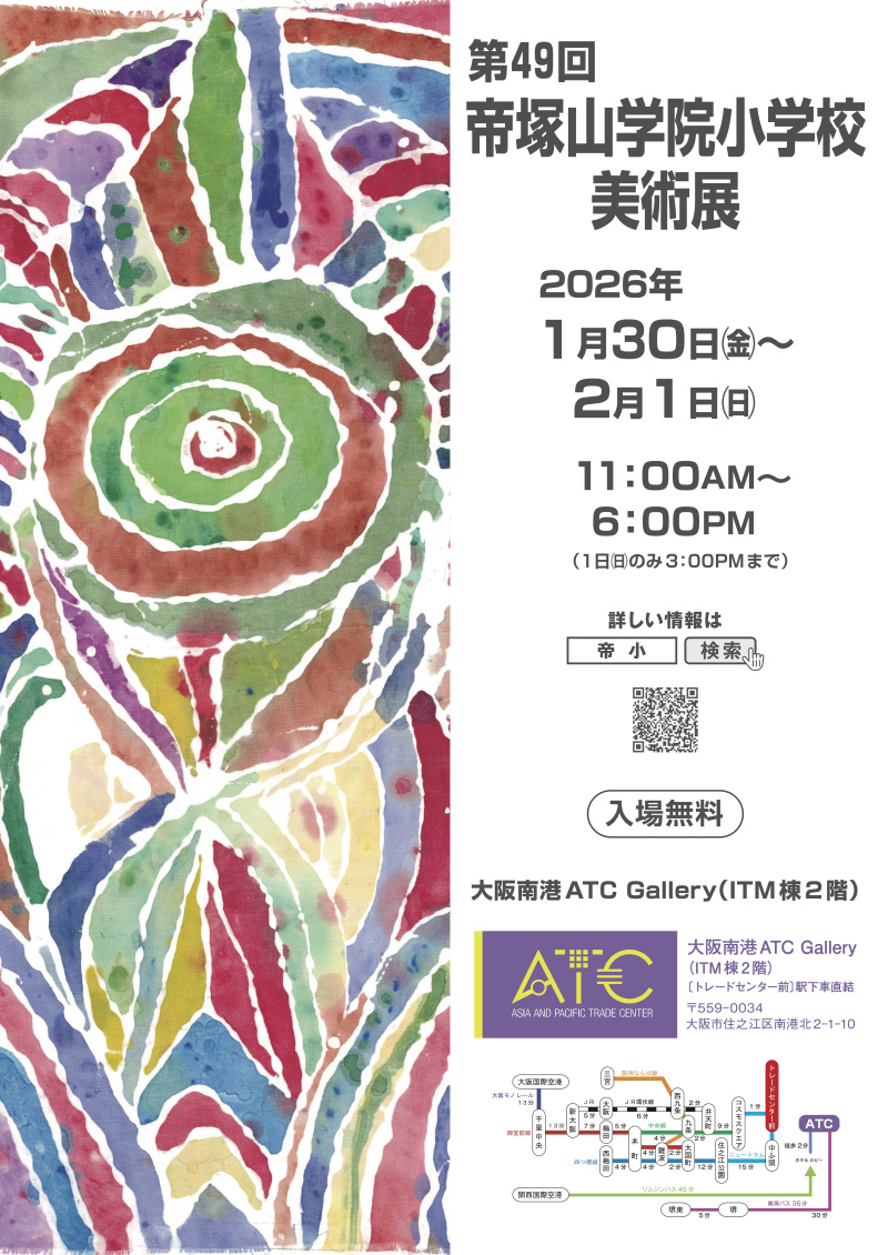 第49回帝塚山学院小学校美術展が「ATCギャラリー」にて行われます。
