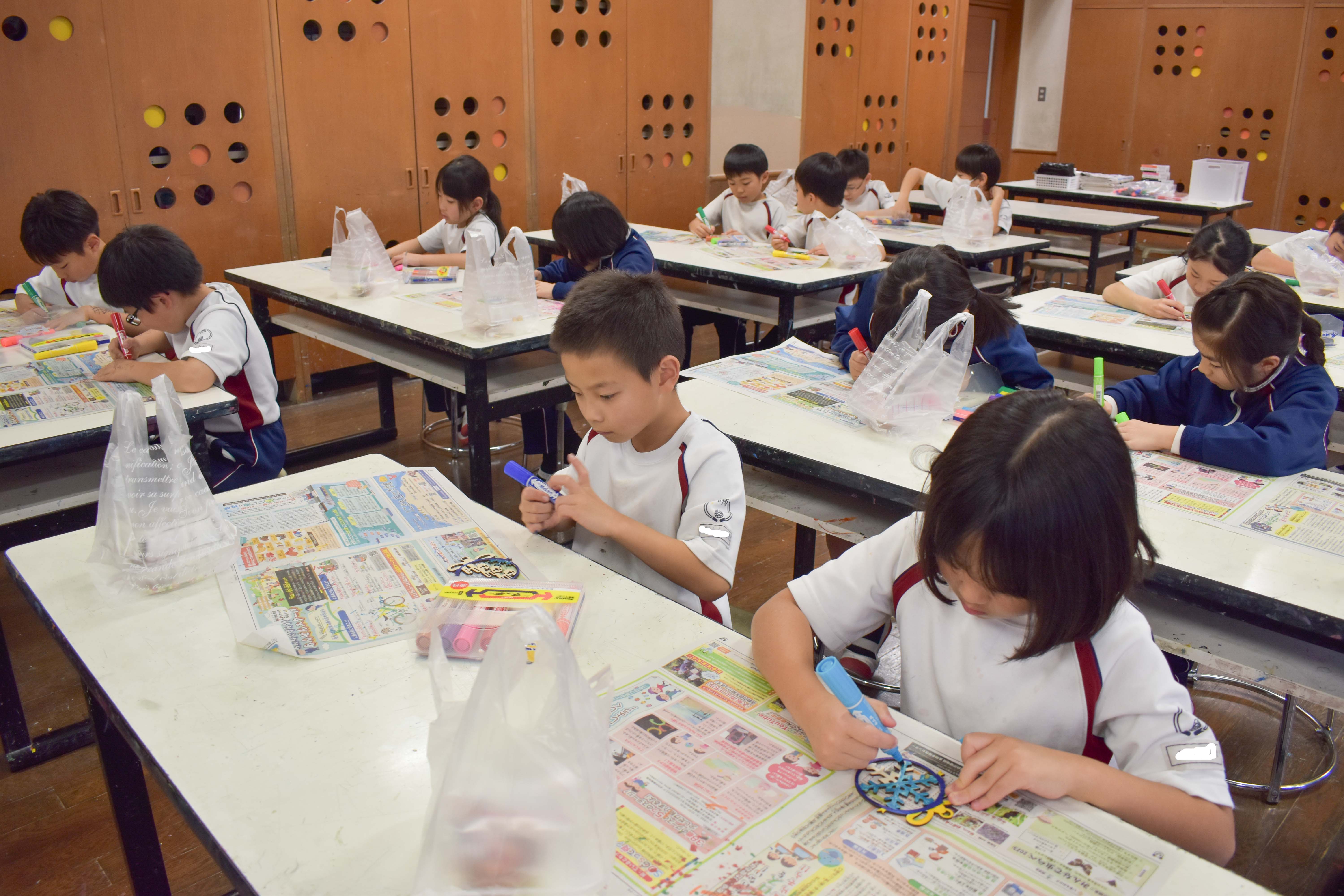 オーナメントづくりでは木製のツリーやトナカイなどのオーナメントに好きなように色をつけました。