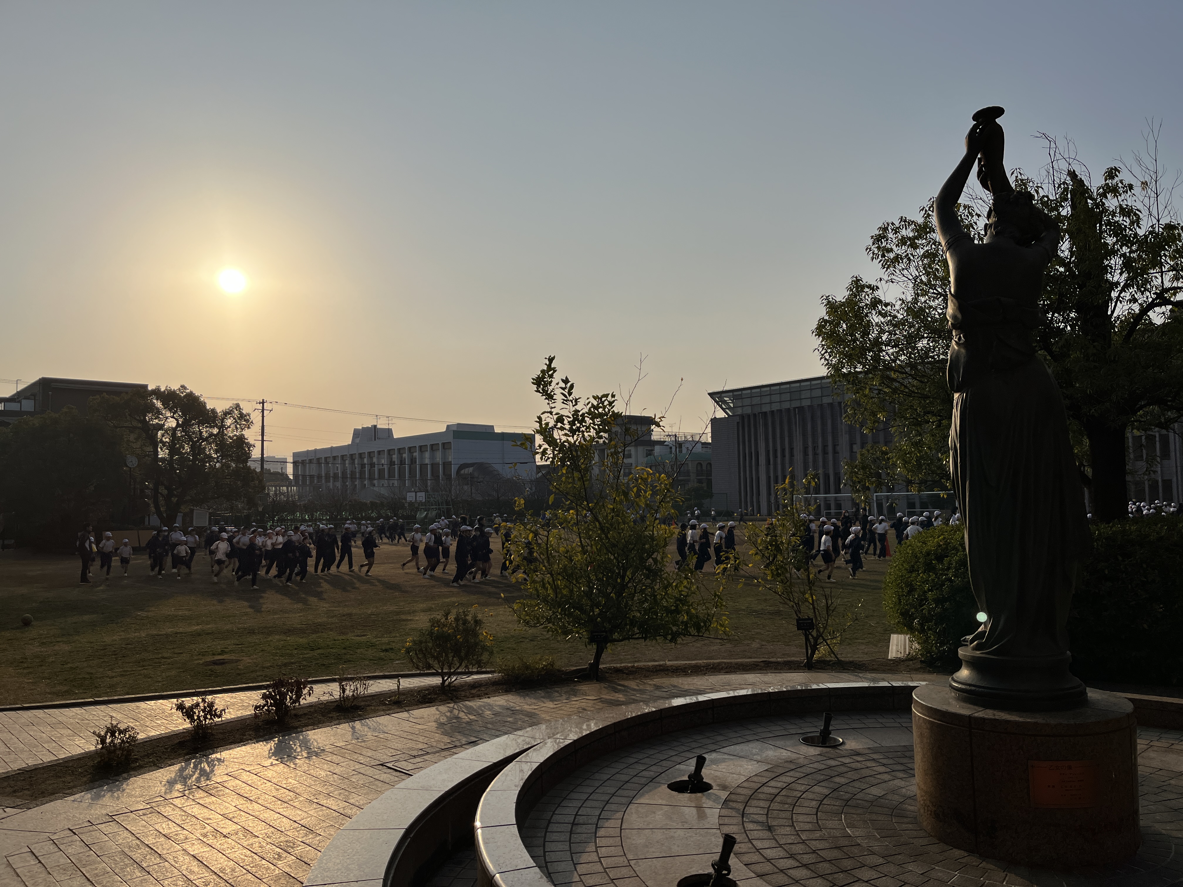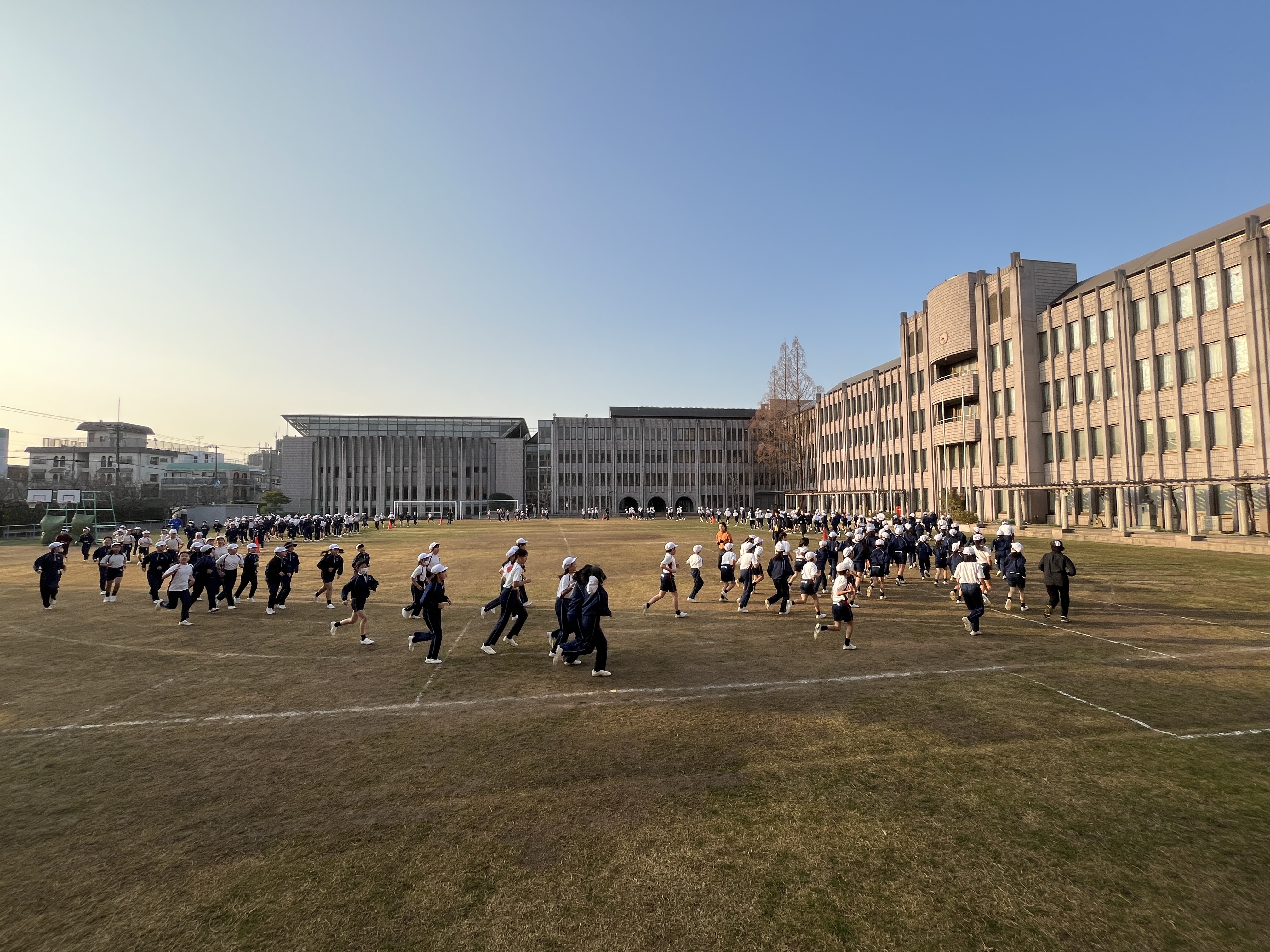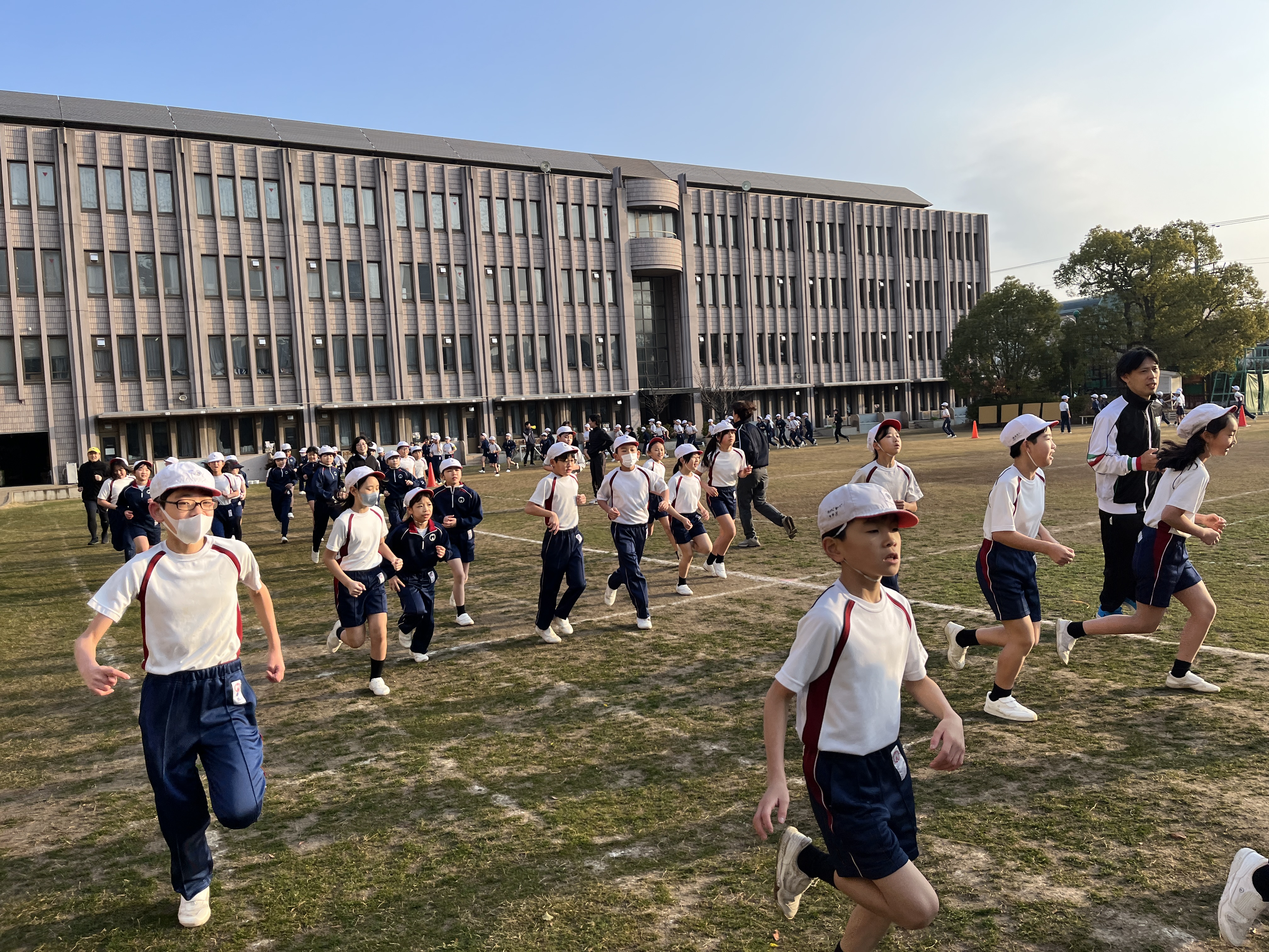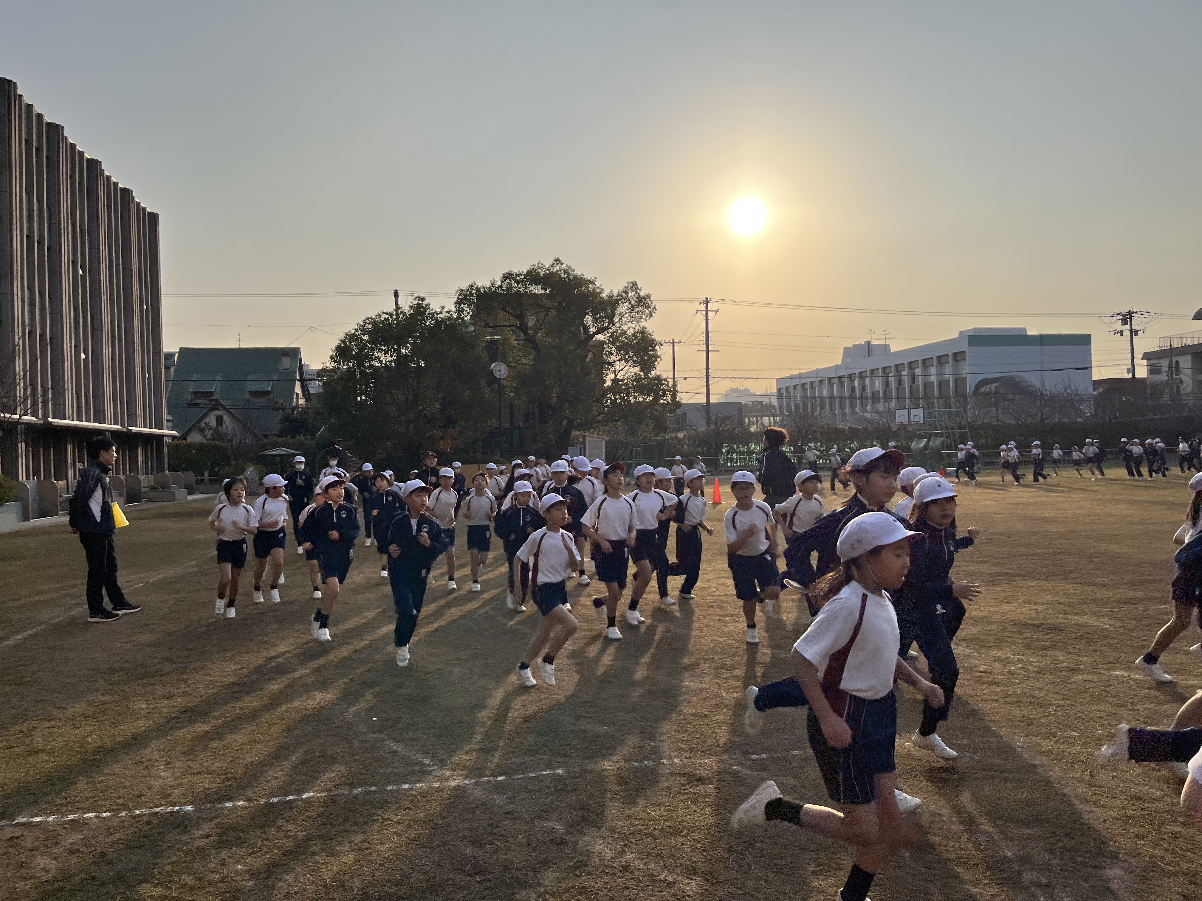この時期、本校では早朝の澄んだ空気の中、耐寒駆け足に取り組んでいます。吐く息が白くなる寒さの中、子どもたちは体を動かして体力向上に励んでいます。