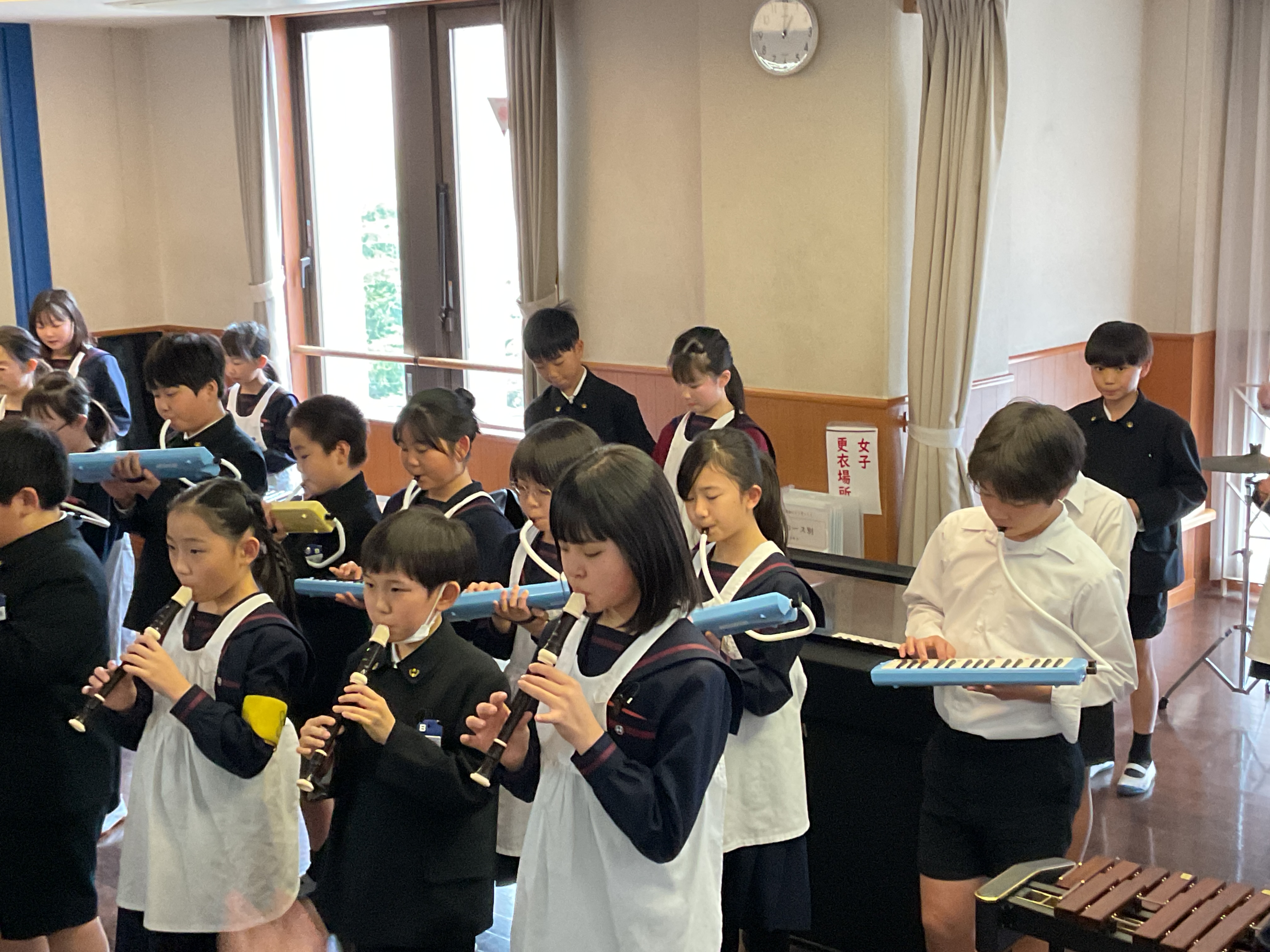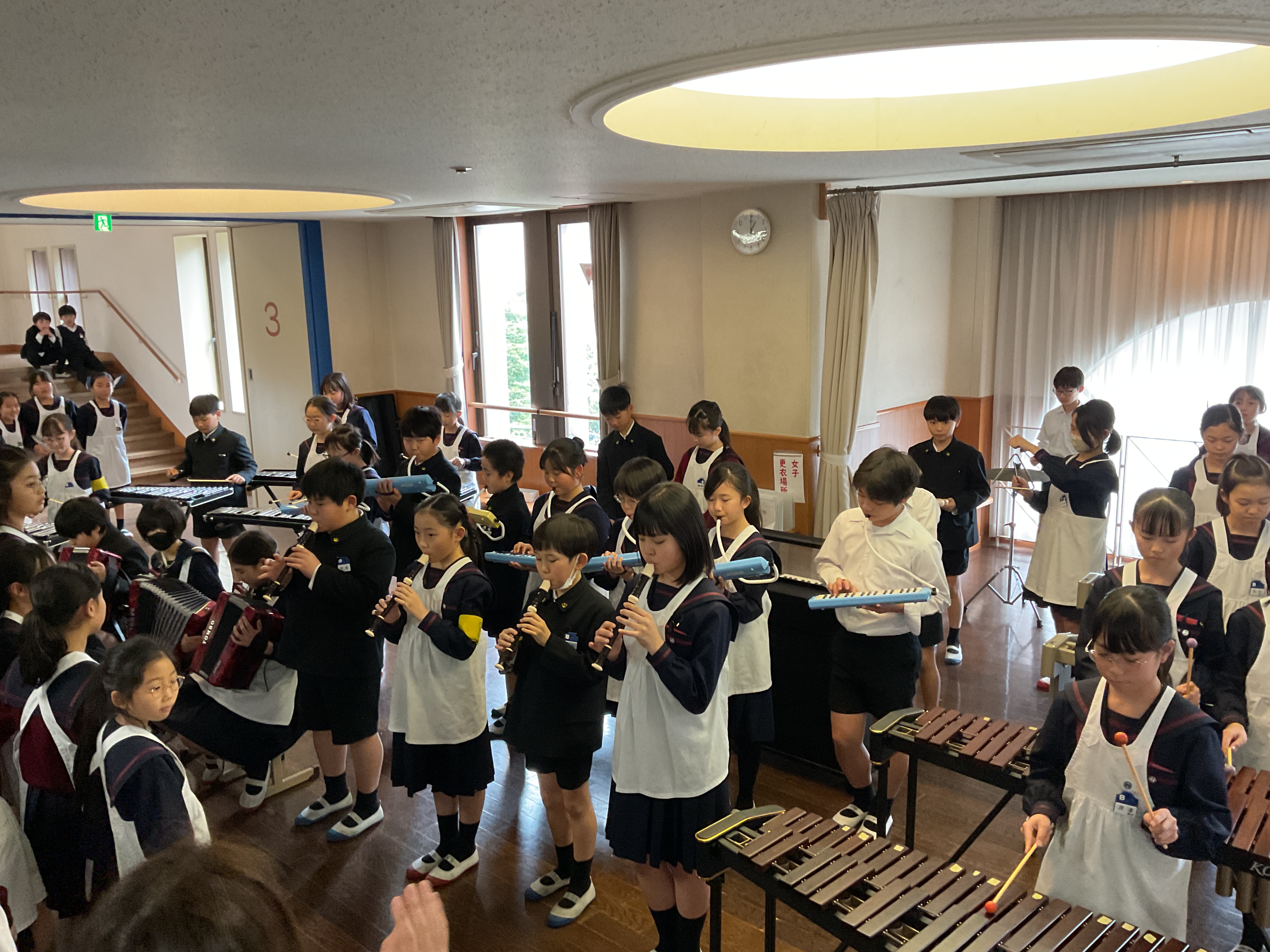 2026年03月03日(火) ランチタイムコンサート 1日目 5年生がランチタイムコンサートで、器楽合奏を披露しました。 1日目は5年B組の「アフリカン シンフォニー」でした。 初日にふさわしい立派な演奏を聴かせてくれました。