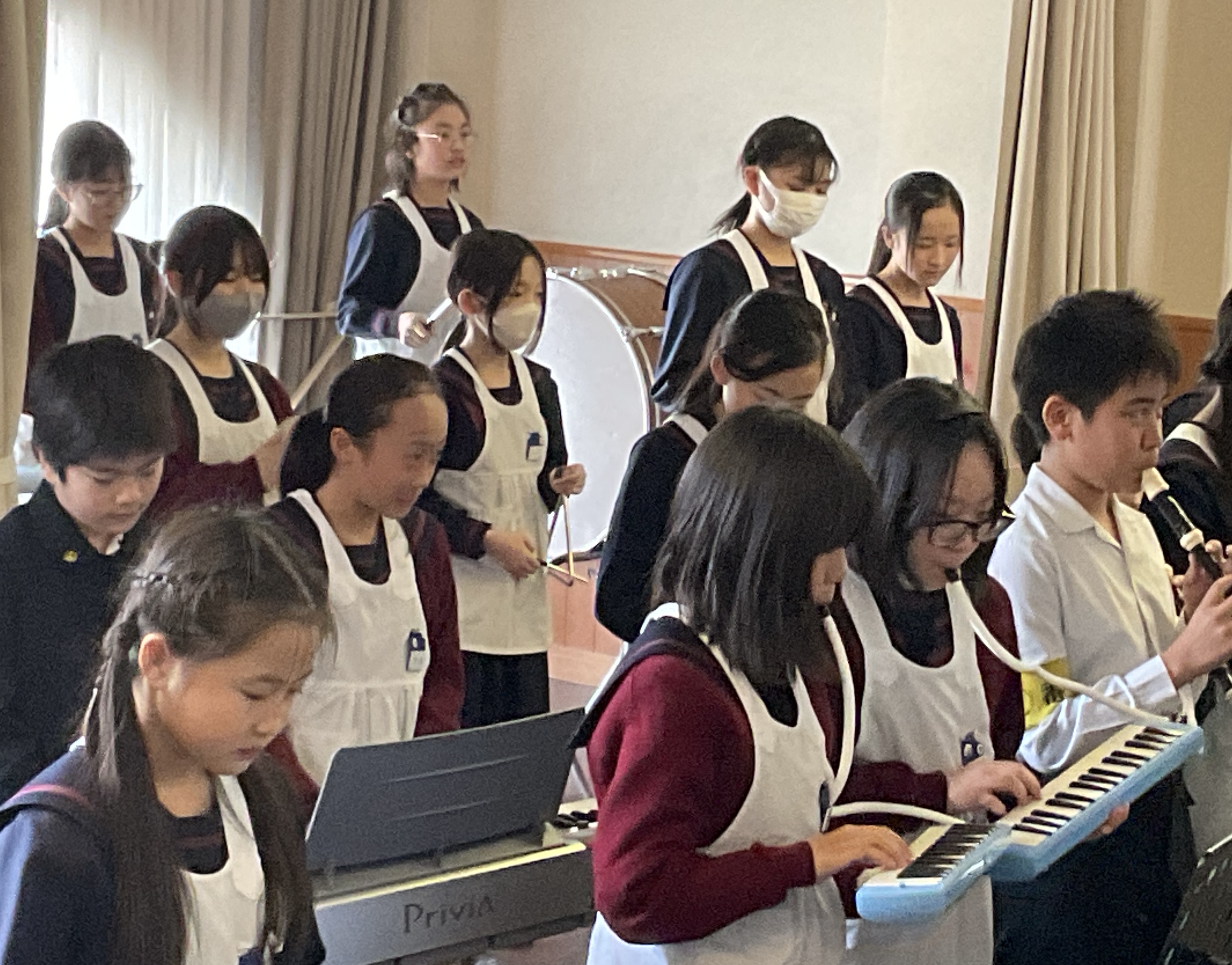 2026年03月04日(水) ランチタイムコンサート2日目 昨日から始まった5年生のランチタイムコンサート、今日は5年C組の「ラ クカラチャ」でした。 陽気なリズムに乗って楽しい演奏を聴かせてくれました。