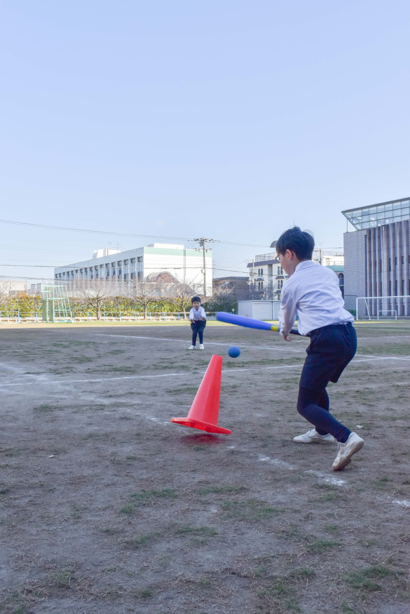 今日のTASCでは外遊びでフラフープとかけっこ、キックベースを行いました。