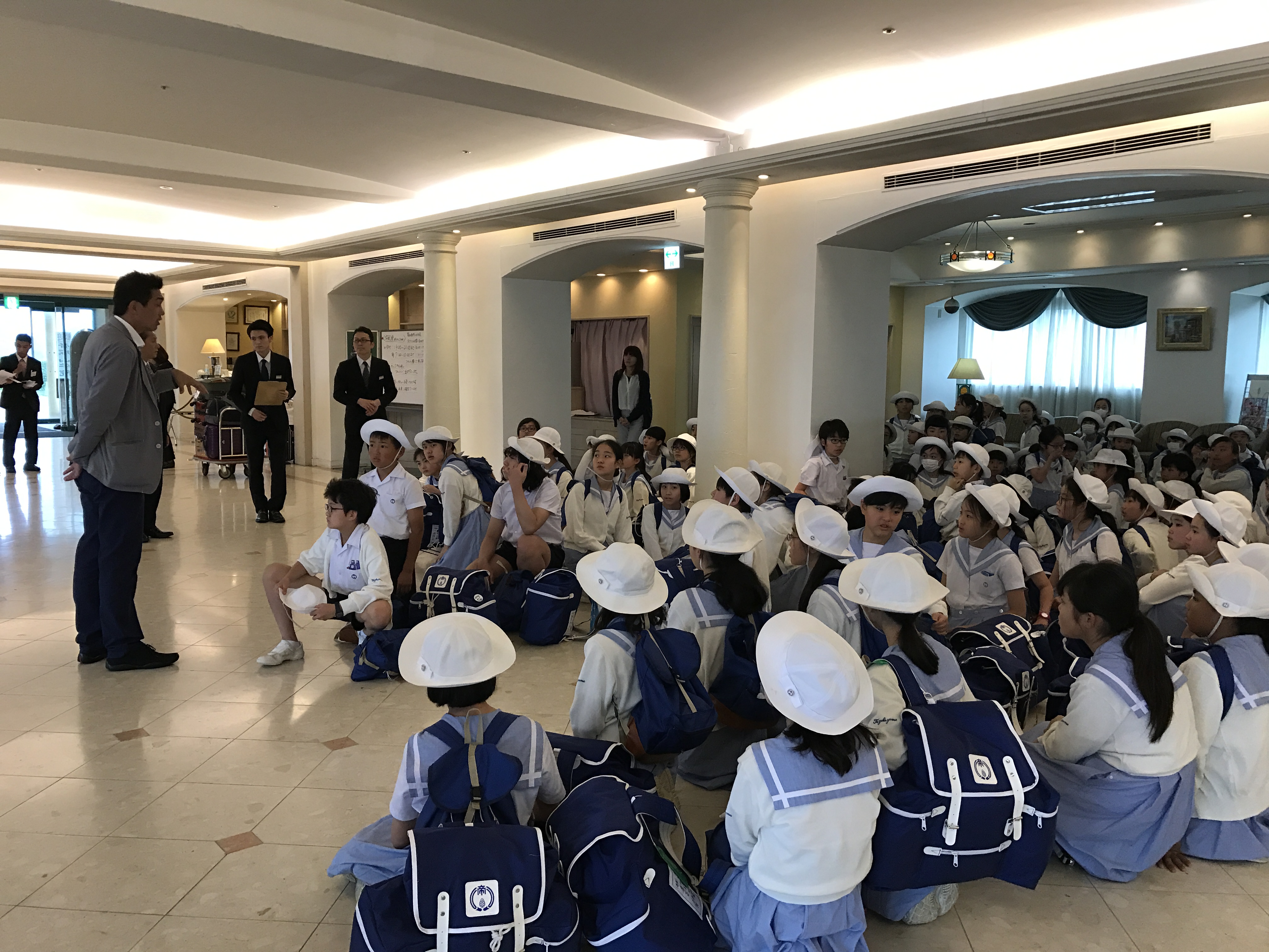 本日のお宿、矢太樓さんに着きました。 ここは、ロビーが9階にあるという、少し変わったホテルで、児童たちもびっくりしていました。 晩御飯は、長崎名物のちゃんぽんをはじめ、ハンバーグ、唐揚げ等とてもたくさんあり、どれも美味しくてお腹いっぱいになりました。