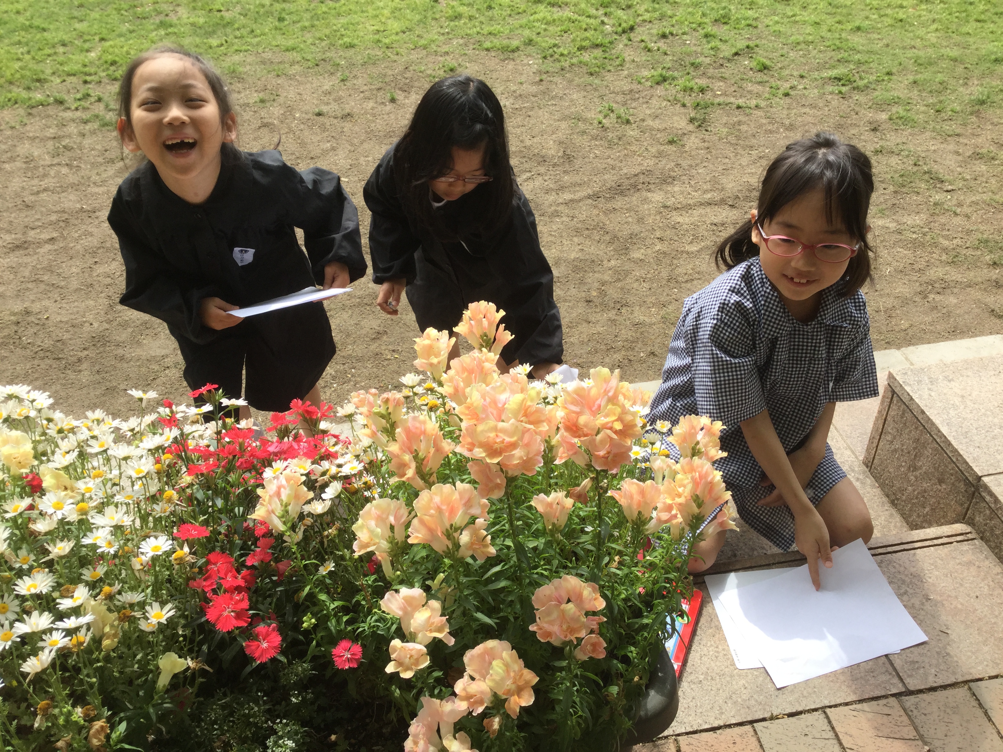新緑が美しい時期になりました。 2年生の図工科では、校庭でスケッチをしました。 子どもたちは好奇心いっぱいに、たくさんの物を観察しました。 草の汁で絵を描く子供もいました。 今日は爽やかな1日になりました。