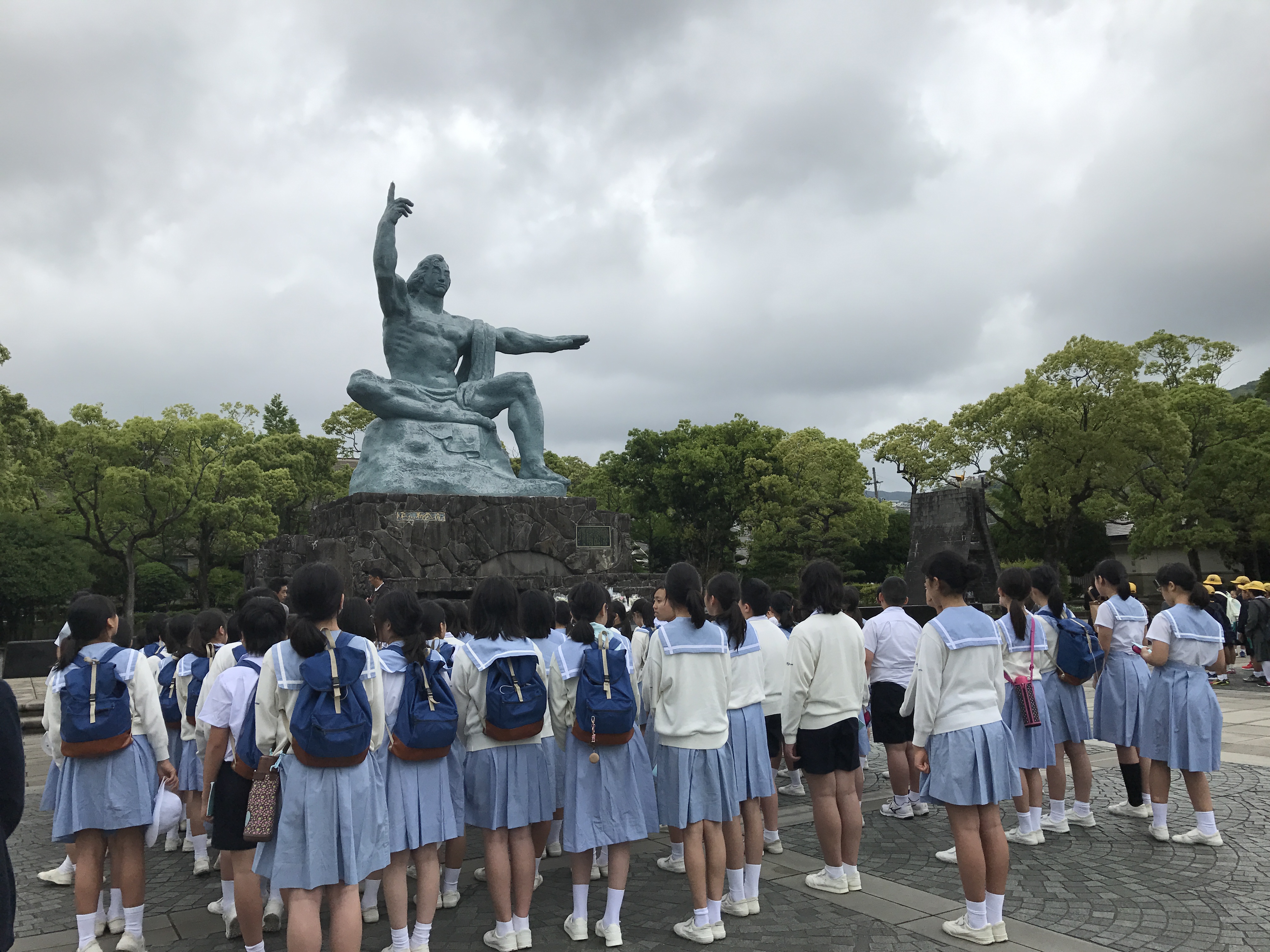 お昼からは平和学習の時間です。長崎の平和公園ではセレモニーを行い、これから先、二度と同じ過ちを繰り返さないことを誓いました。そして原爆資料館に行きました。そこには、目を覆いたくなるような展示物や写真がたくさんありました。それを見て、戦争は絶対にいけないと改めて思いました。