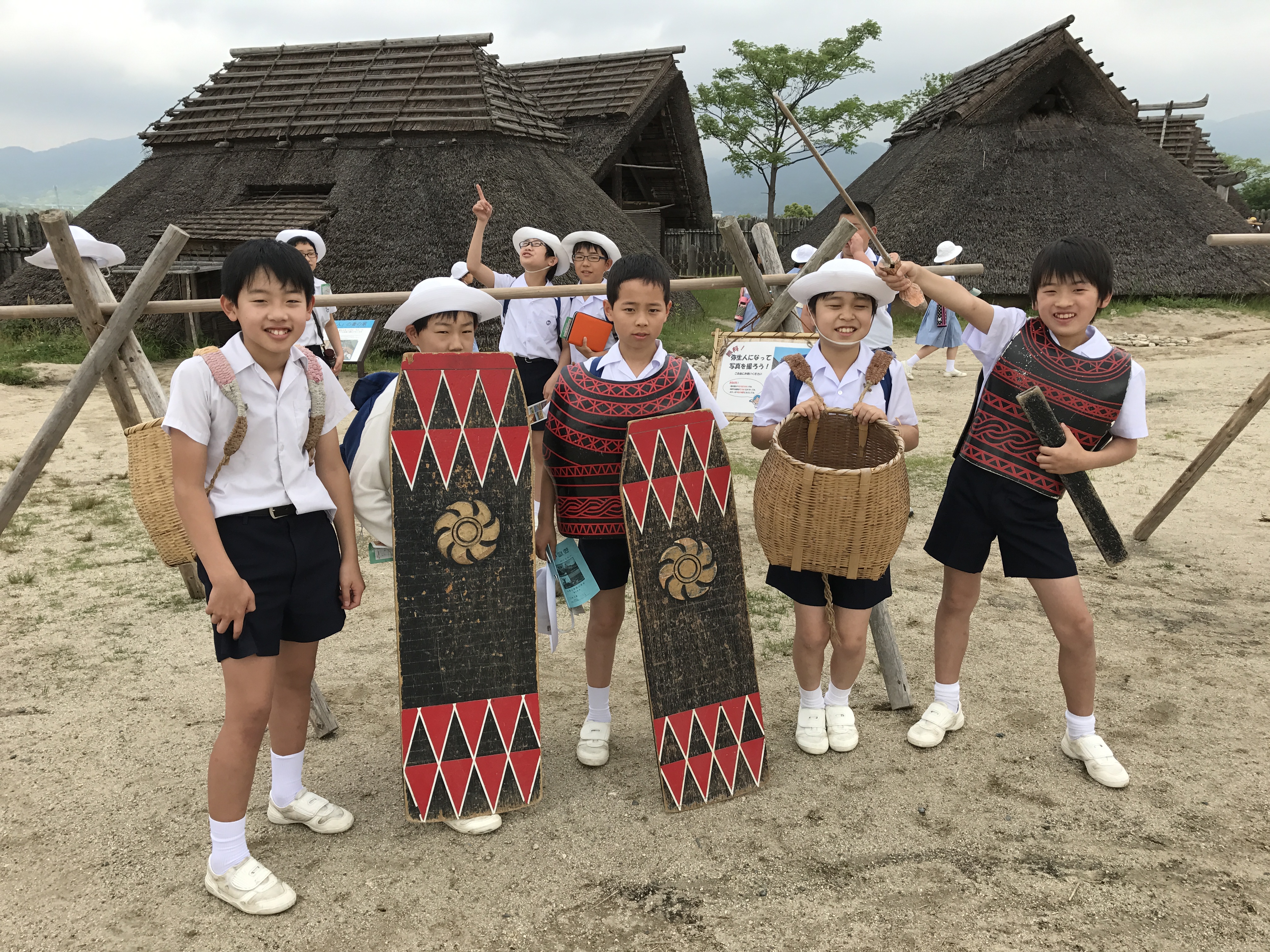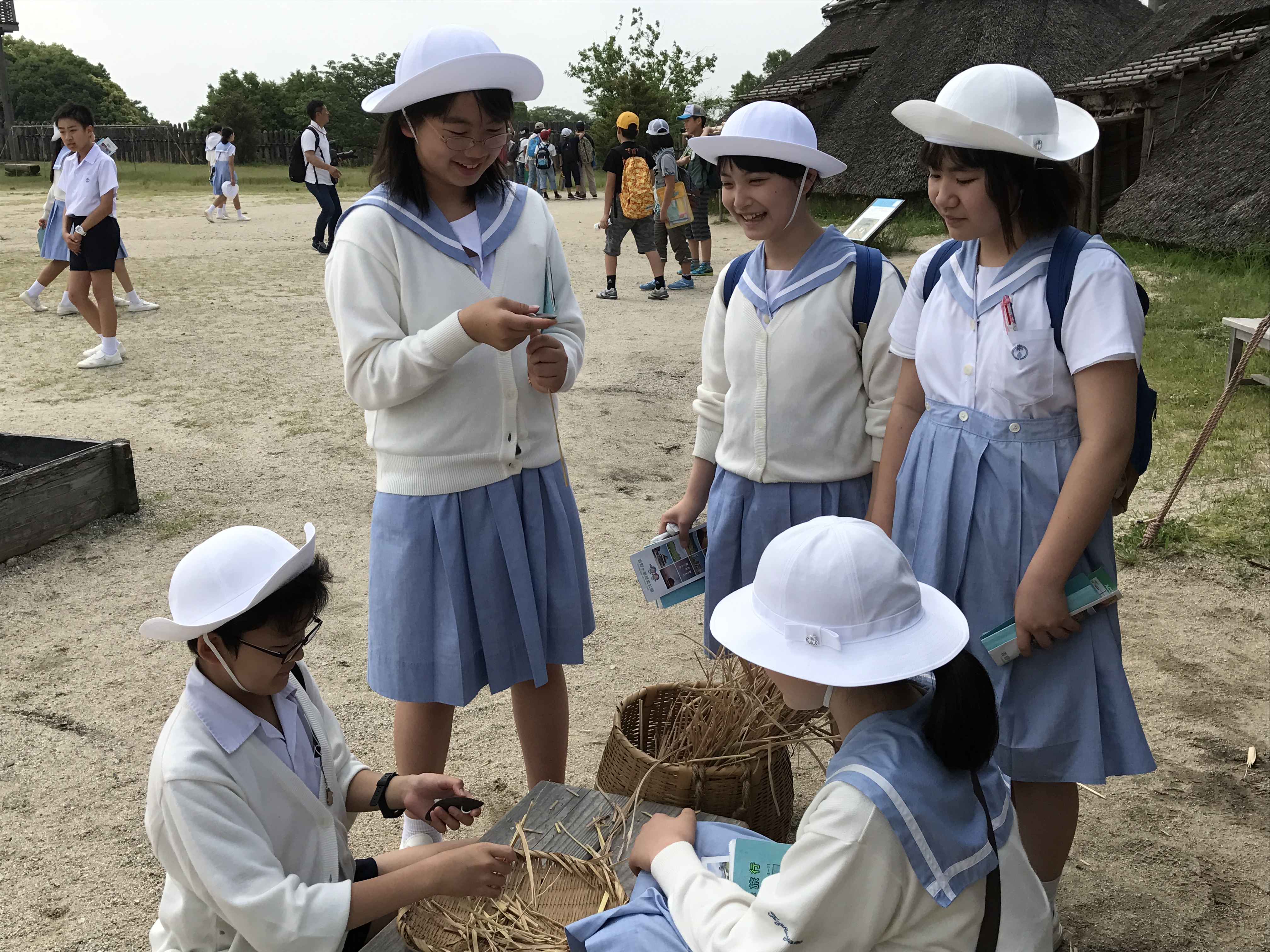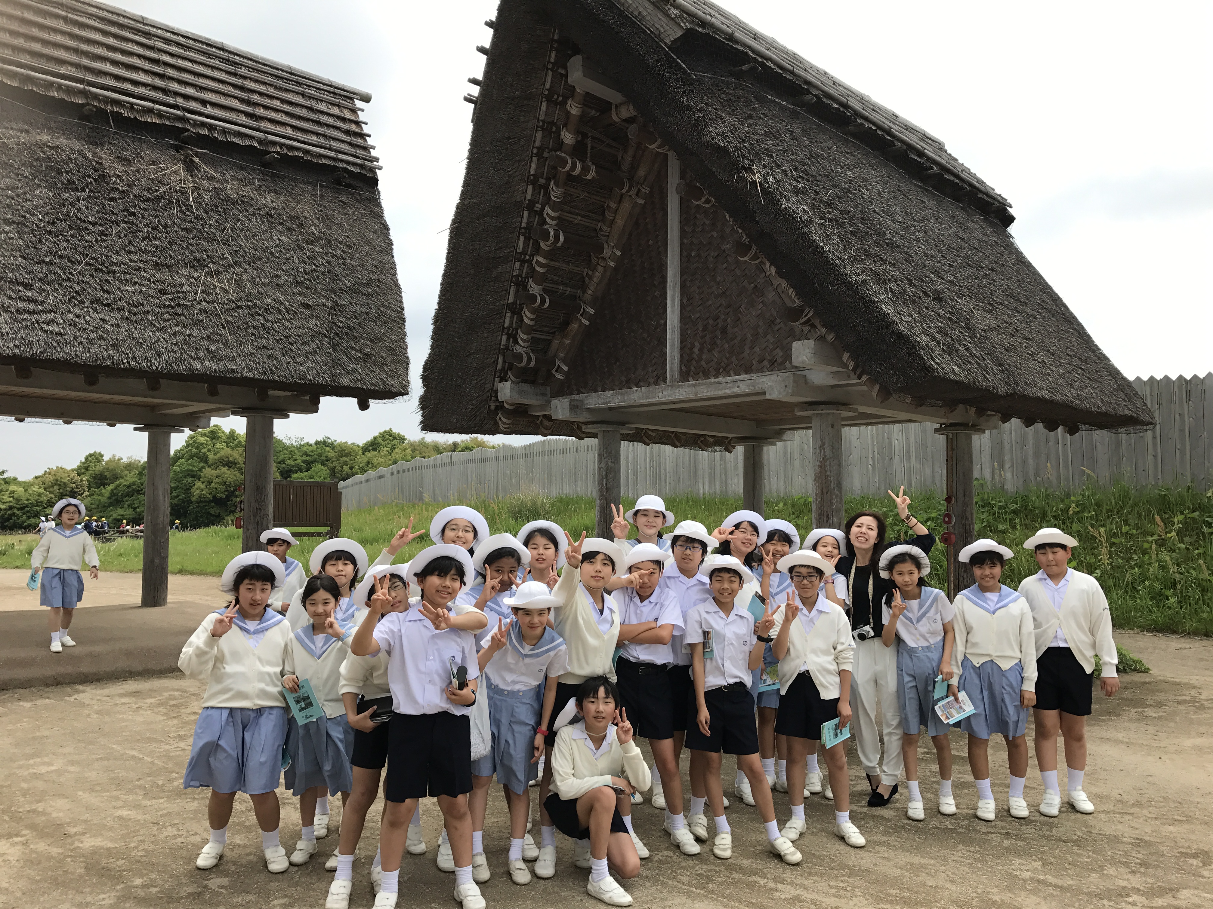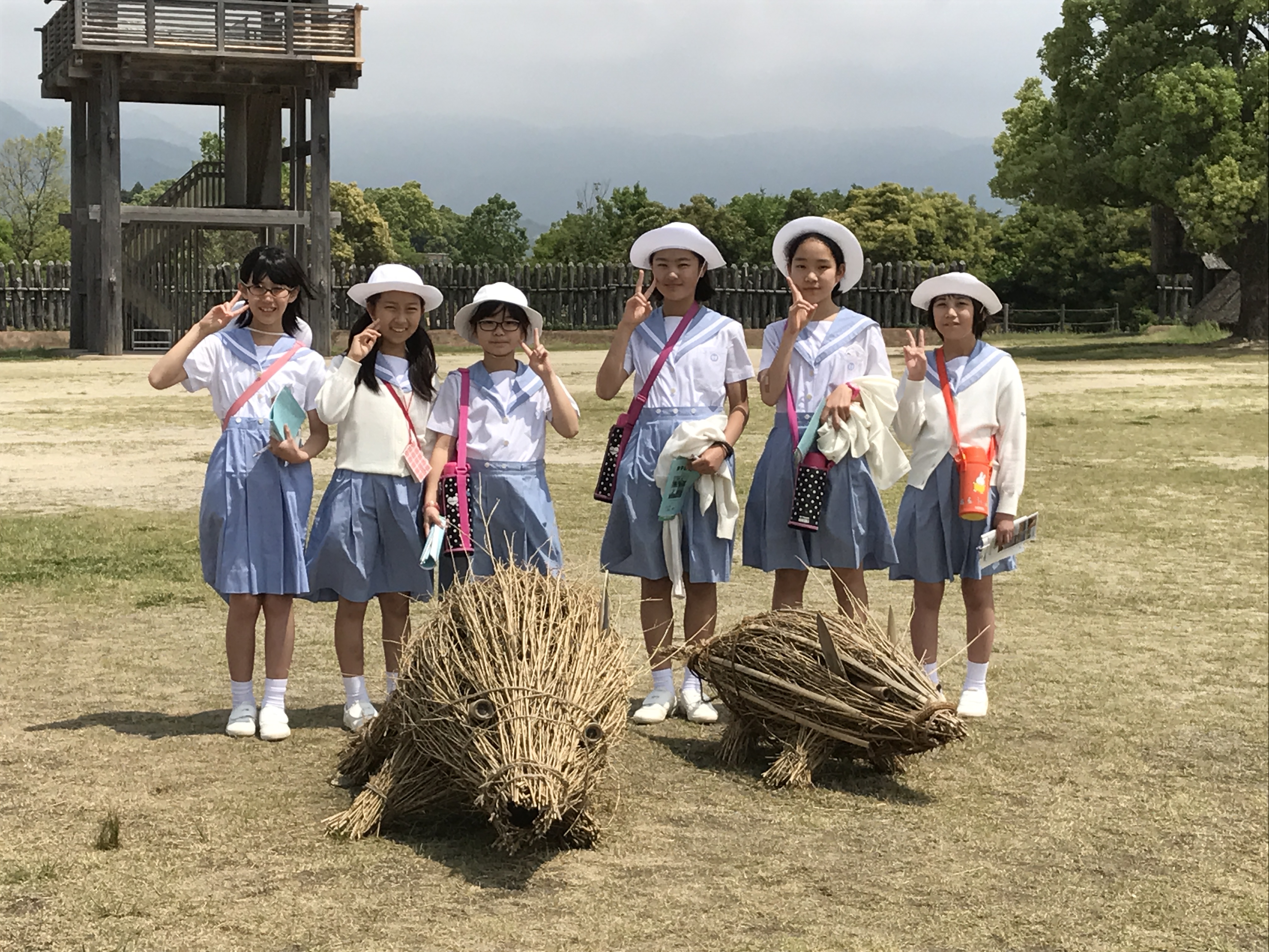 修学旅行4日目です。 朝から吉野ヶ里遺跡に行き、弥生時代の集落について学びました。 物見櫓や竪穴式住居など、実際に入れる所もありました。少しの時間でしたが、弥生時代にタイムスリップしたみたいで楽しかったです。