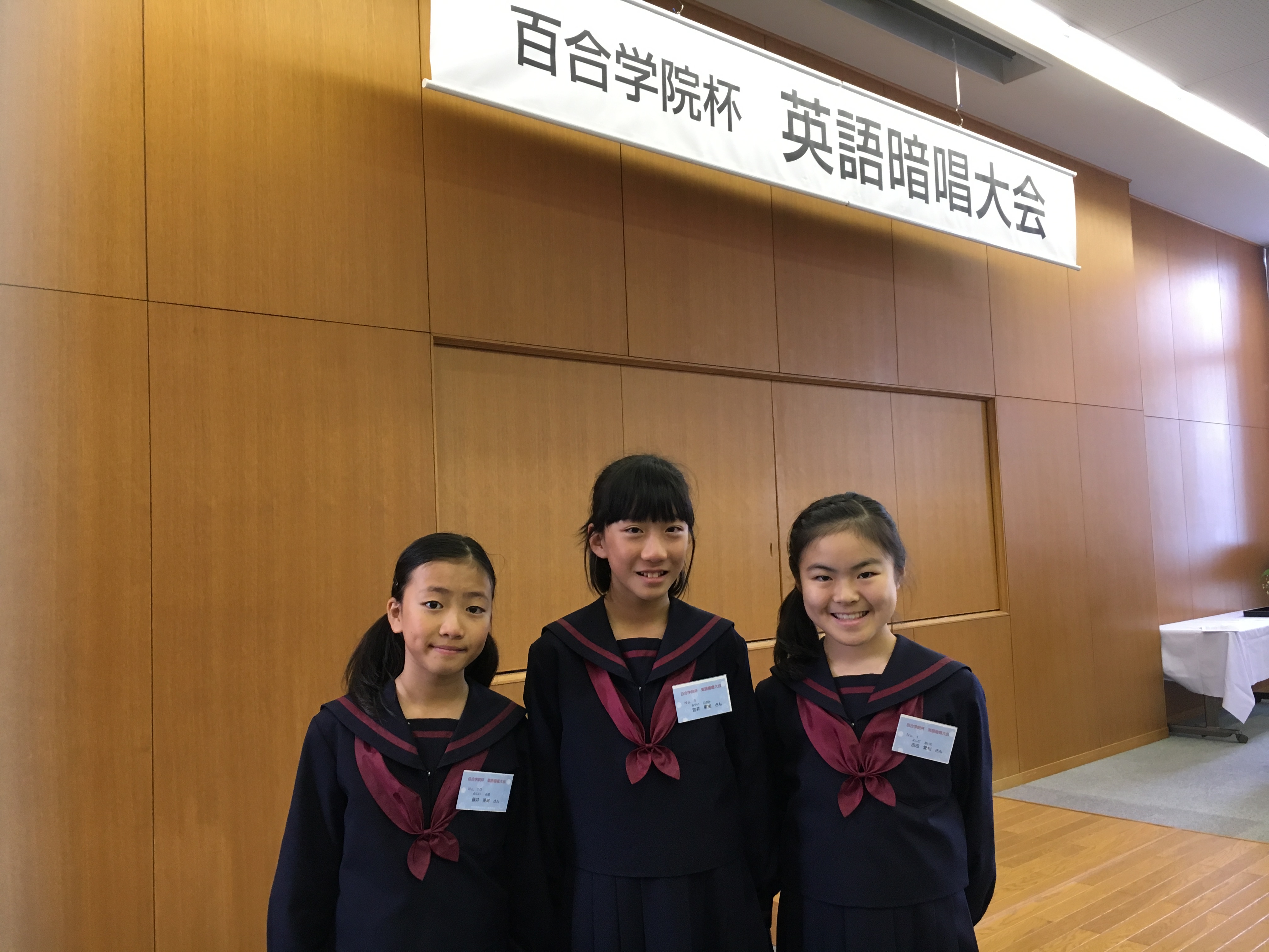 代表児童3名が11月4日(土)に百合学院杯第五回小学生英語暗唱大会、