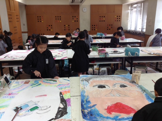1年生の図工の授業では、自画像制作に取り組んでいます。