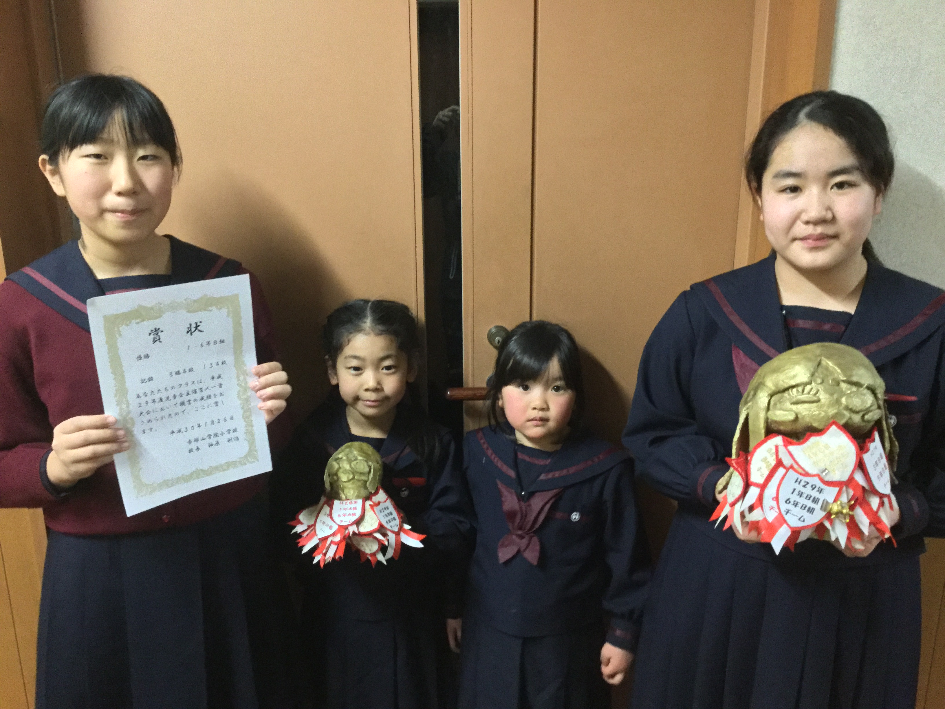 先日開催された百人一首大会の、入賞チームの表彰がありました。