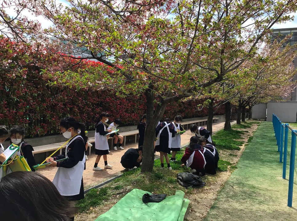 3年生理科では、運動場で春の生き物を探しをしました。しっかり観察すると、たくさんの植物が青々としてきています。虫たちも少しずつ動きだす頃でしょう。夏になると運動場はどのように変わっていくのでしょう。