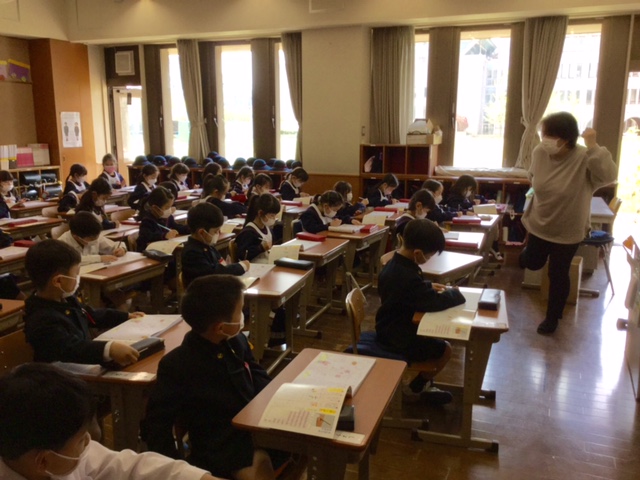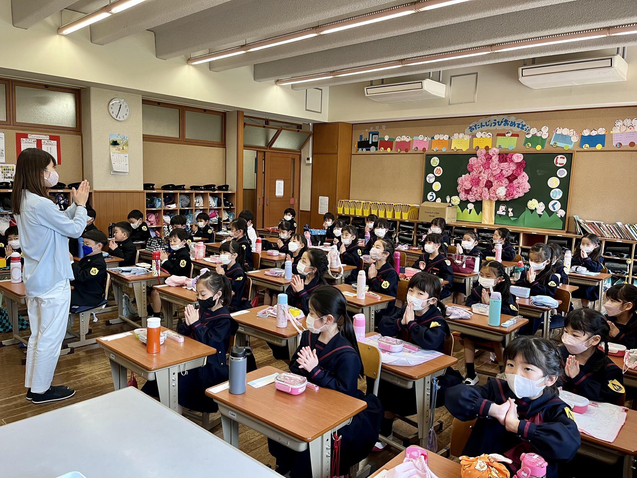 児童の皆さんは、鉛筆の持ち方や線の書き方を学んだり、リズムに乗って手を振りながら挨拶の歌を英語で歌っていました。