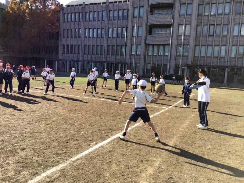 1年生ぶりの玉入れと、ドッチボールの合計得点で競います。玉入れは、全ての球を入れた後、ラグビーボールを入れるまでが戦いです。どちらの競技も大接戦、大白熱!!!2学期の最後に、学年で楽しい思い出を作ることができましたね。どのクラスも一生懸命よく頑張りました。