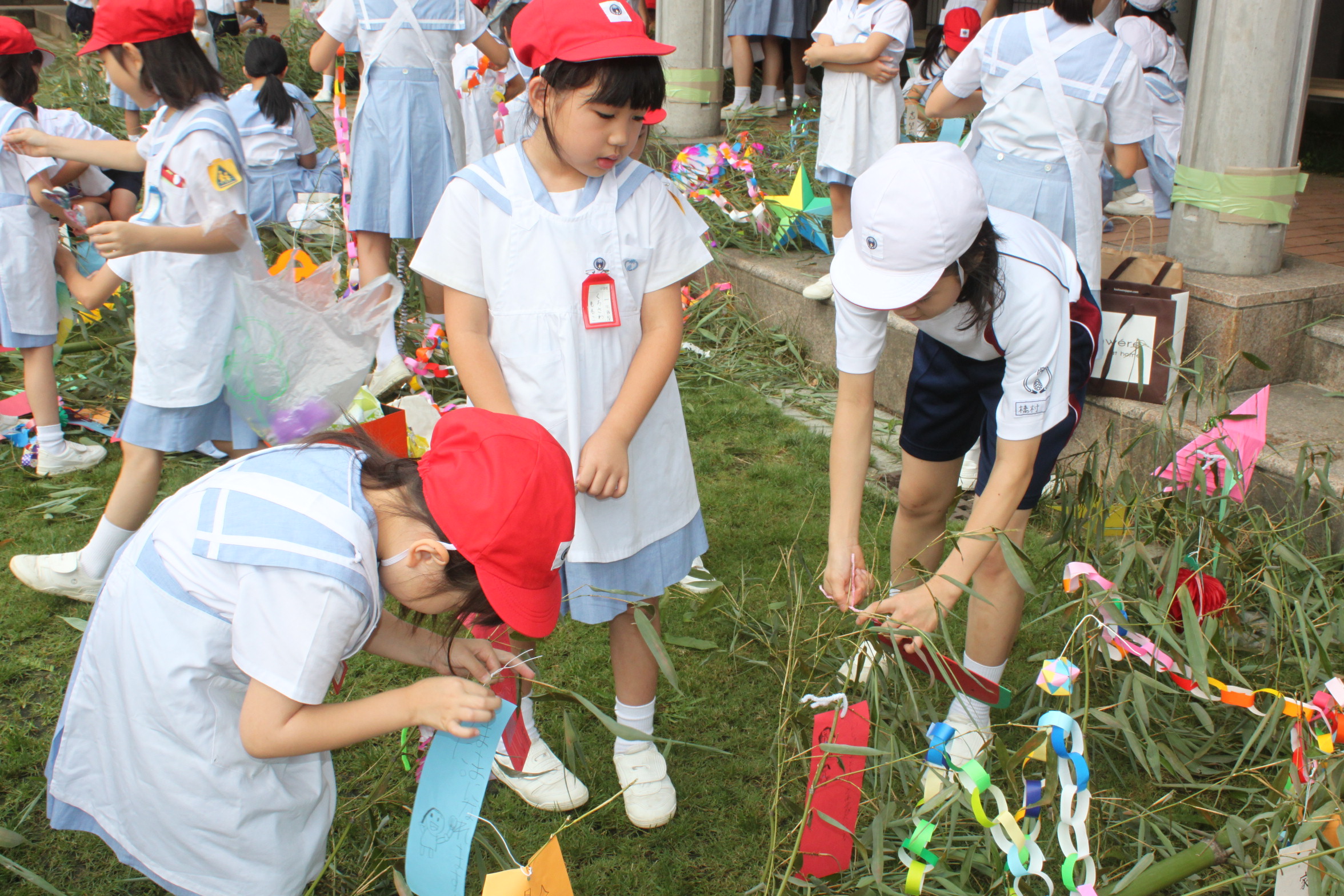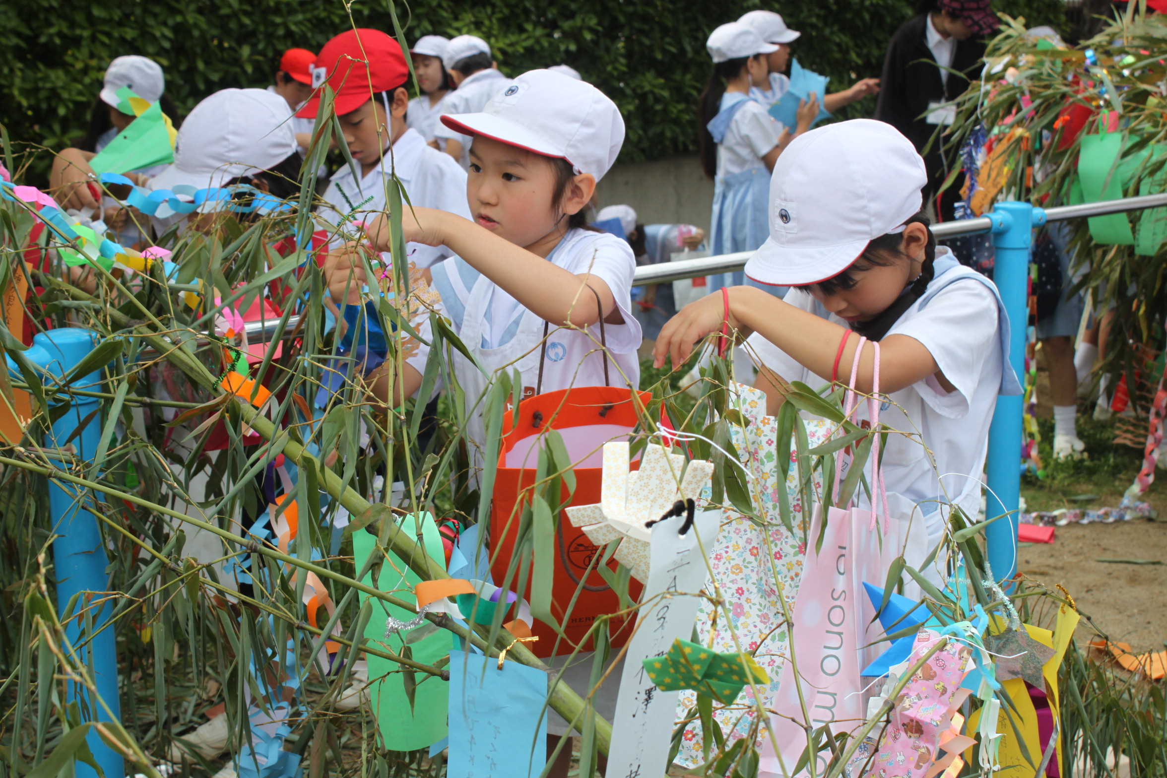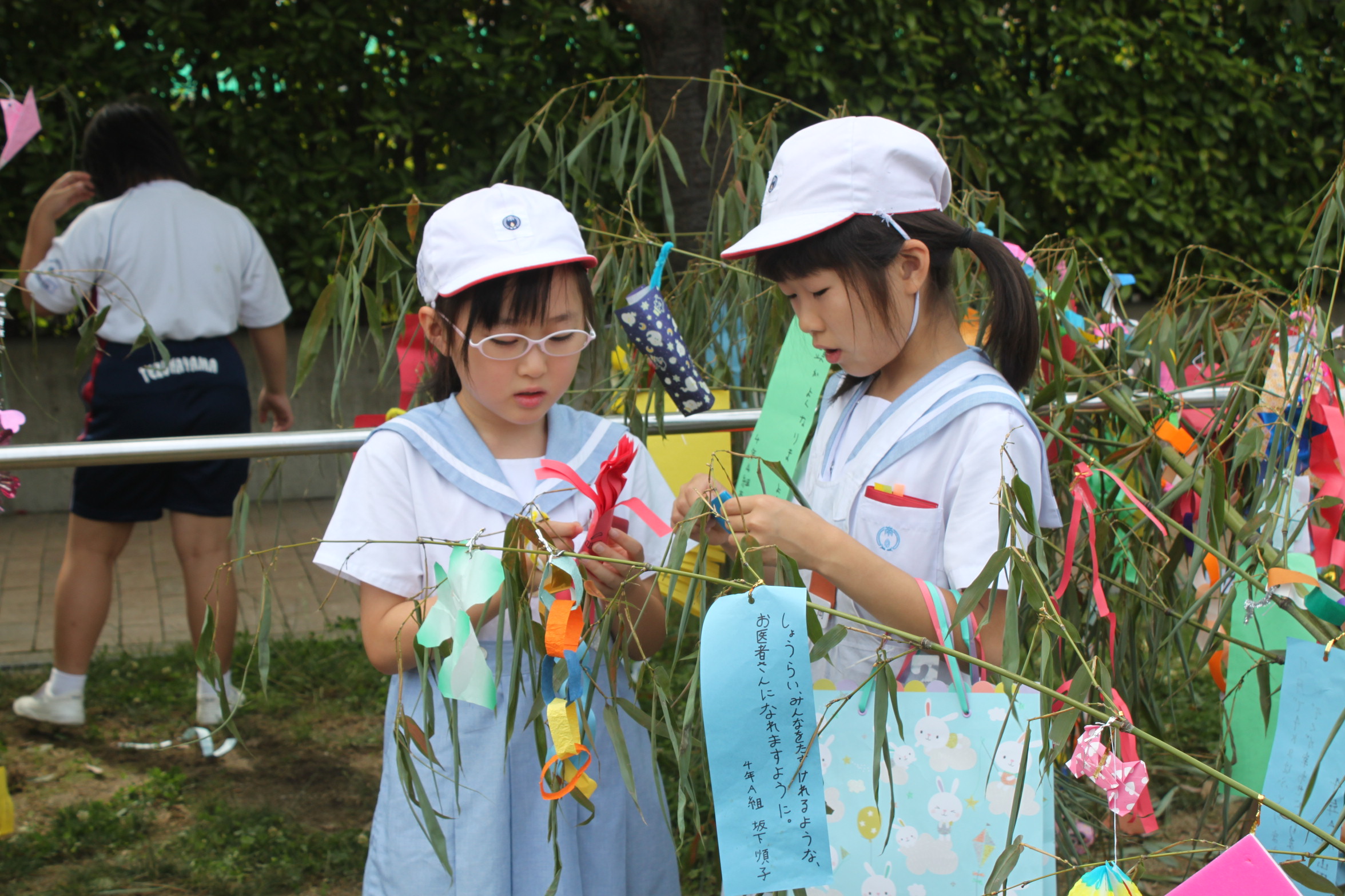 児童たちは、各姉妹学級に分かれ、飾りや願ことを書いた短冊をたくさんつけました。
