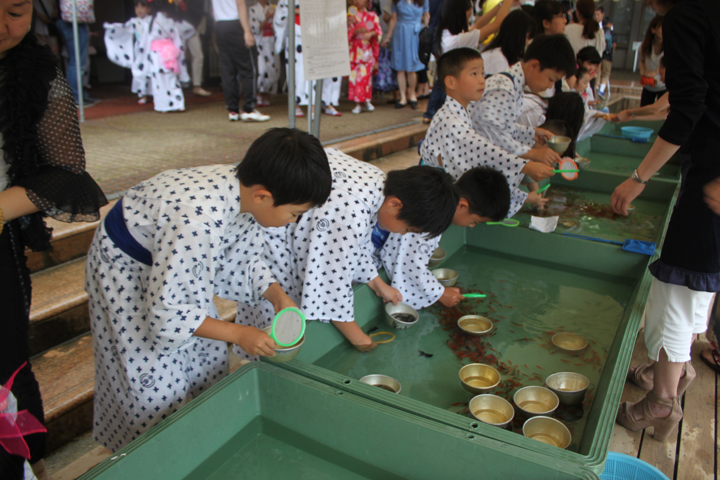 児童たちが金魚すくいやヨーヨー釣りをして楽しく遊ぶ姿が見られました。