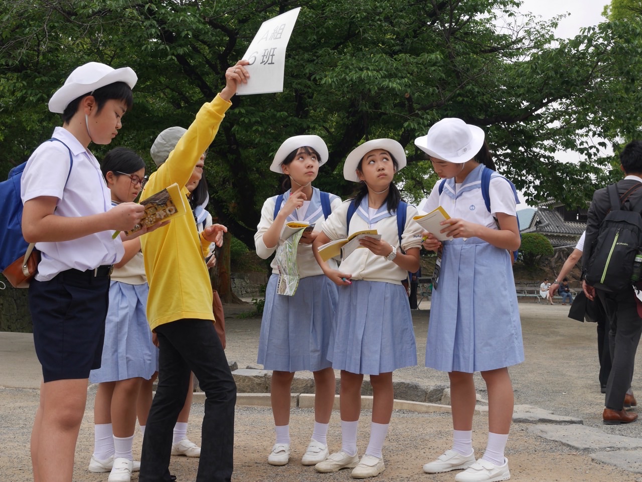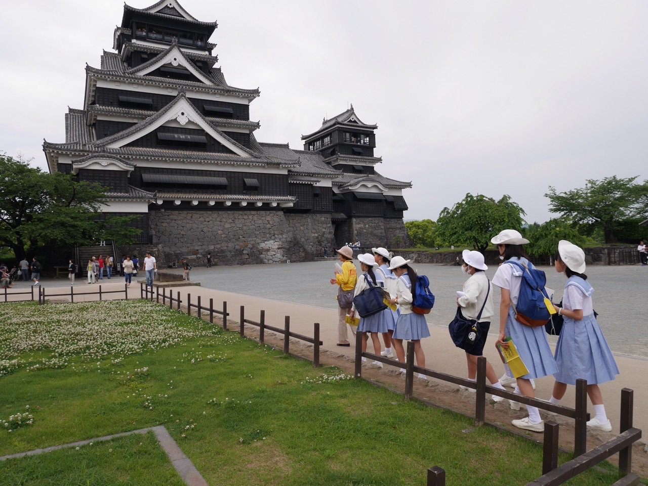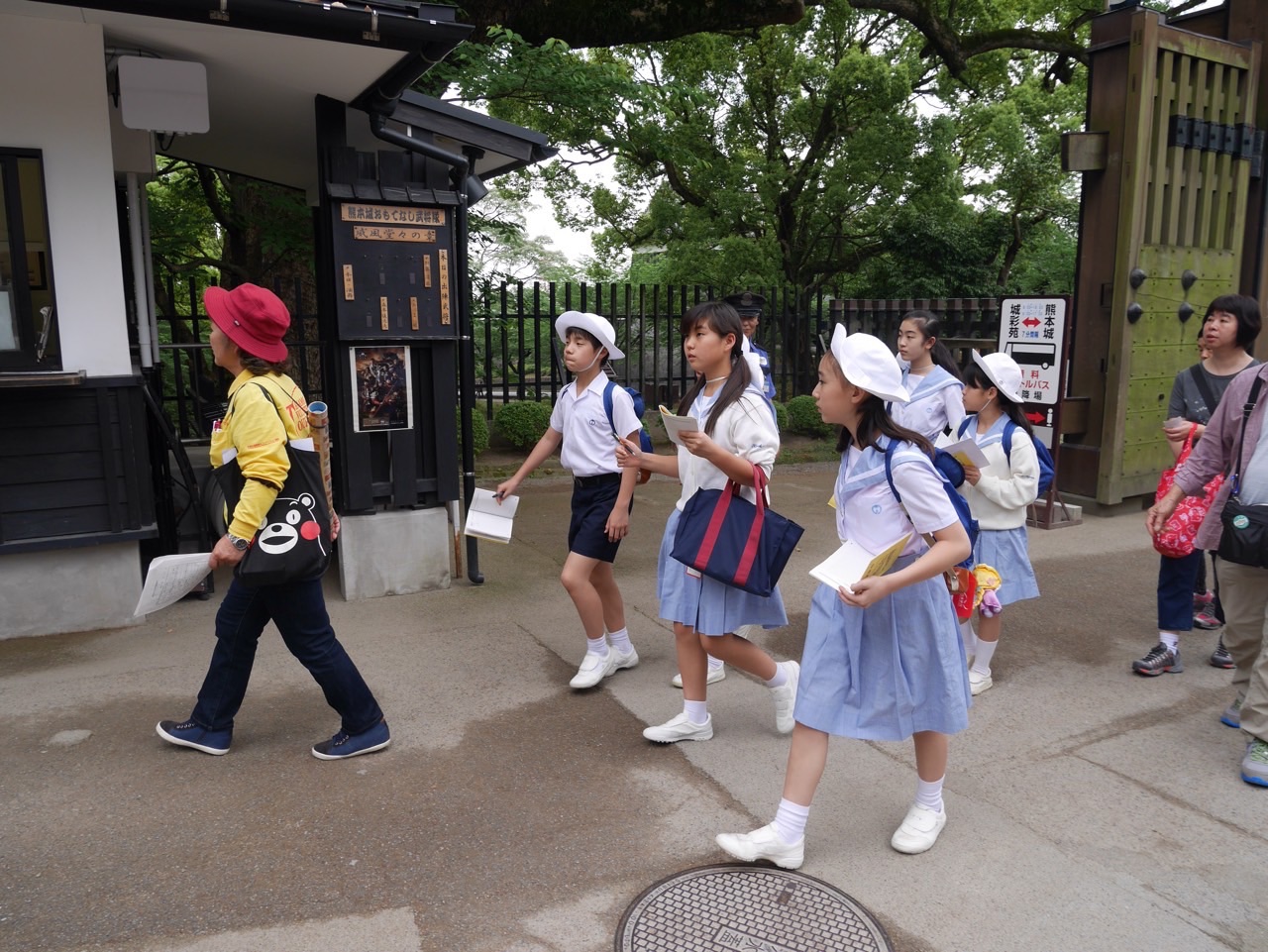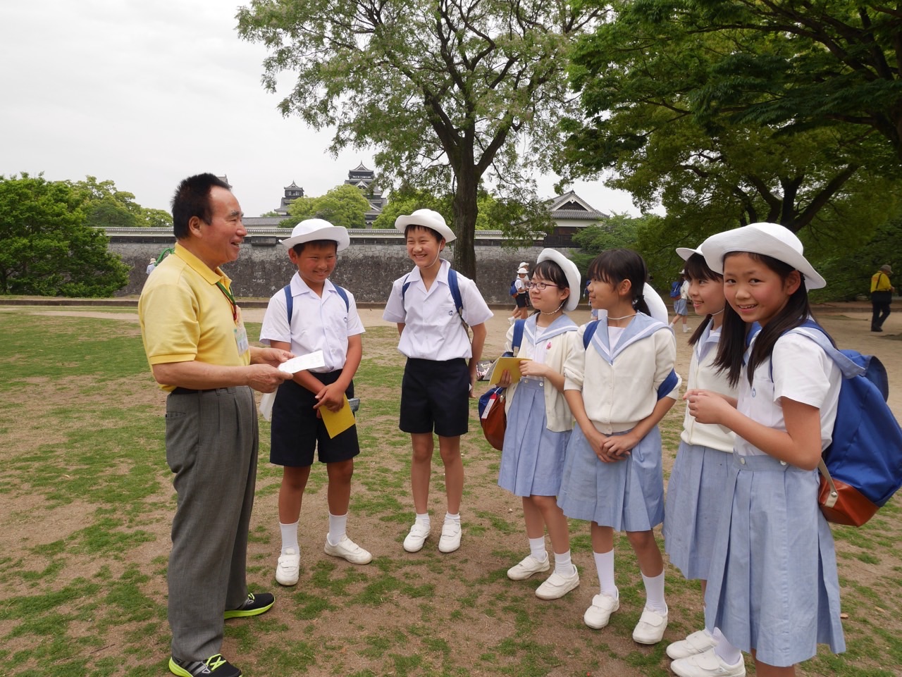 熊本城の歴史や石垣の「武者返し」などについて教えてもらいました。