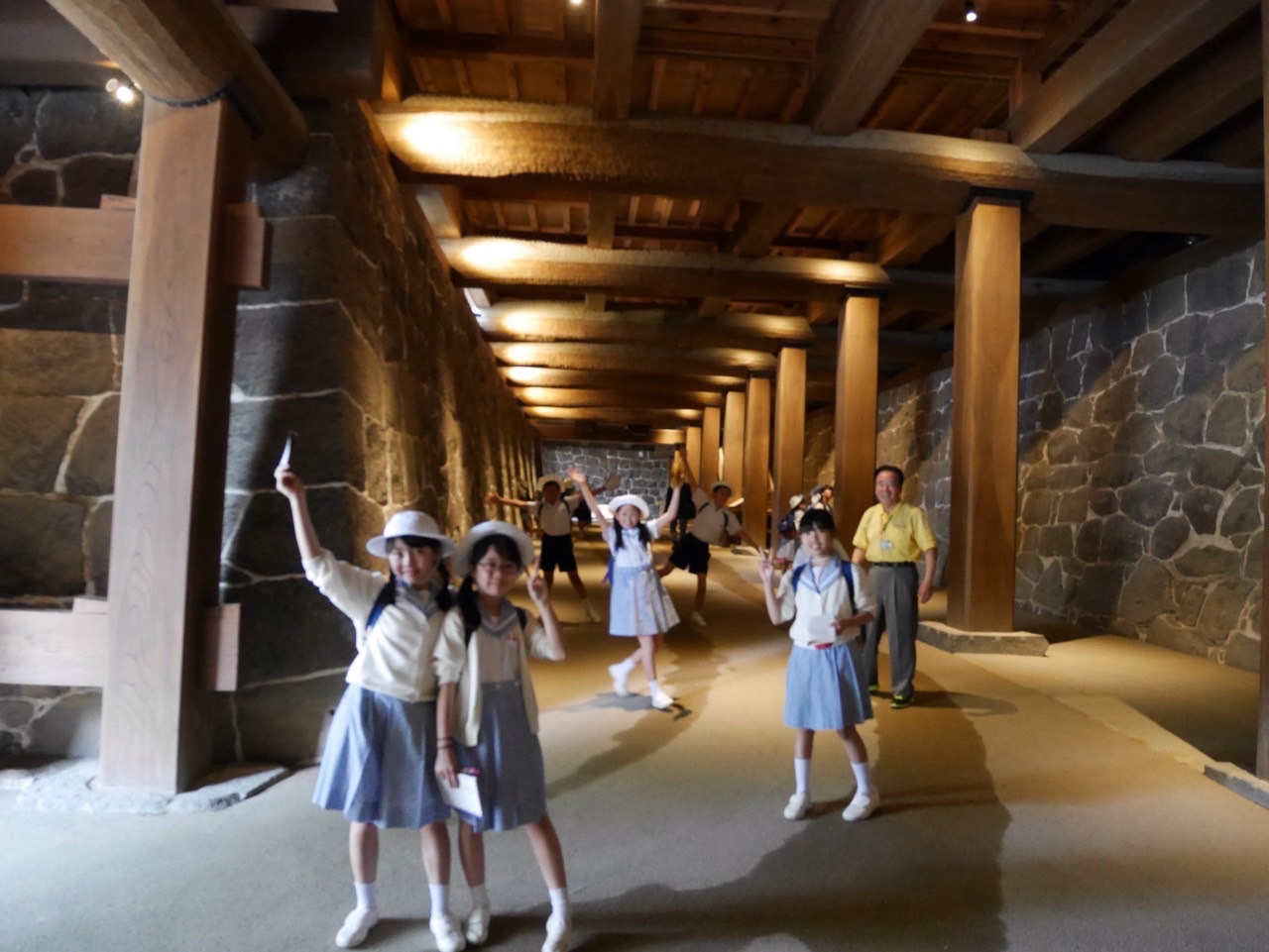 熊本城に到着後、グループに分かれガイドさんに熊本城、桜の馬場城彩苑を案内してもらいました。