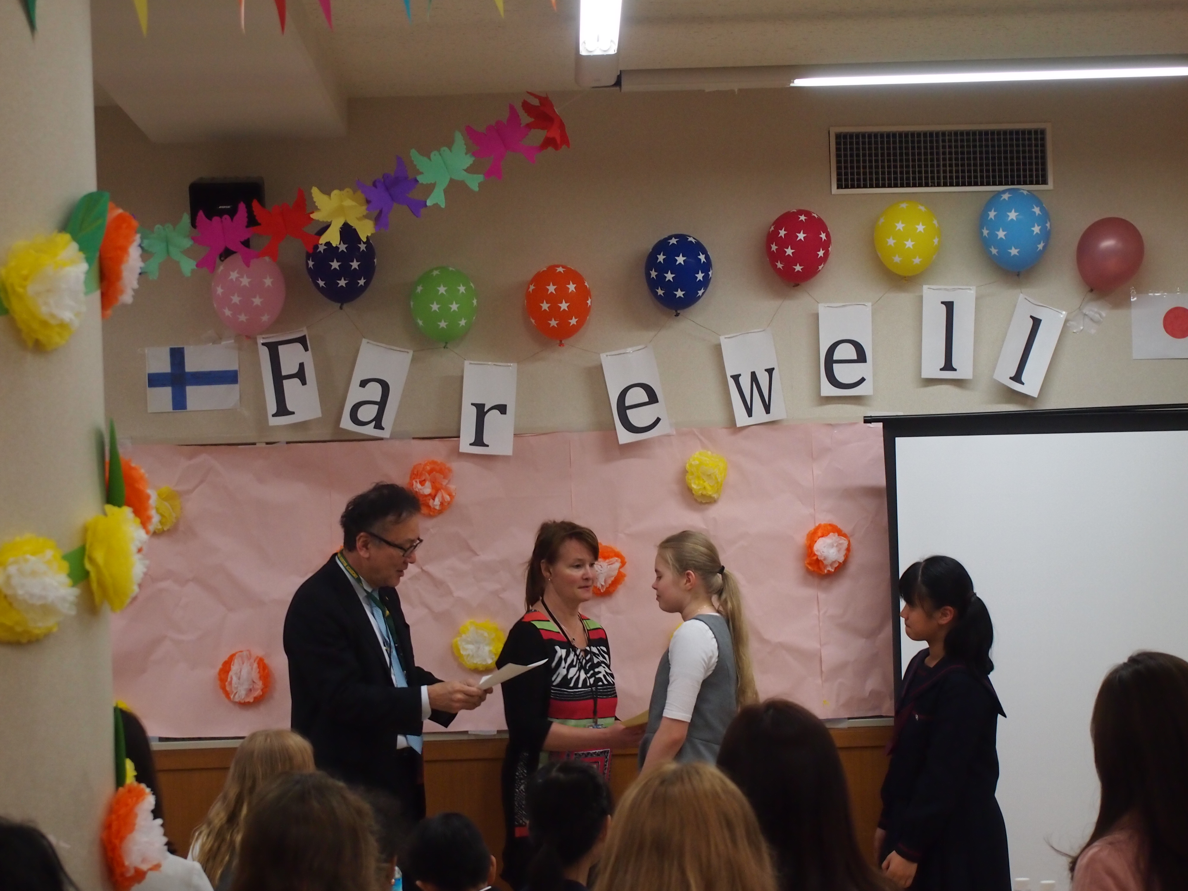 朝礼の時間にフェアウェルセレモニーを行いました。