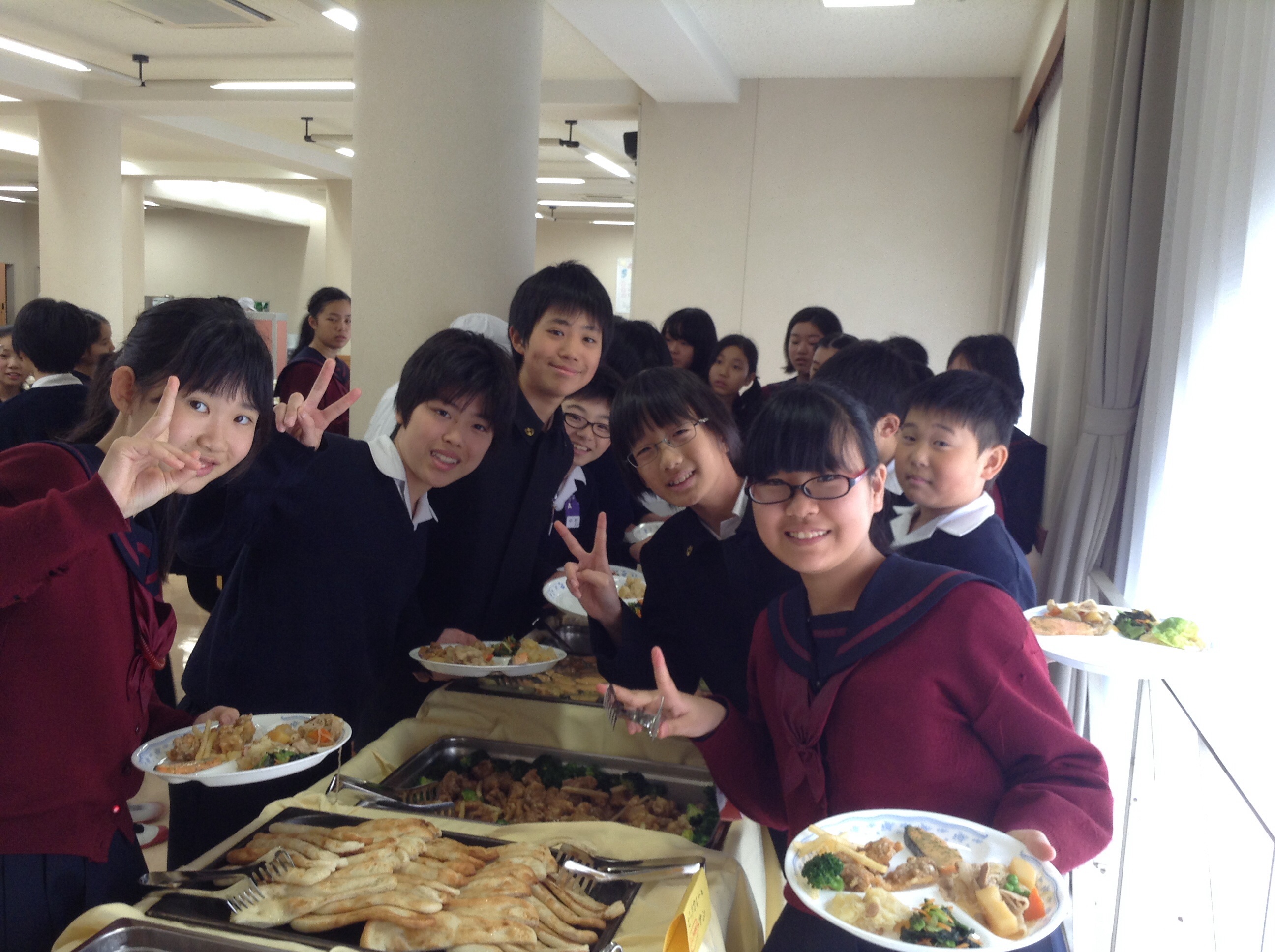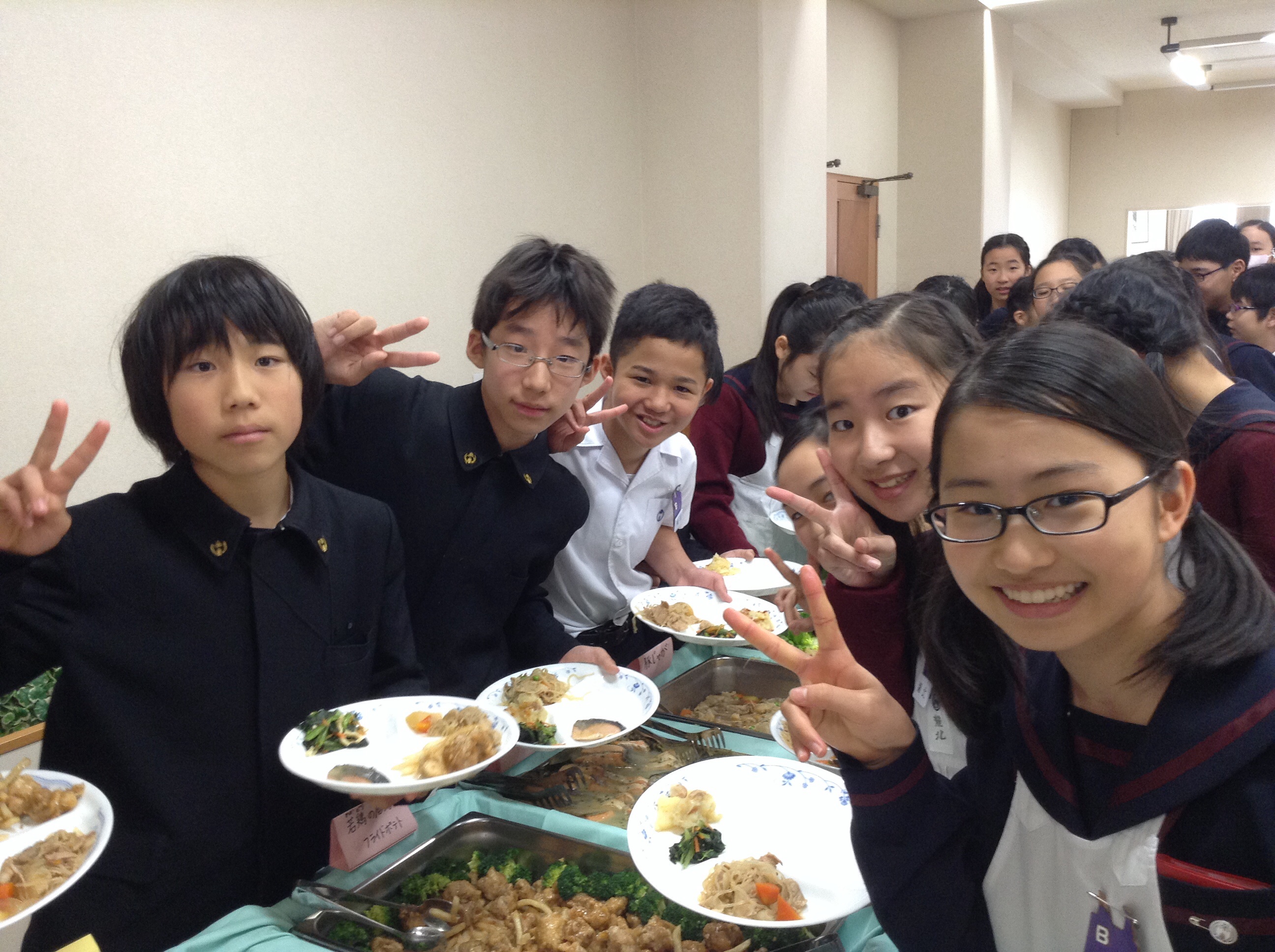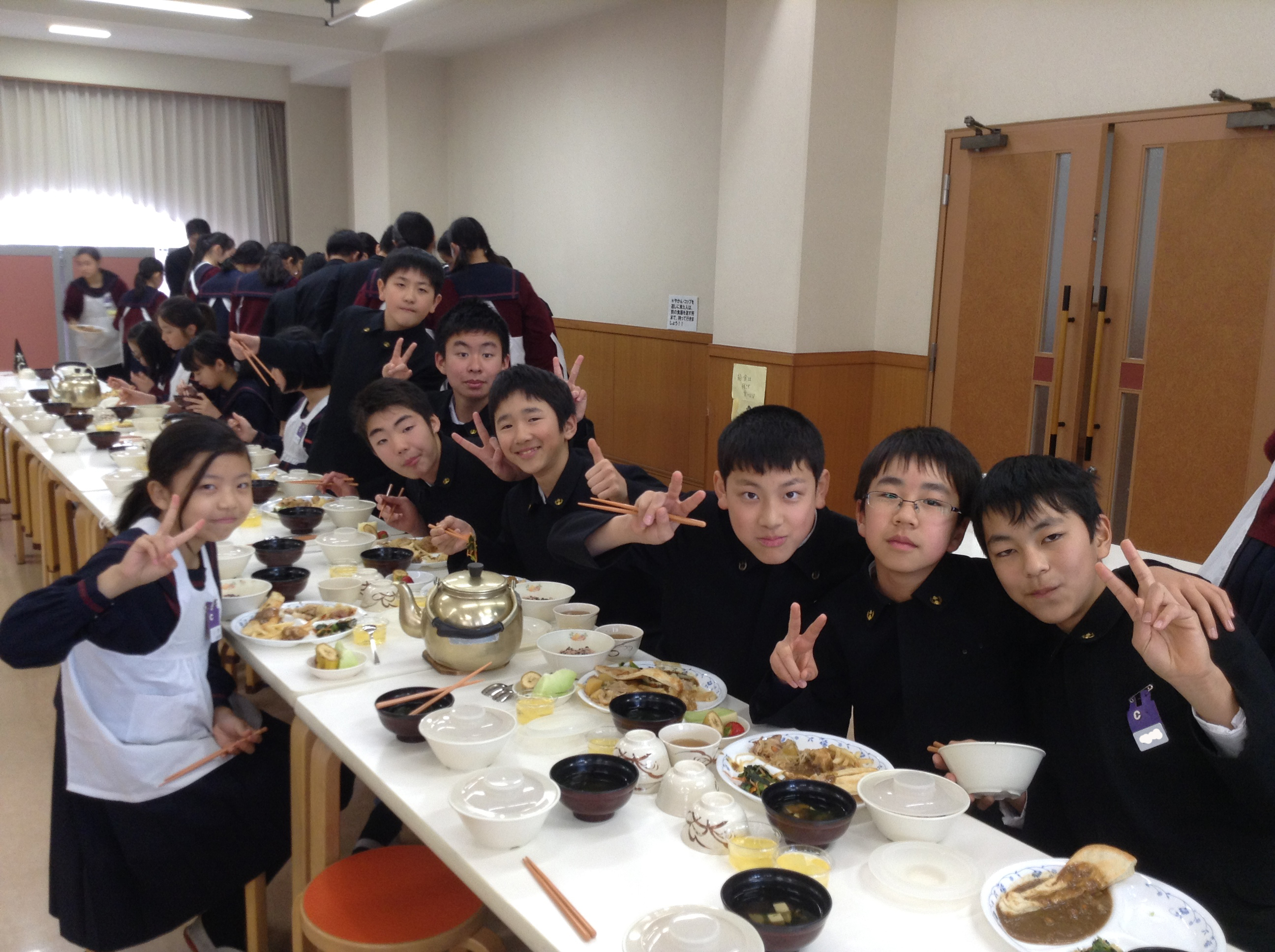 その後、給食場で「祝賀の集い」があり、軽食を食べながら、各クラスの歌を聞いたり、