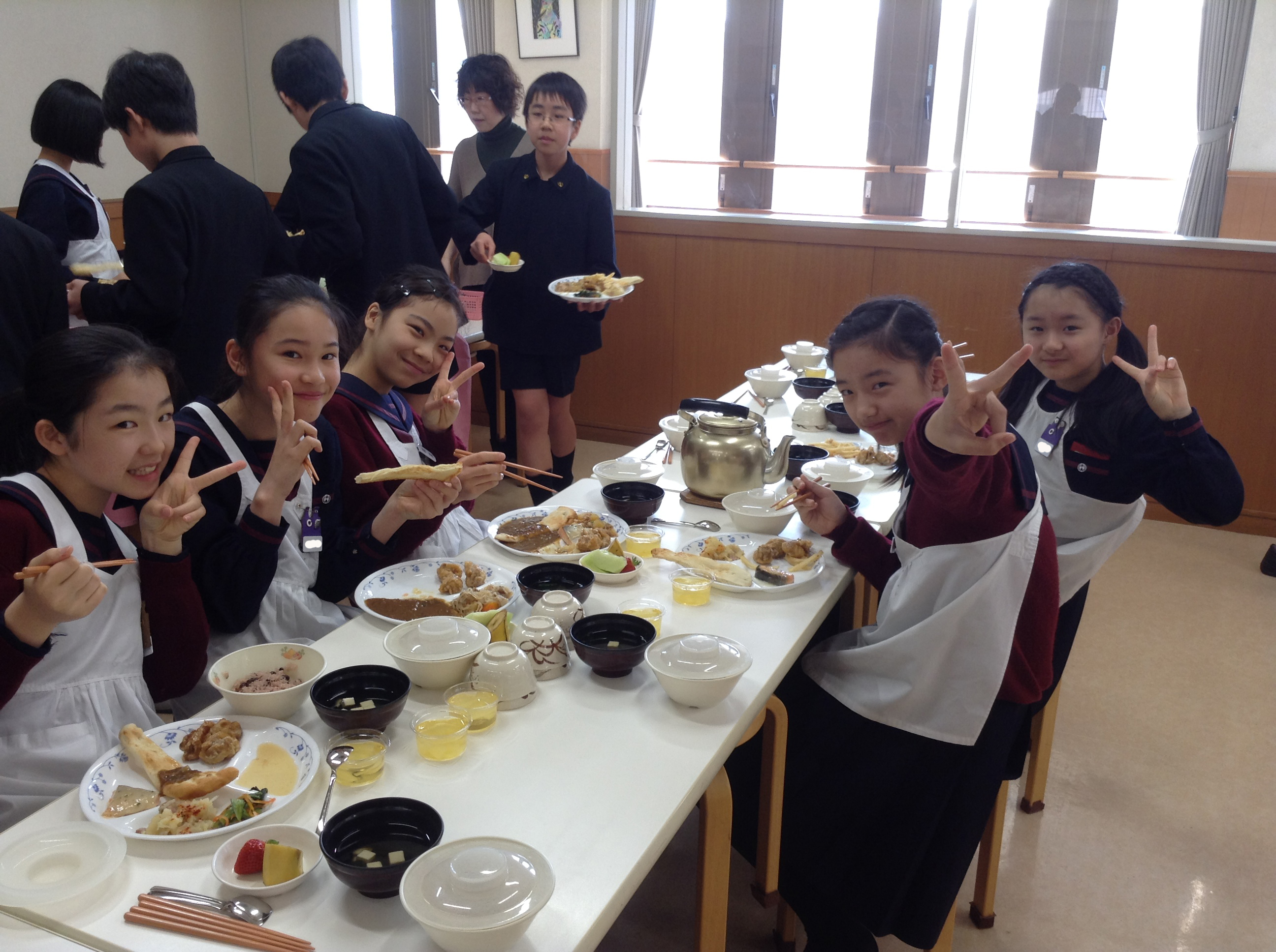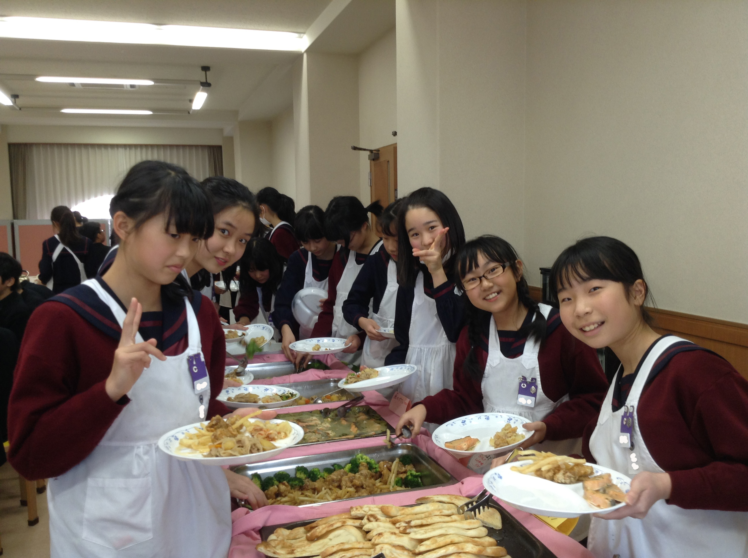 3月10日(火)、6年生は小学校生活最後の給食ということで、お祝いビュッフェでした。