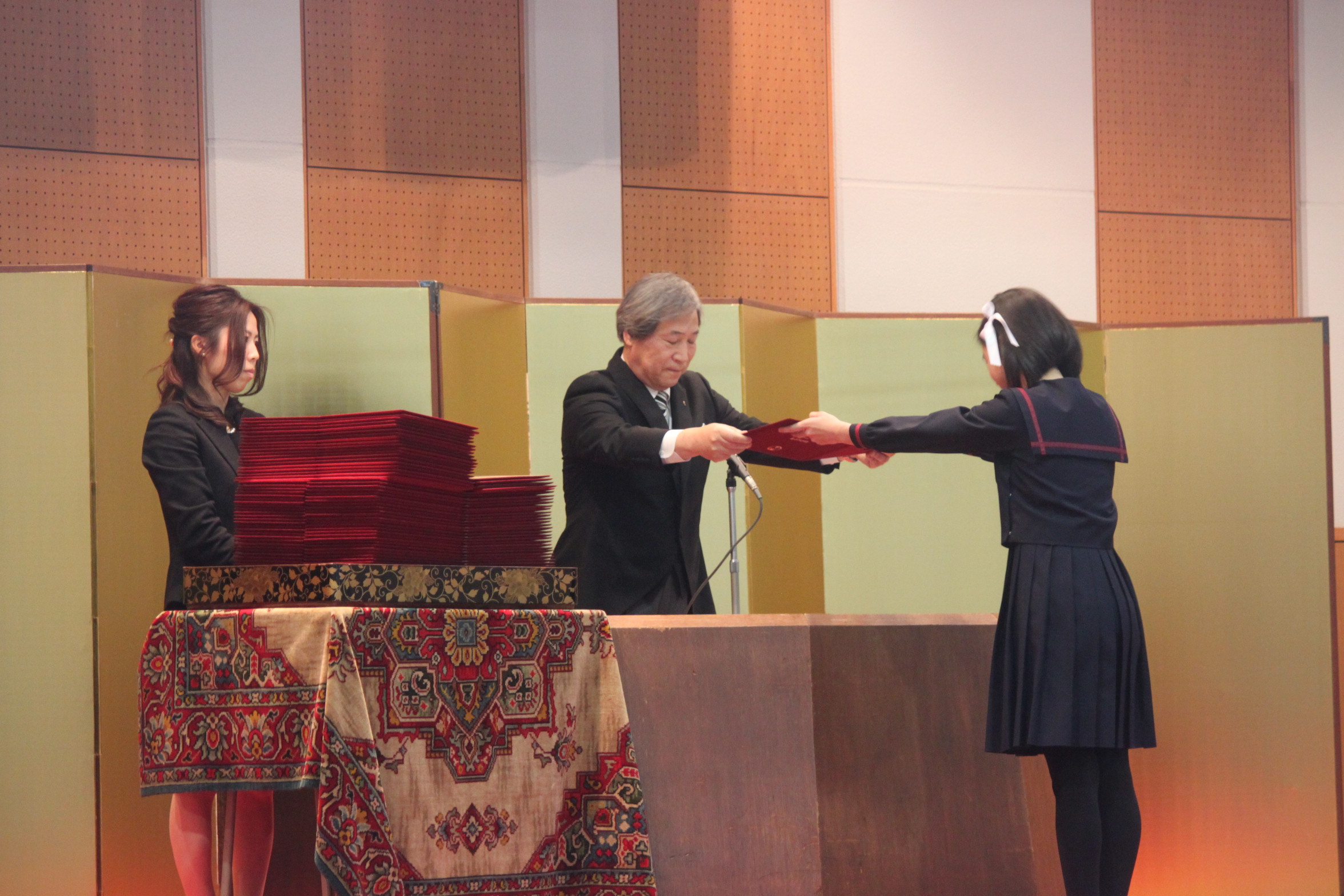 卒業生111名、一人一人に学校長から卒業証書が手渡されました。