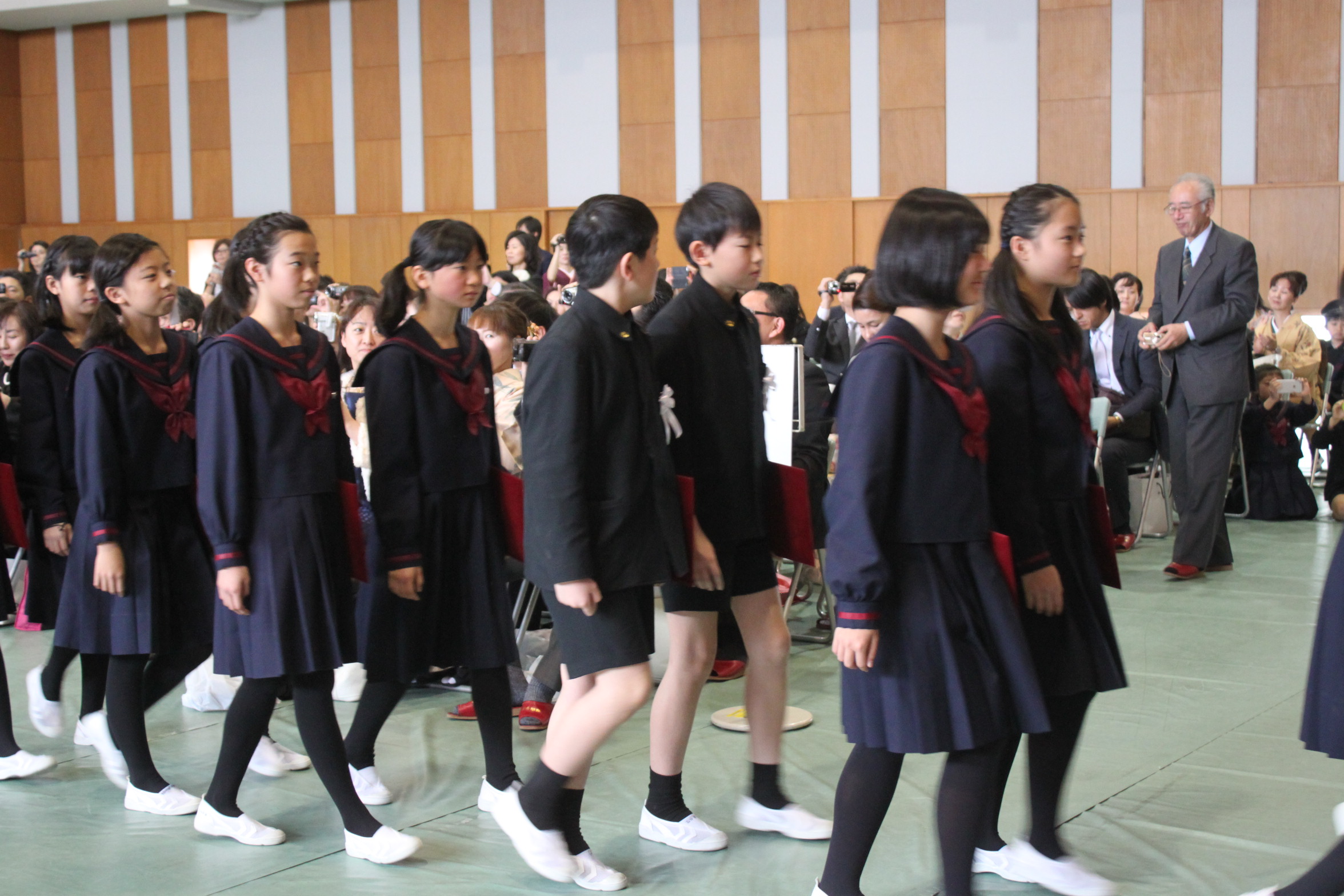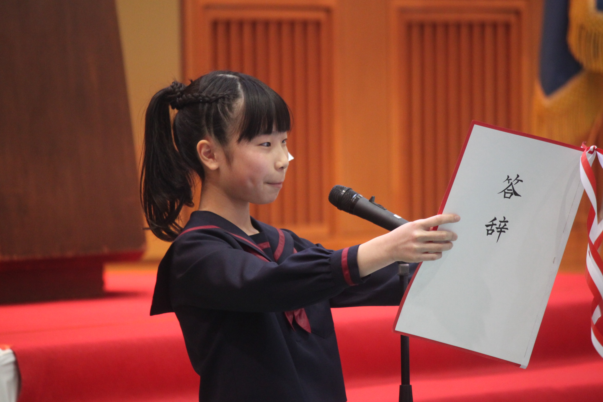 保護者の方々、教職員、在校生(四・五年生)に見守られながら、
