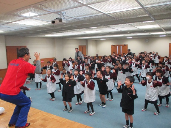 最後には、音楽に合わせてみんなで「にっこりキッズ体操」をしました。防犯ブザーについてしっかり教えていただき、とても貴重な時間を過ごせました。