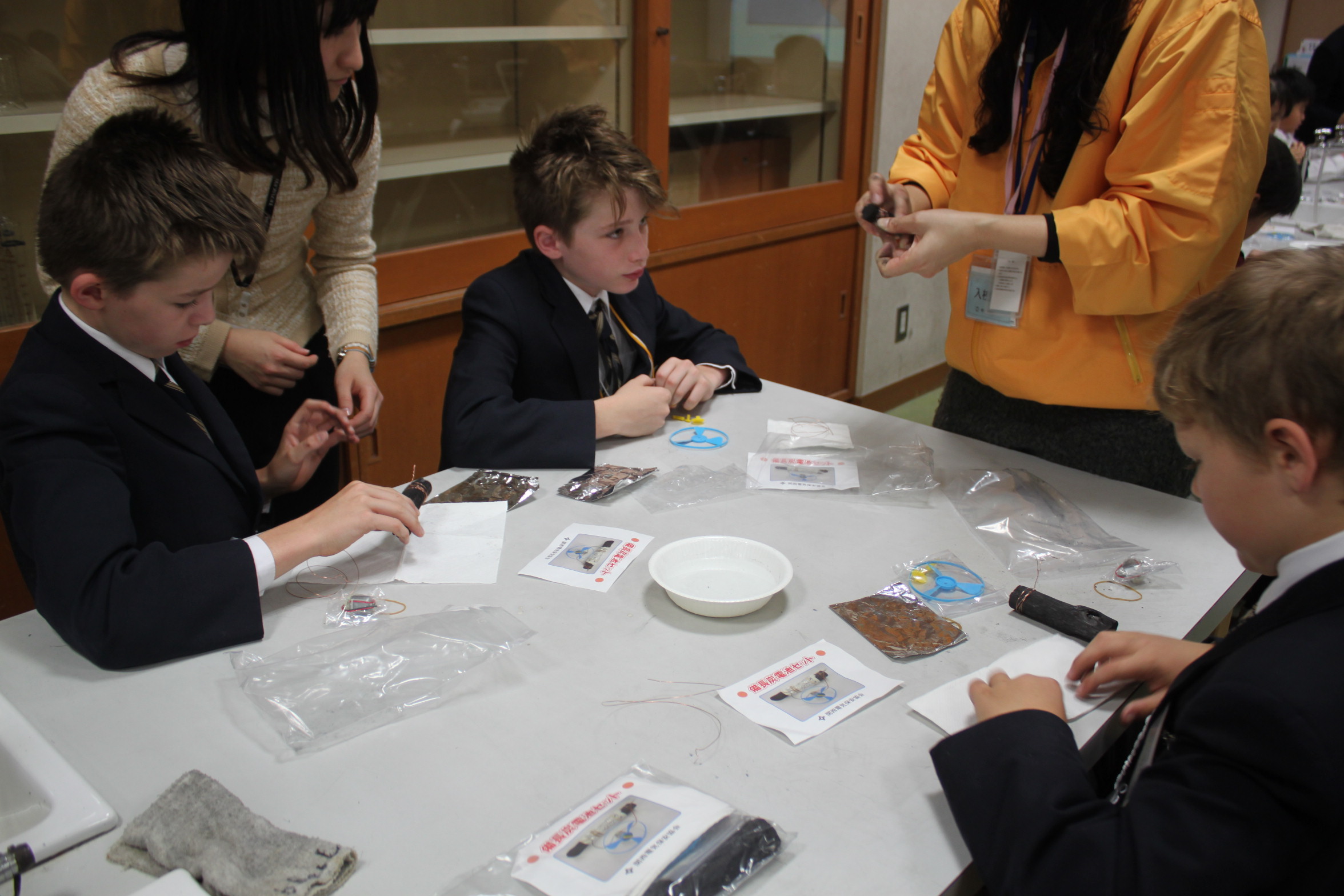 理科の出前授業がありましたが、アーミデールスクールの児童たちも一緒に授業を受けました。