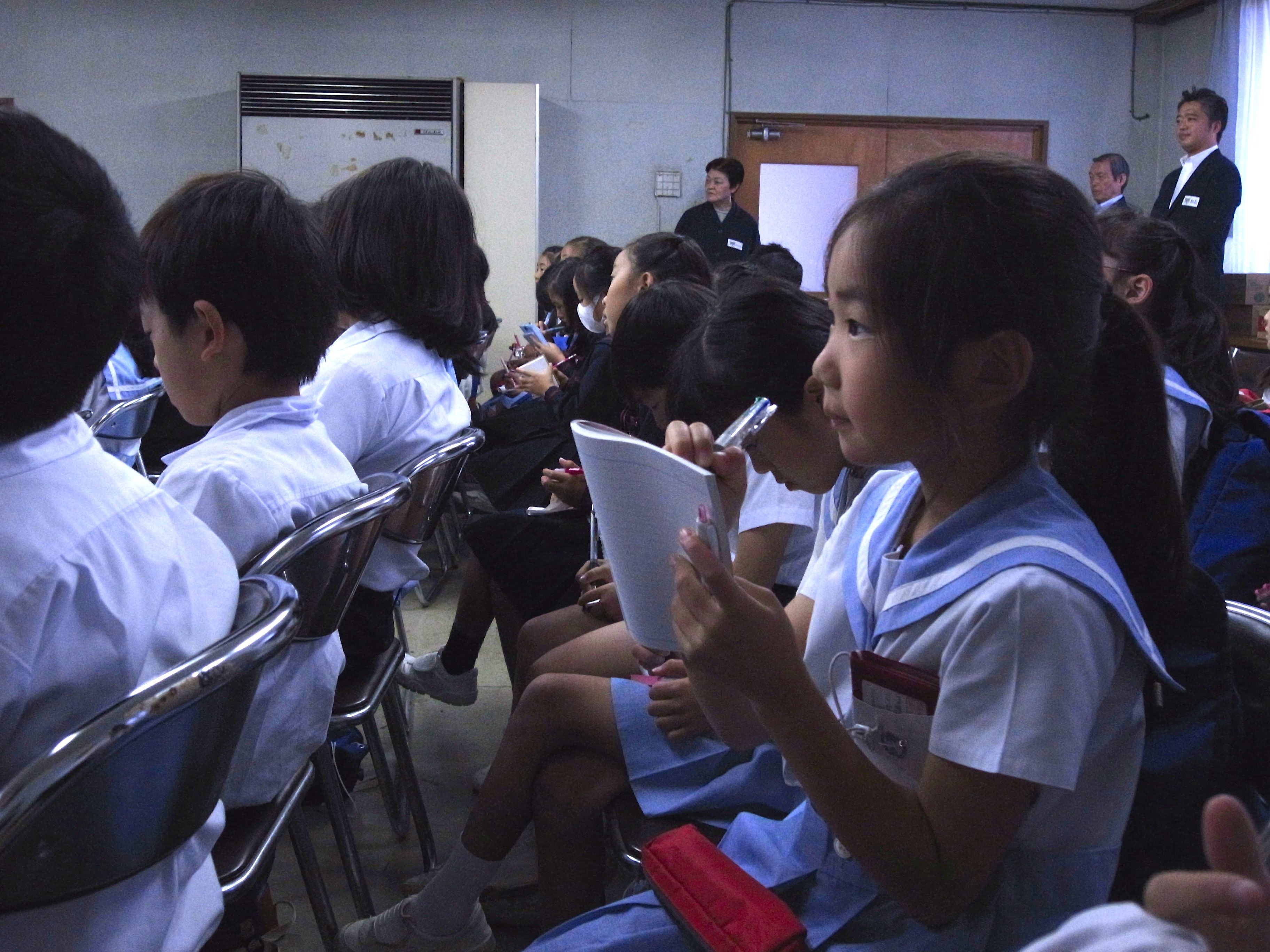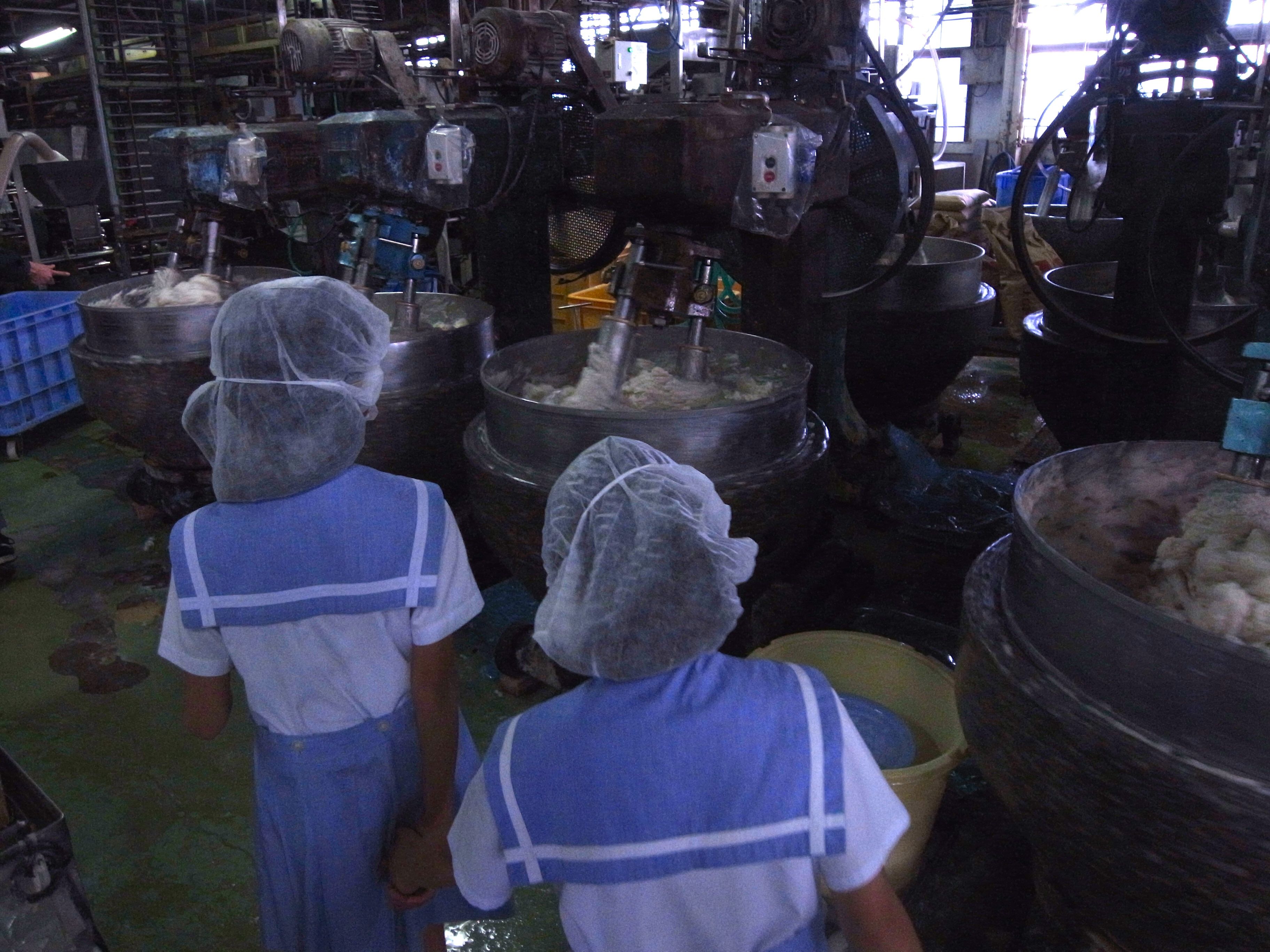 たくさん機械に児童たちは驚いていましたが、更に驚いたことに石臼で材料をひかれていた事驚いていました。会社の方は、「美味しく作るには、機械だけでなく、人の手や伝統的な製法が必要」とおっしゃっていたことが印象的でした。