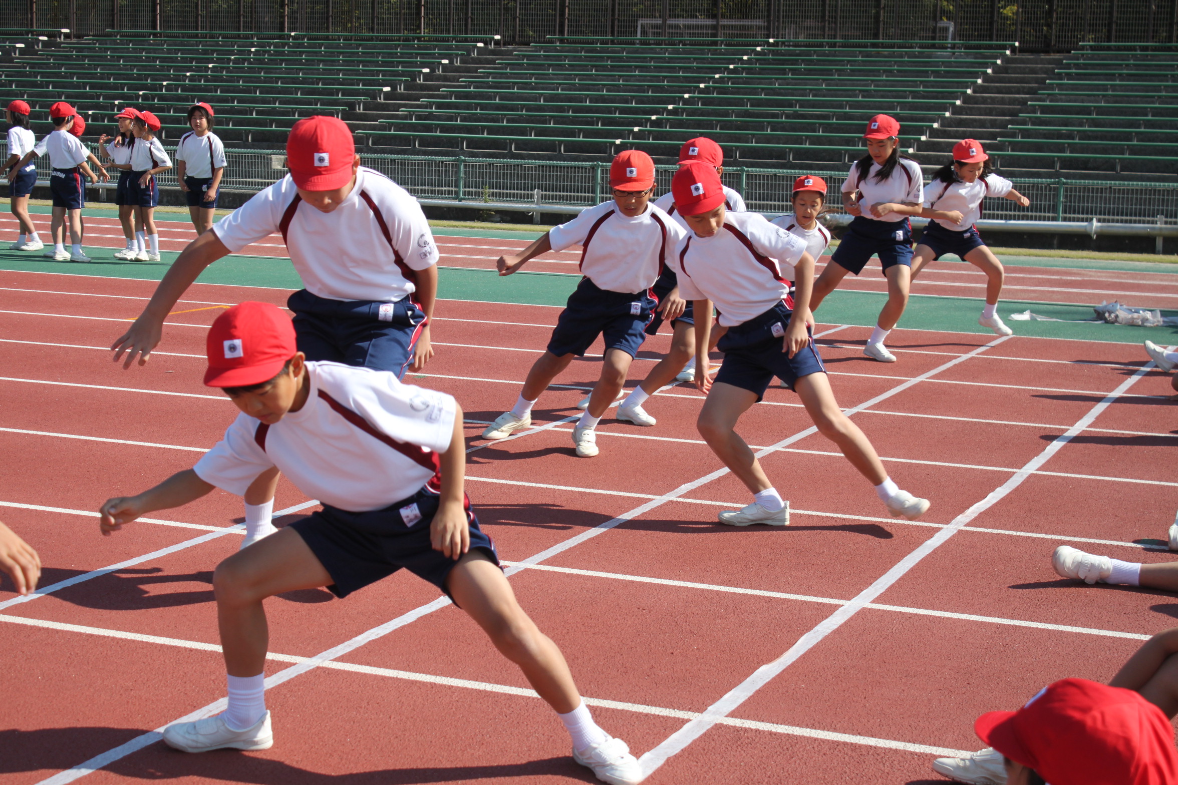 児童たちは元気に50m走をしたり、反復横跳び、上体起こしなどをしたりして、