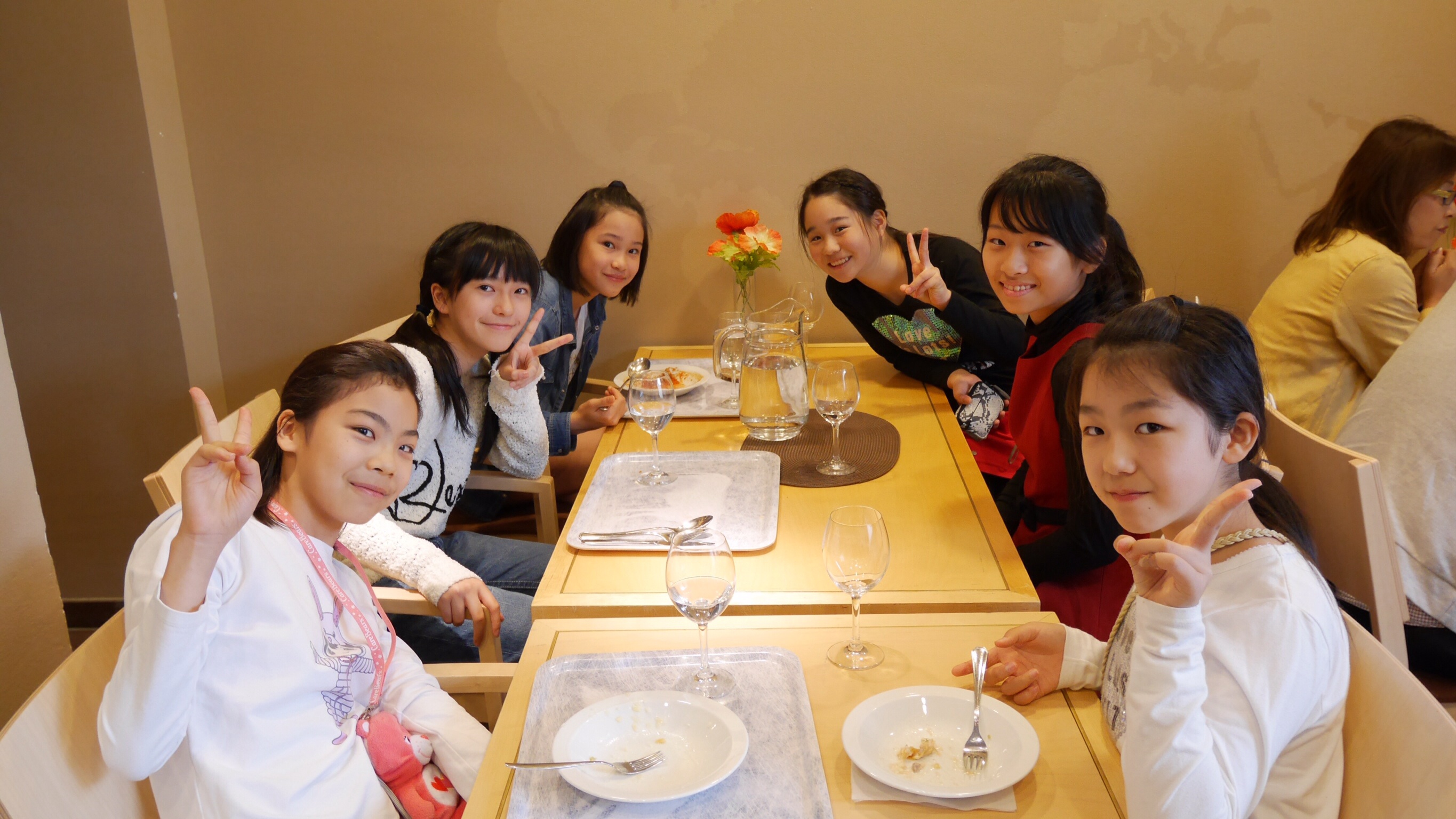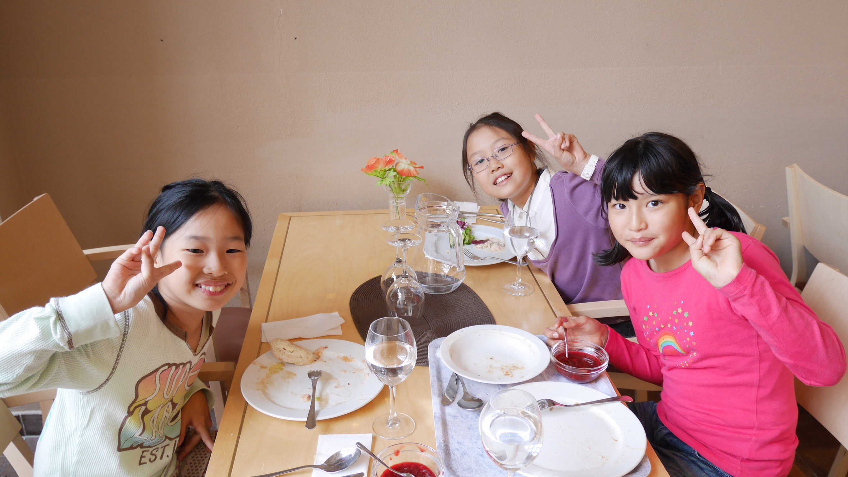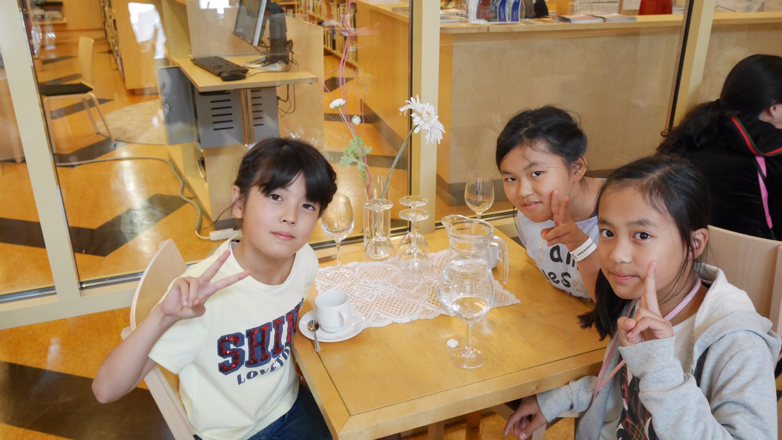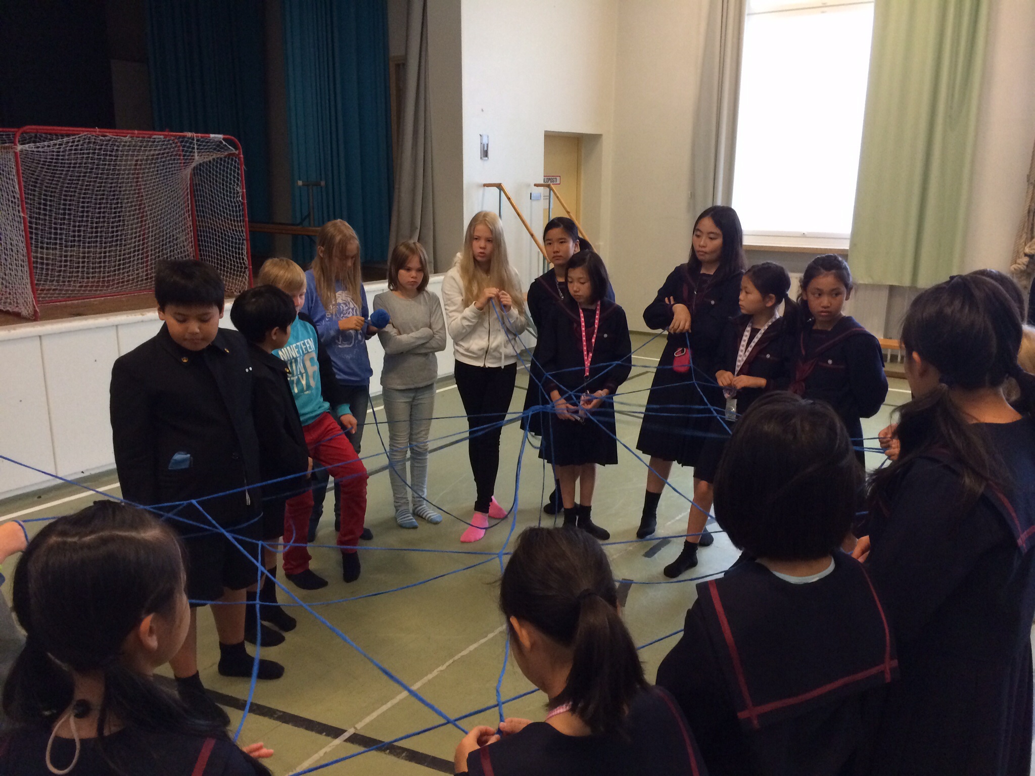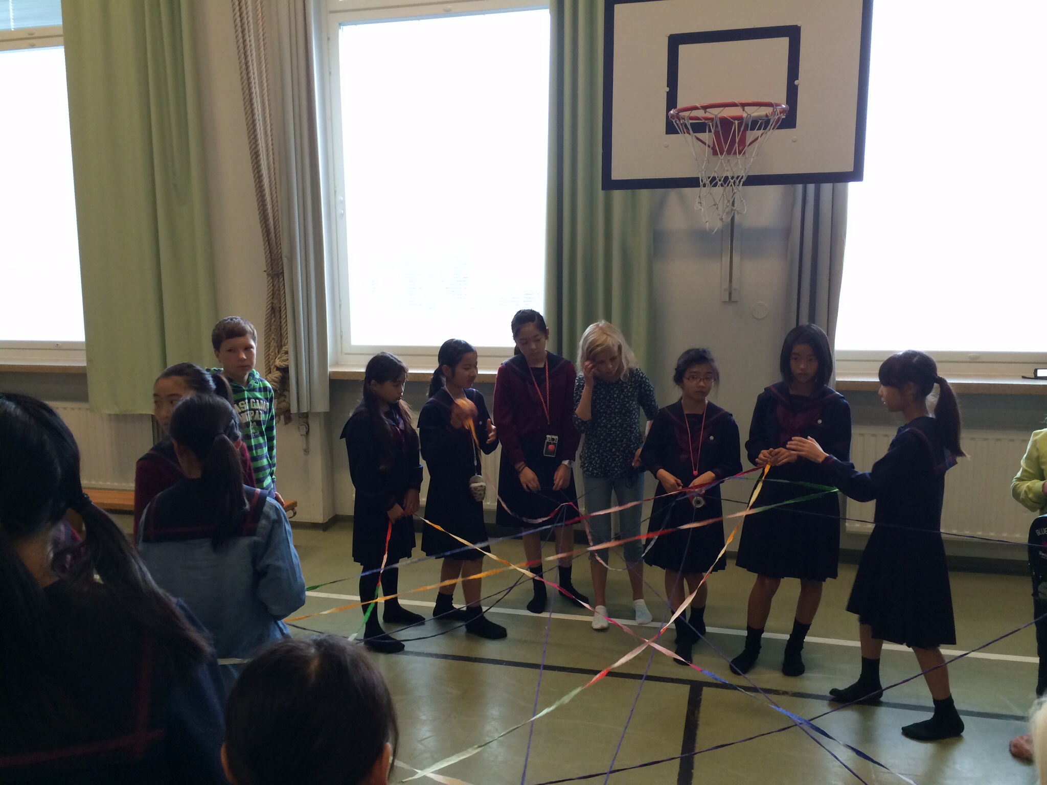午前中の授業を終えてランチタイムになったのが11:00過ぎでした。朝食がオートミールの簡単なものが中心のフィンランドでは早めのランチタイムだそうです。ランチルームでは品目は限られていますが、バイキング形式のもので自分の好きなものを好きな量だけ食べるものです。ランチの他におやつタイム、夕食、夕食後にさらにティータイムと計5回を軽く取るようです。昼食後ロバニエミ市庁舎市長さんを表敬訪問し、市長さんの前で学院祝歌を斉唱。市長さんから歓迎の言葉をいただきました。そのあと市庁舎のランチルームで鮭のスープとパンをいただきました。その後の市の図書館で日本の漫画を発見。バスで小学校に帰りそこでホームステイ先のご家族、学校関係者へのプレンゼント交換、児童代表のスピーチが行われました。こうして二日目が終わりました。今日の気温も16度。午後からは雨も止み雲の間から晴れ間の見える一日でした。