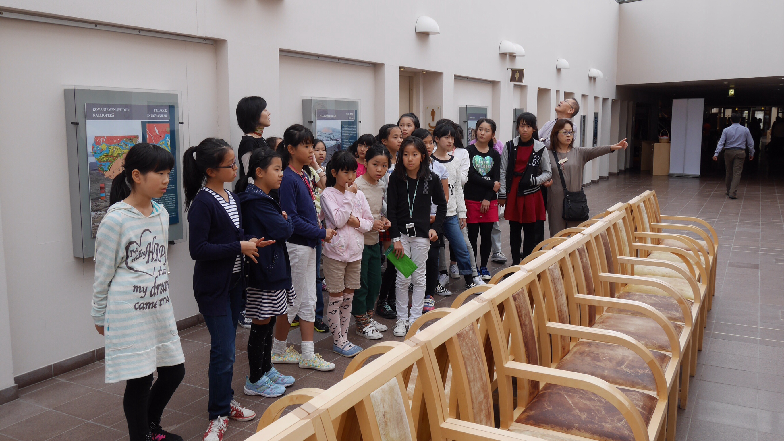 8/21 朝、学校に全員元気に集合しました。ホームステイにも慣れてきたようで、楽しいという感想が多かったです。午前中、ハイキングのグループとロバニエミ市に文化的な博物館見学とに分かれた体験をしました。博物館見学チームは最初PILKEという森林博物館に行きました。フィンランドは森林に囲まれ森林を大切に生活に有効利用しながら生きてきました。木、森を考え、楽しく遊びながら学習する博物館でした。ほとんど全てがフィンランドの木材を使って作られた近代的な建築物です。その後、アルクティクムというラップランド郷土博物館と北極圏センターが並列されている博物館に行きそこで昼食を取りました。昼食後、ラップランドの先住民族やロバニエミの歴史、北極圏の生物やオーロラなどの自然現象を映像や剥製展示などで楽しく学びました。6万人の都市にある博物館とは思えないとても素晴らしい博物館でした。ロバニエミがラップランドの中心都市であることが再確認できました。