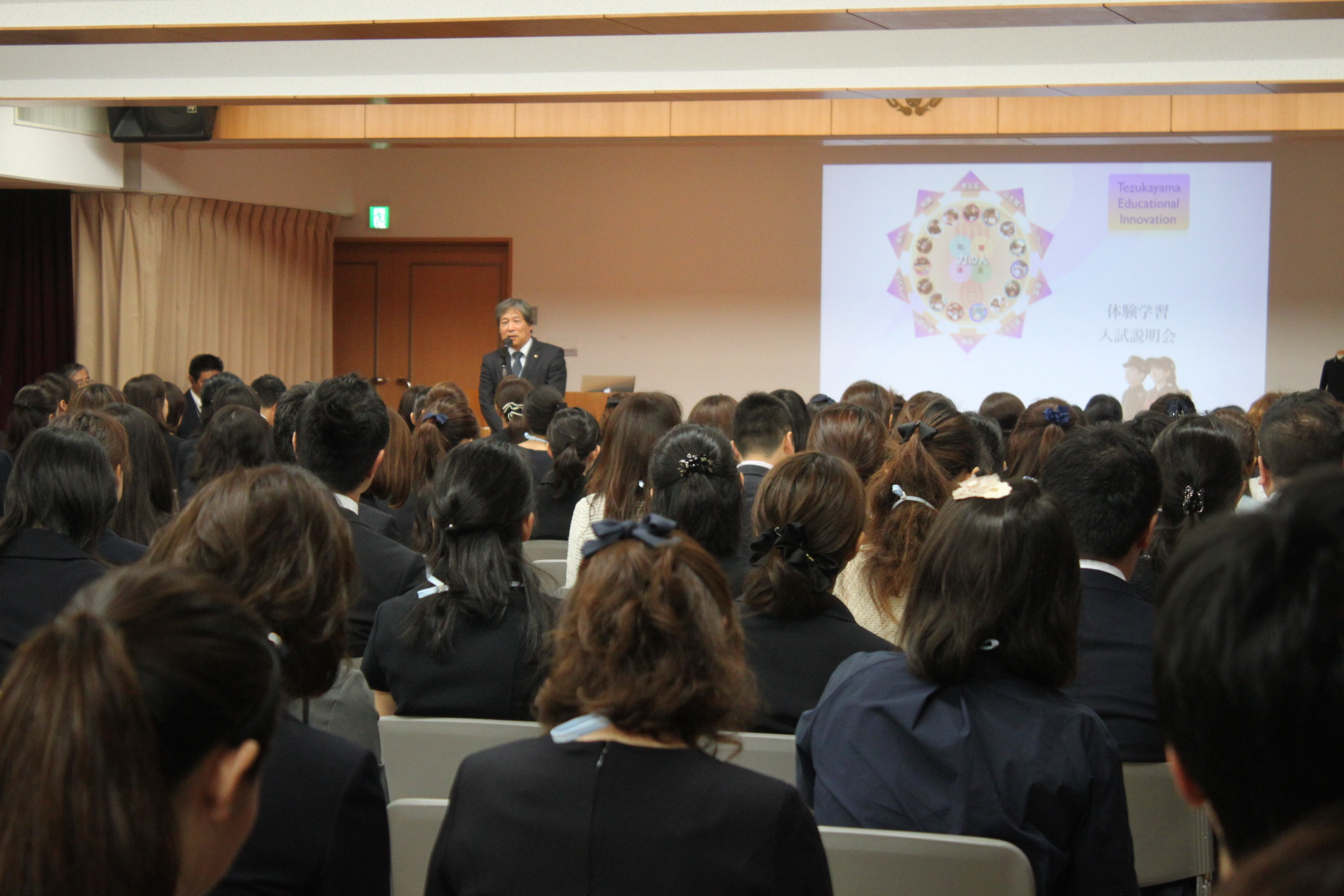 多目的ホールでは、学校や入試についての説明があり、保護者の方々は熱心に聞いておられました。