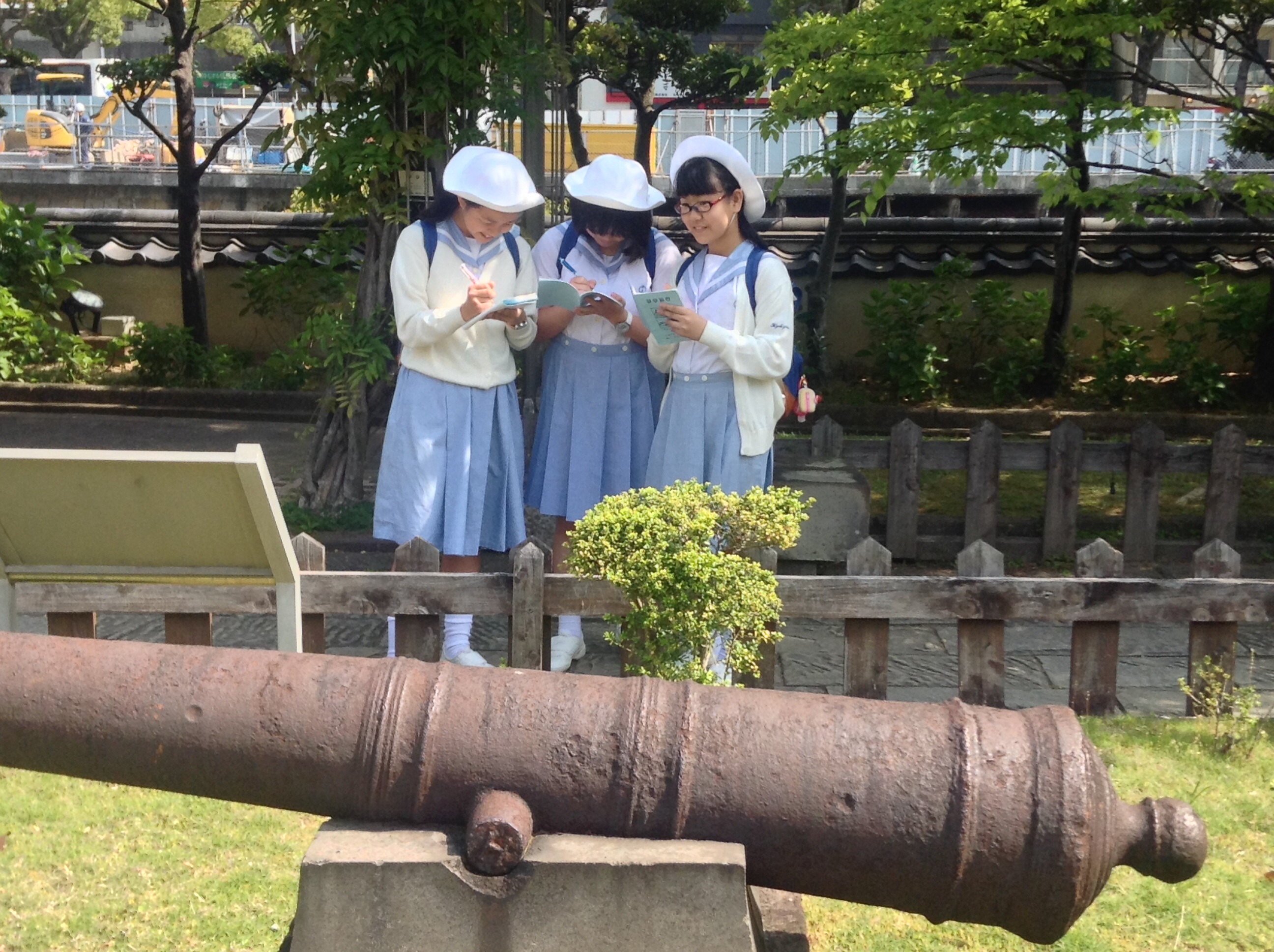 9:00に予定になかった出島を見学しました。鎖国時代の唯一の交易の場所であった出島。幾つかの建物が再現され約1時間見学をしました。
