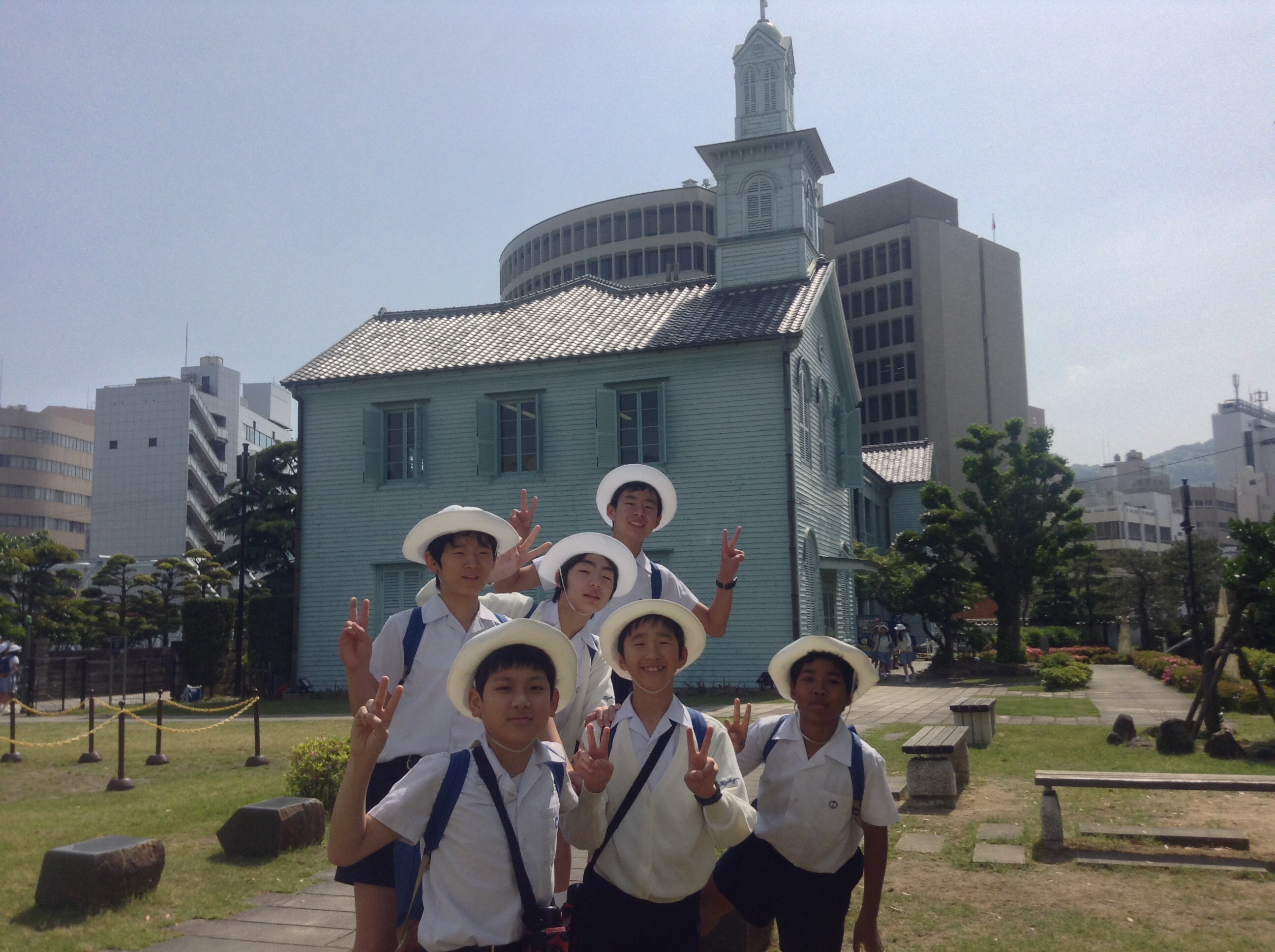 10:30にステンドグラスの美しい大浦天主堂でしばらく言葉のない祈りの空間で過ごしました。
