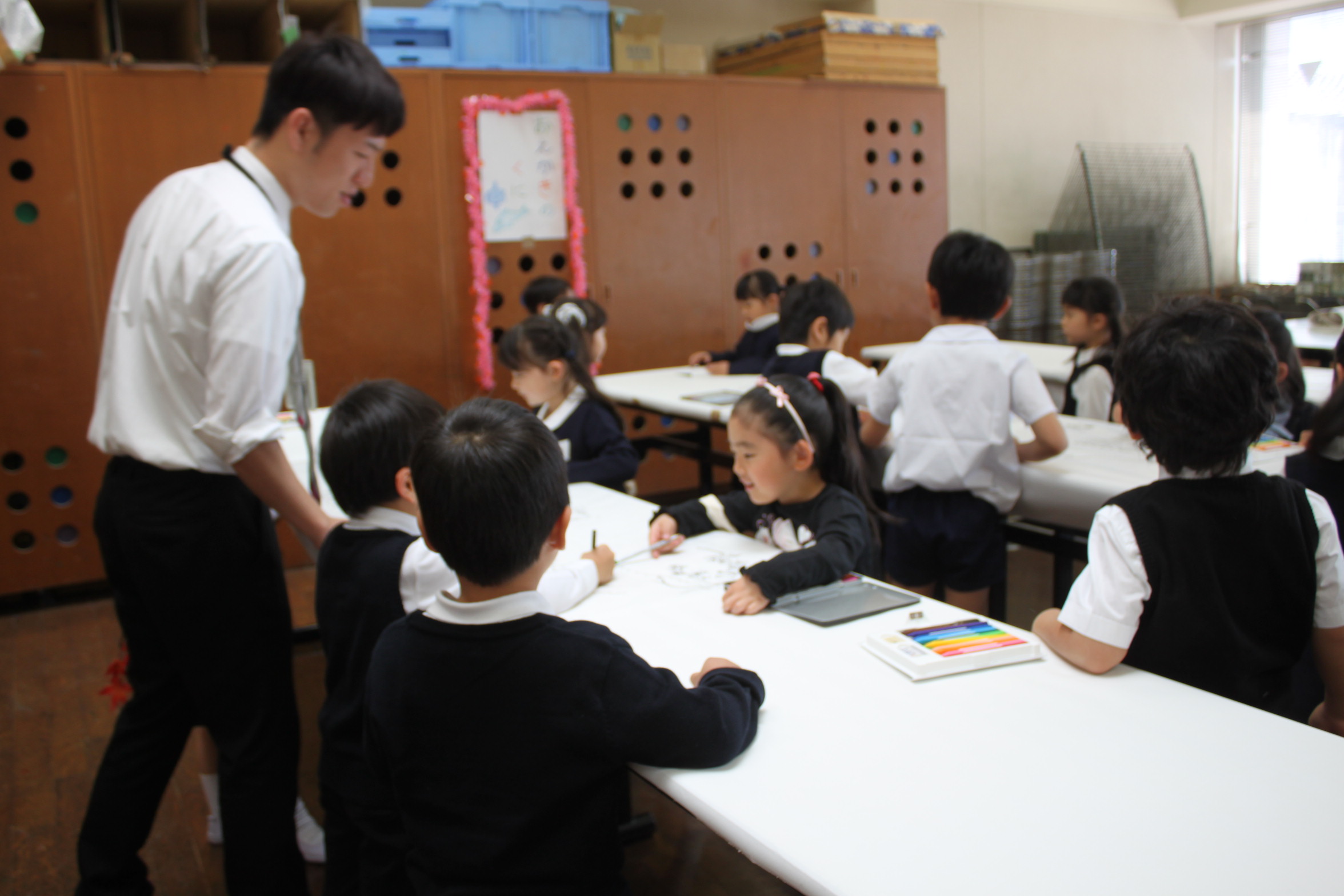 学校探検ツアーでは、園児のみんなと学校の色々な場所を探検し、