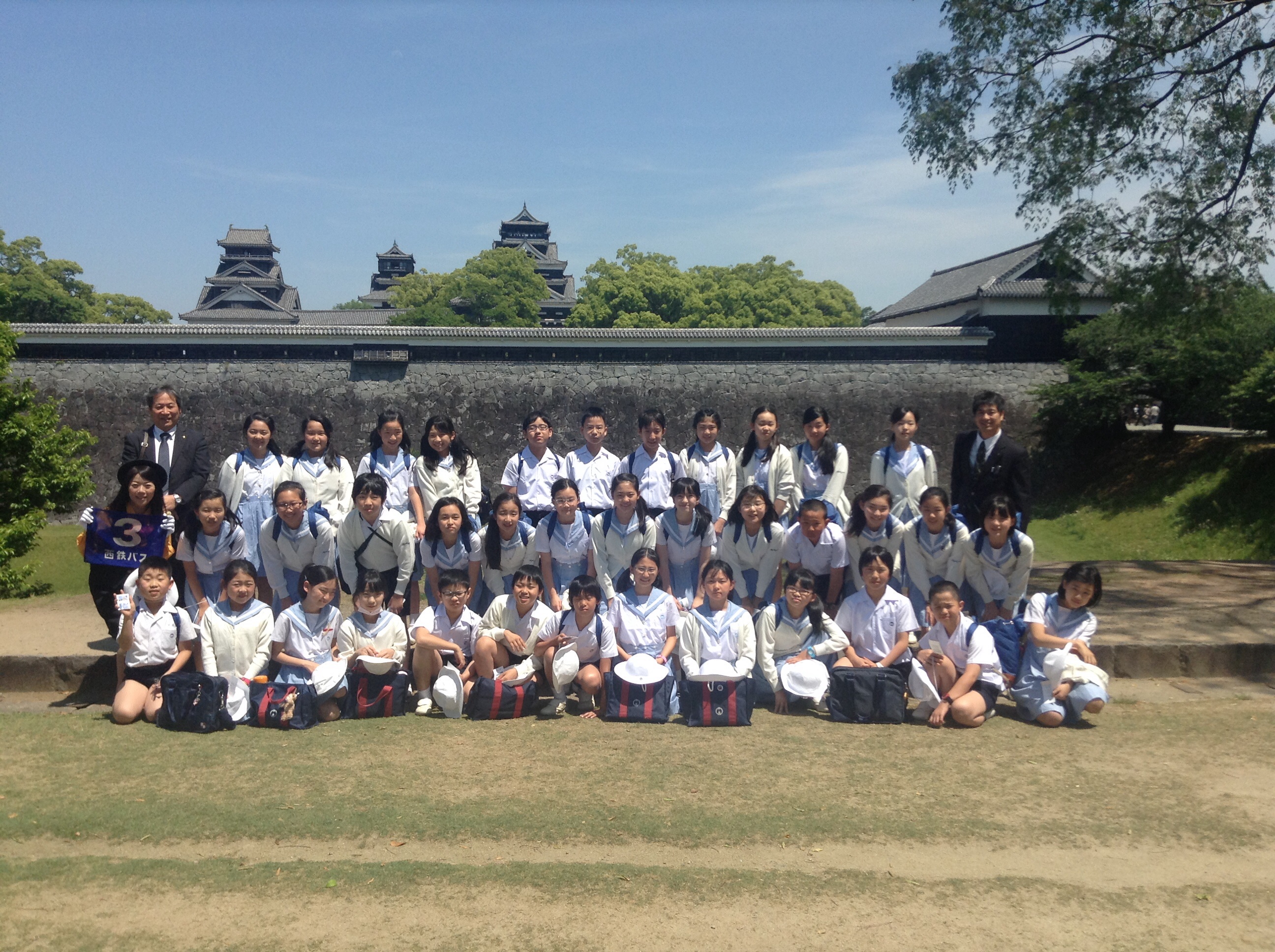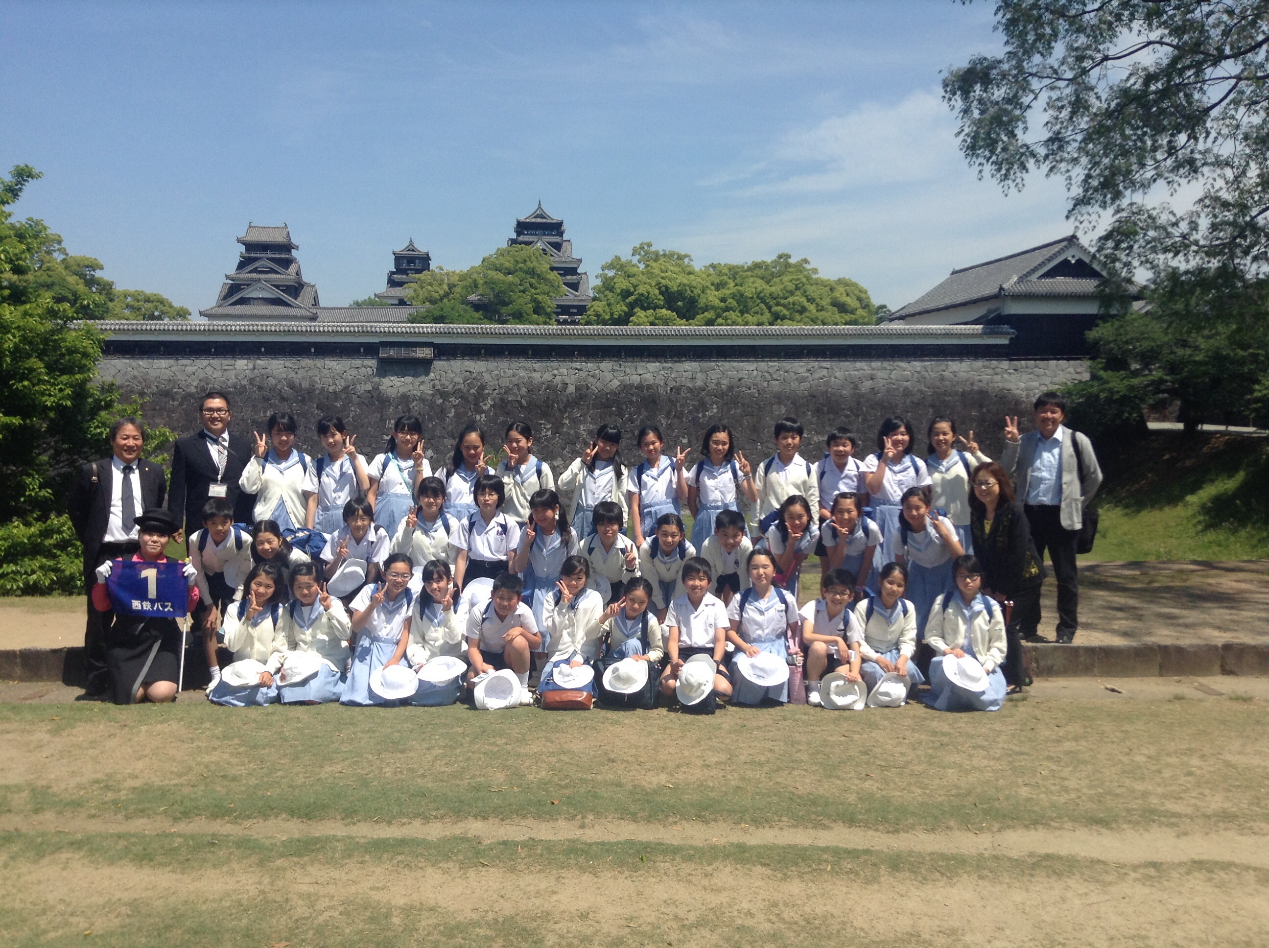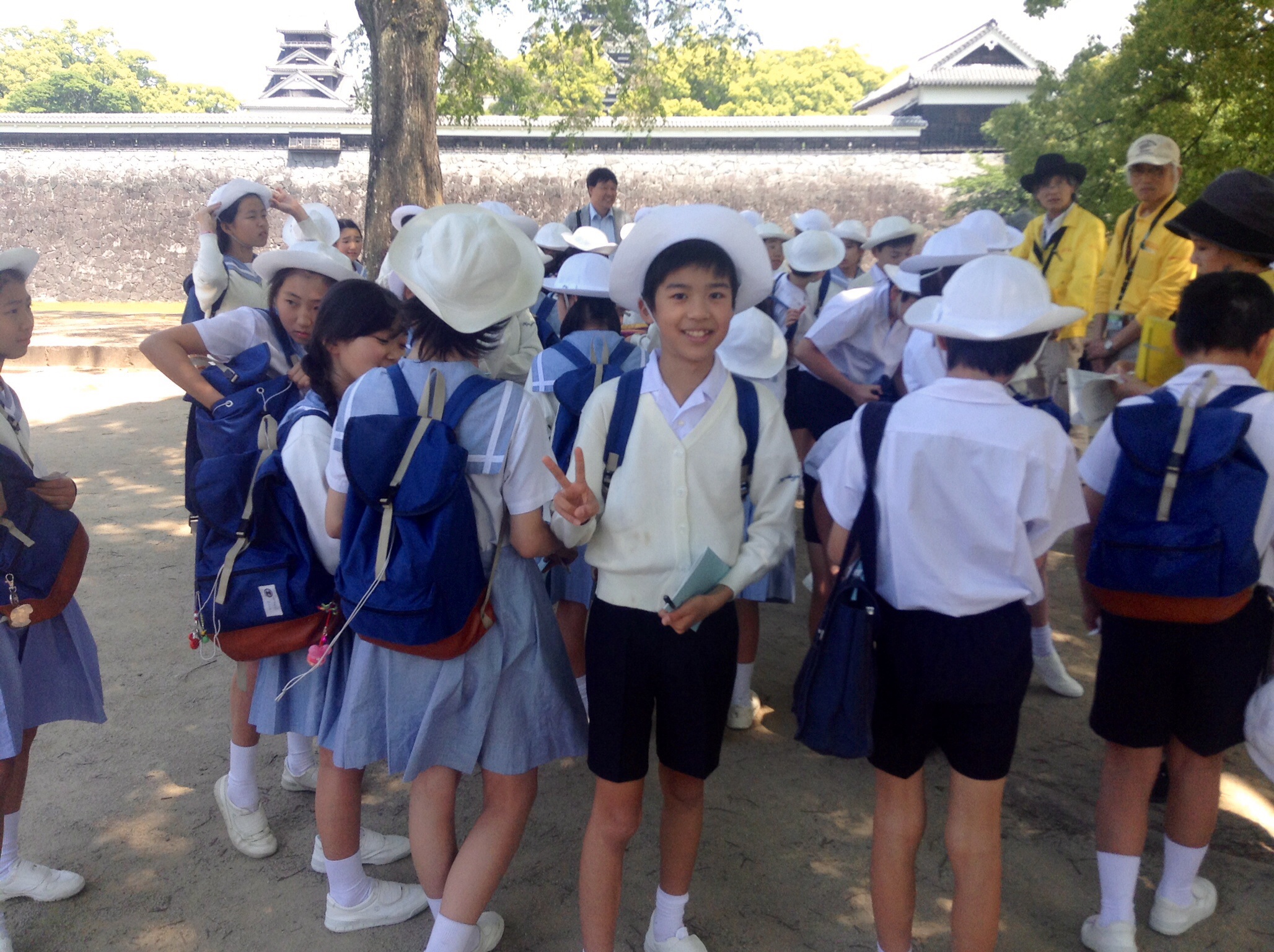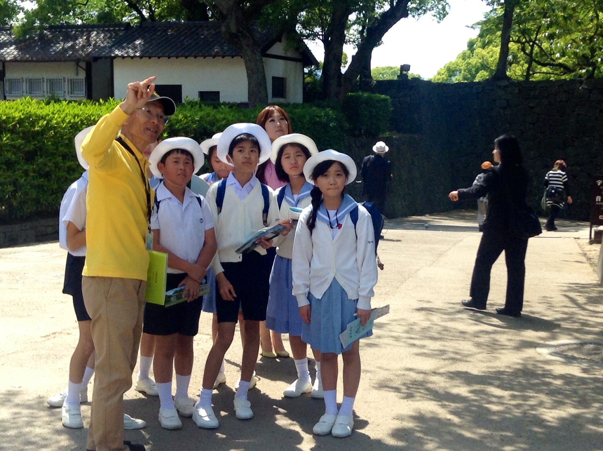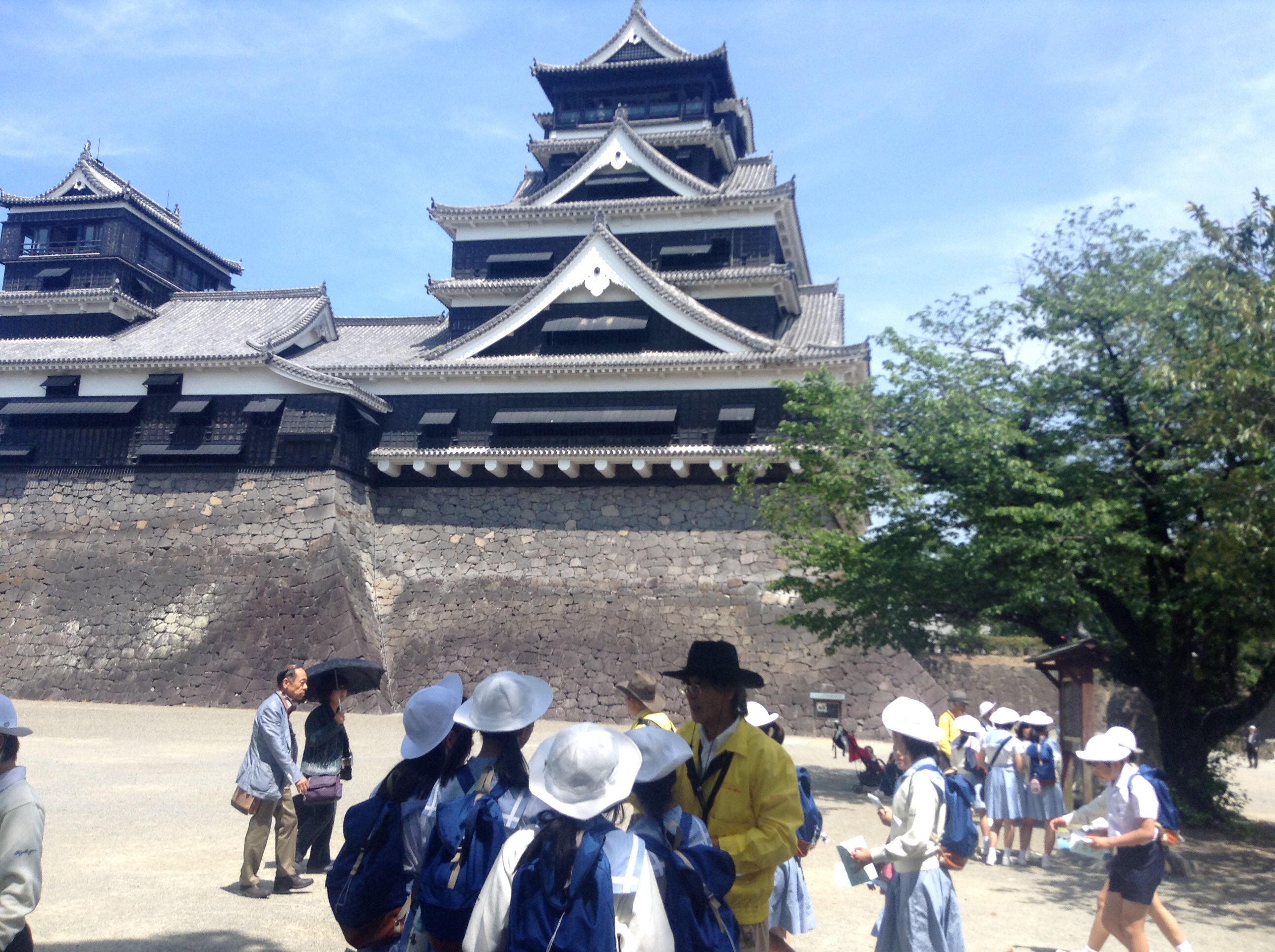 青空の広がる快晴の中、地元ボランティアの方々について、6名程度の班で、熊本城を案内してもらいました。