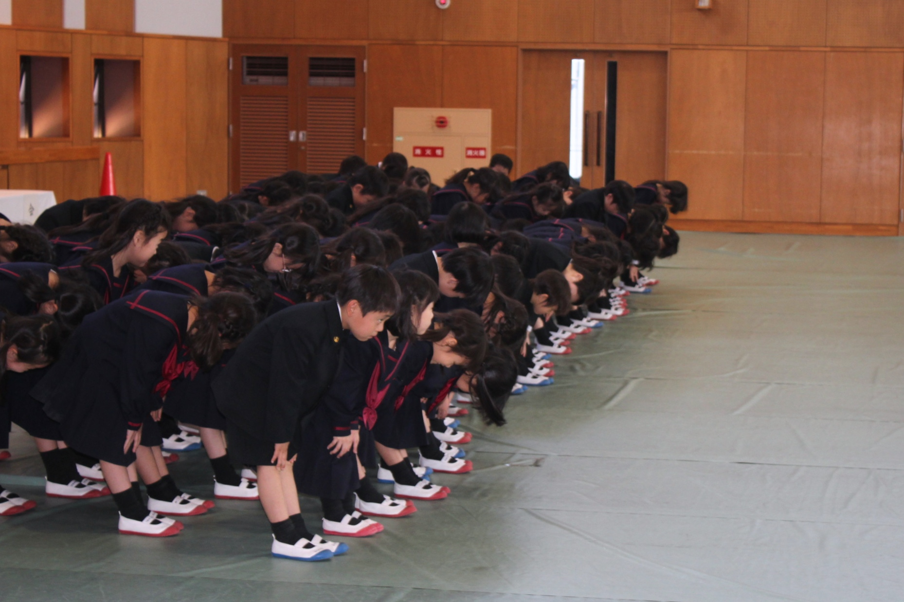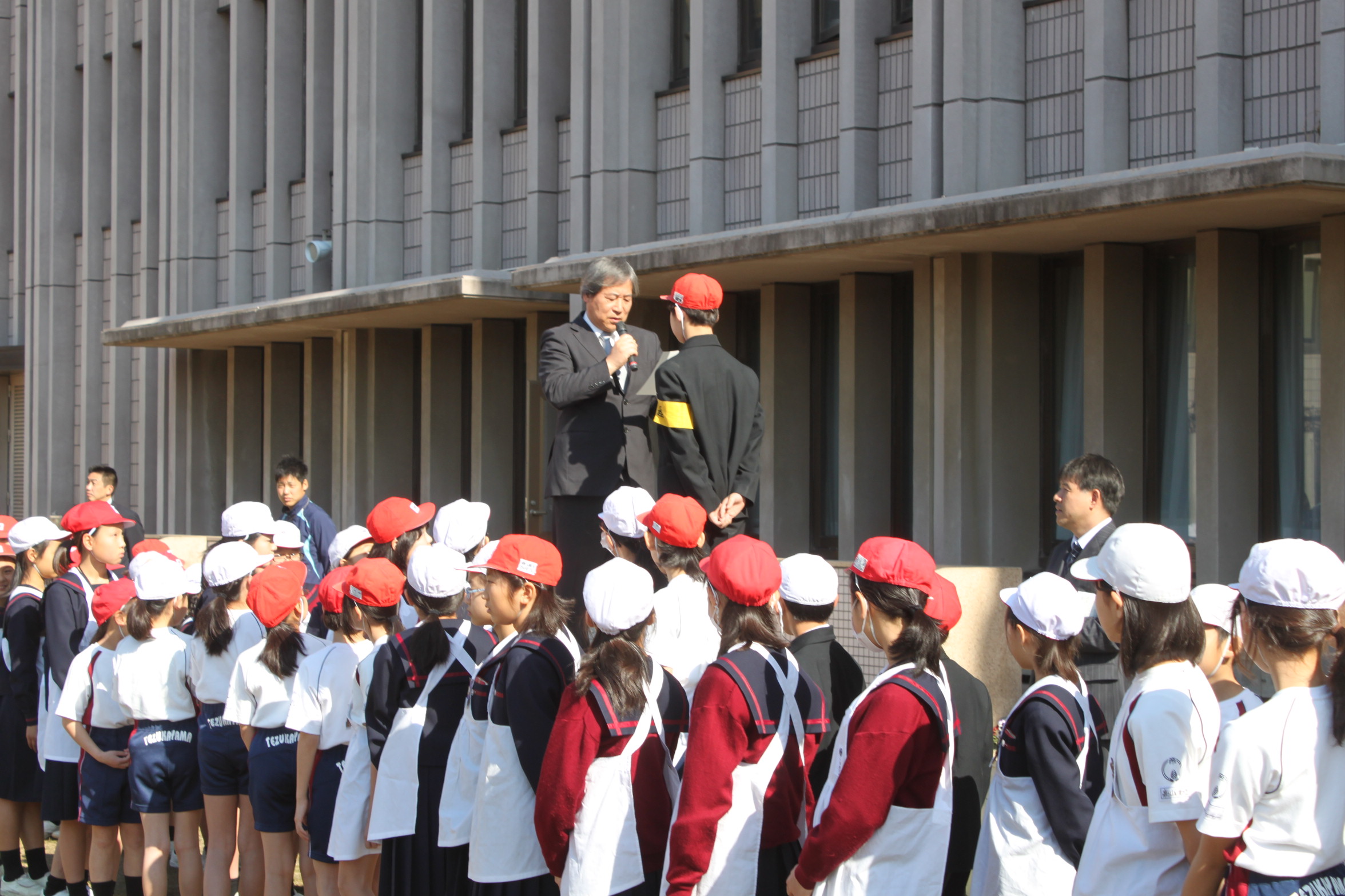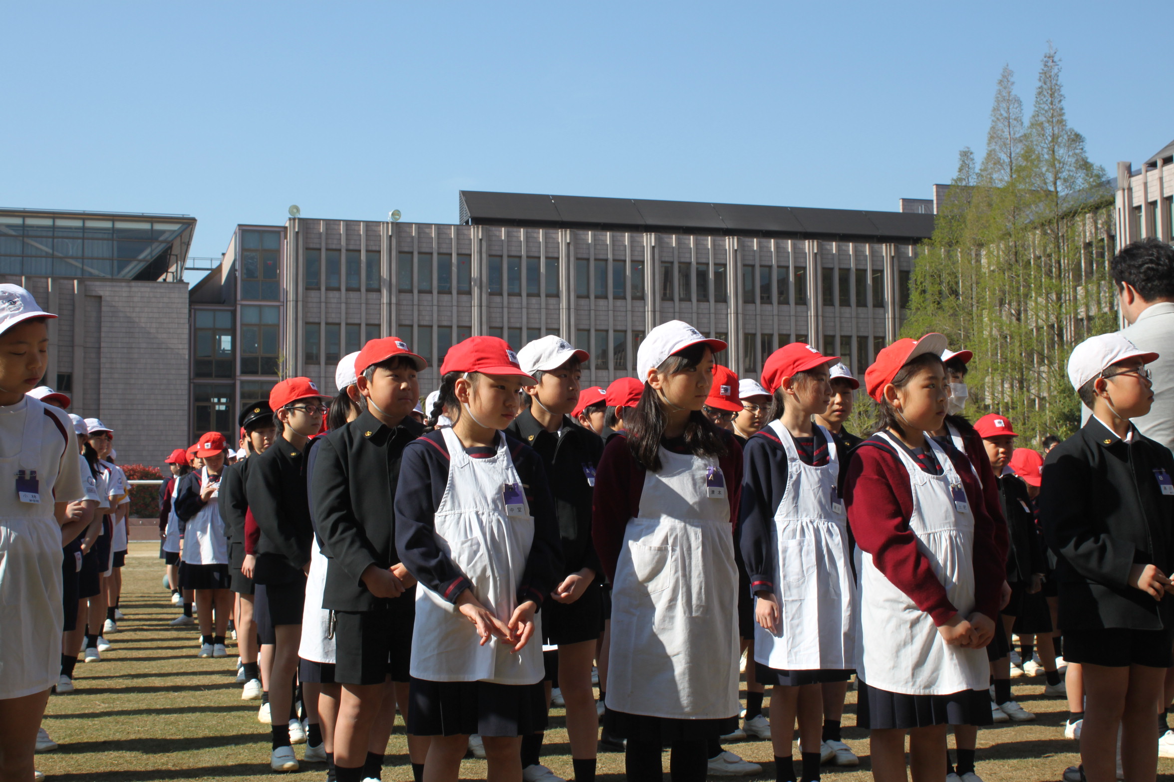 今日は、全校生徒が新入生と初めて対面する対面式が行われました。2年生から1年生にチューリップのプレゼントがありました。1年生はうれしそうにしていました。6年生は、1年生のお世話を頑張ってくれました。