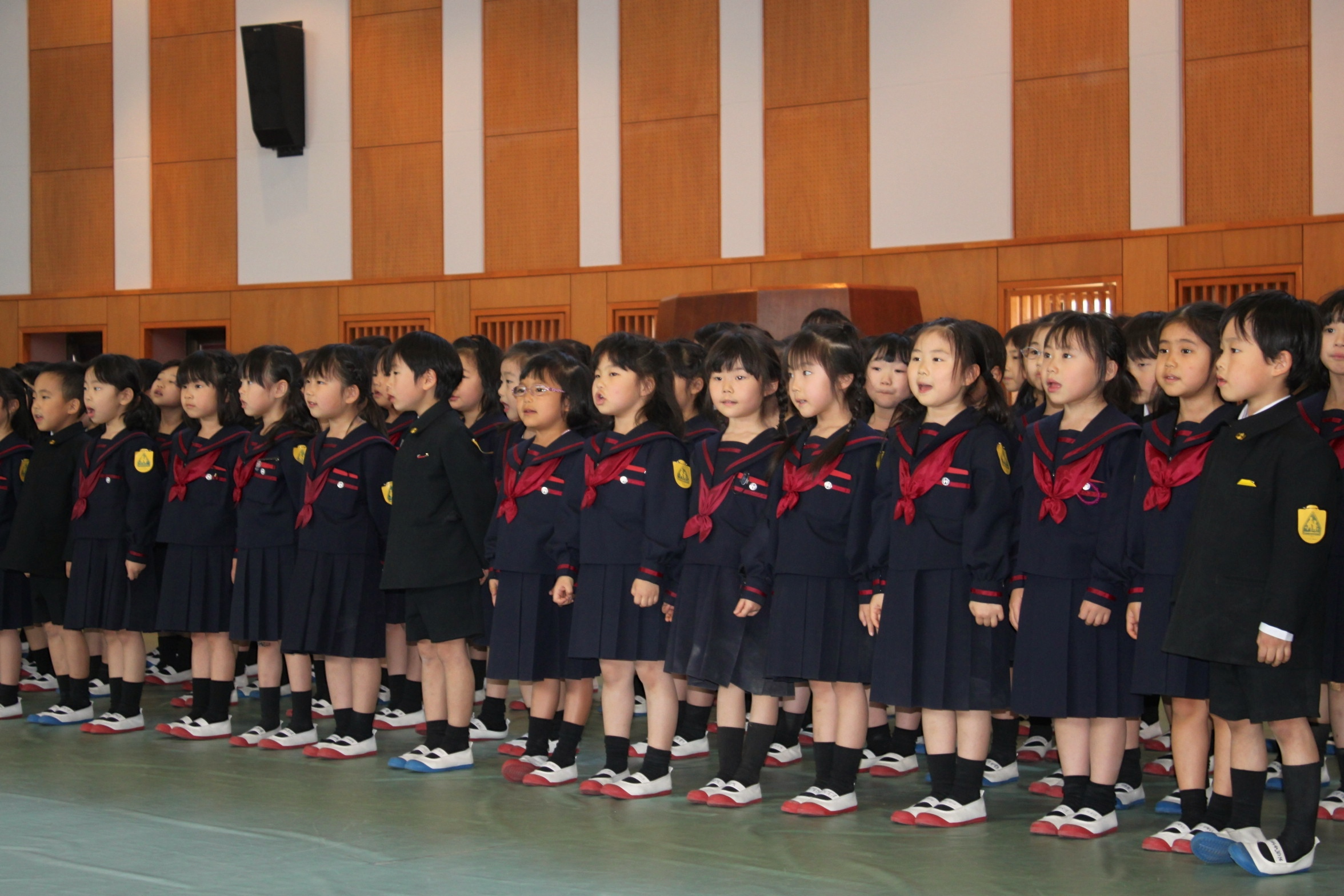 PTA総会では、1年生が歌の発表を行いました。 曲目は、「いちねんせい」「そろそろはるですよ」「さんぽ」の3曲です。かわいい歌声を聞かせてくれました。
