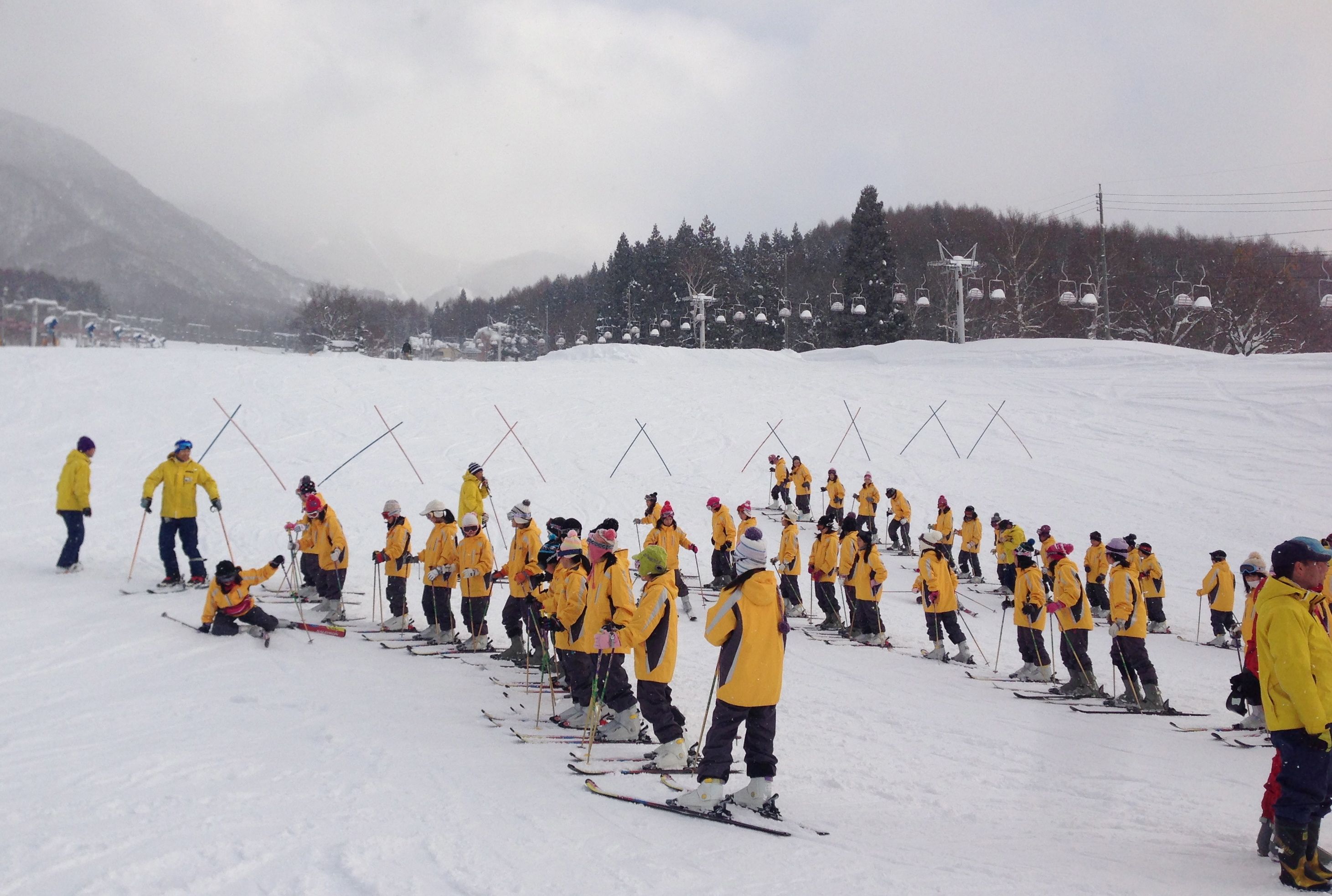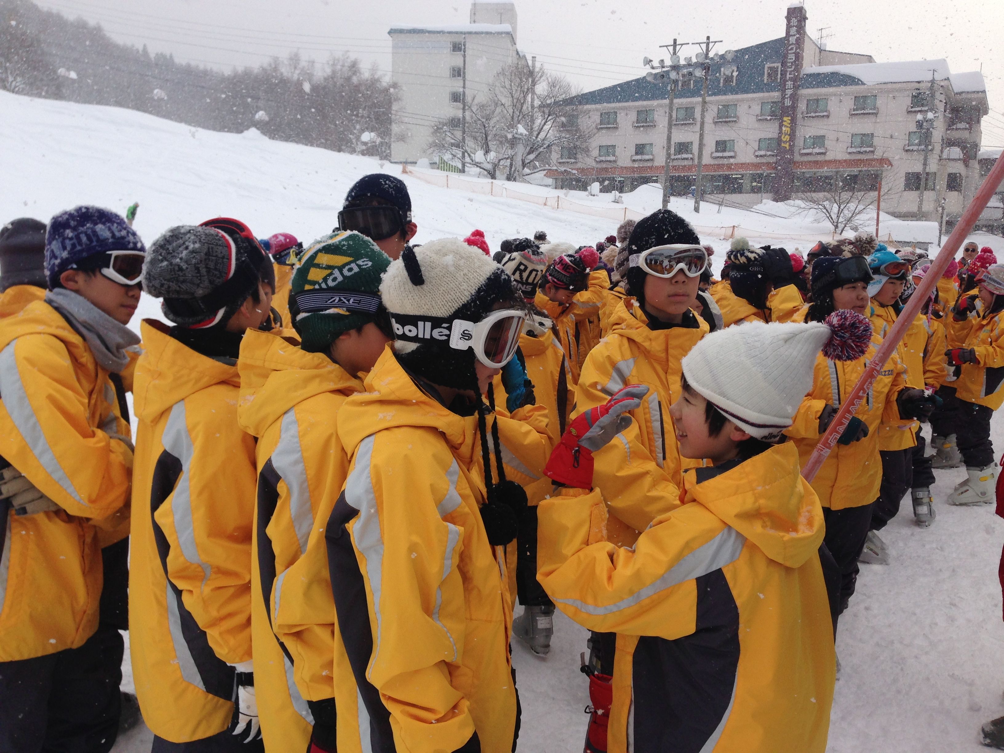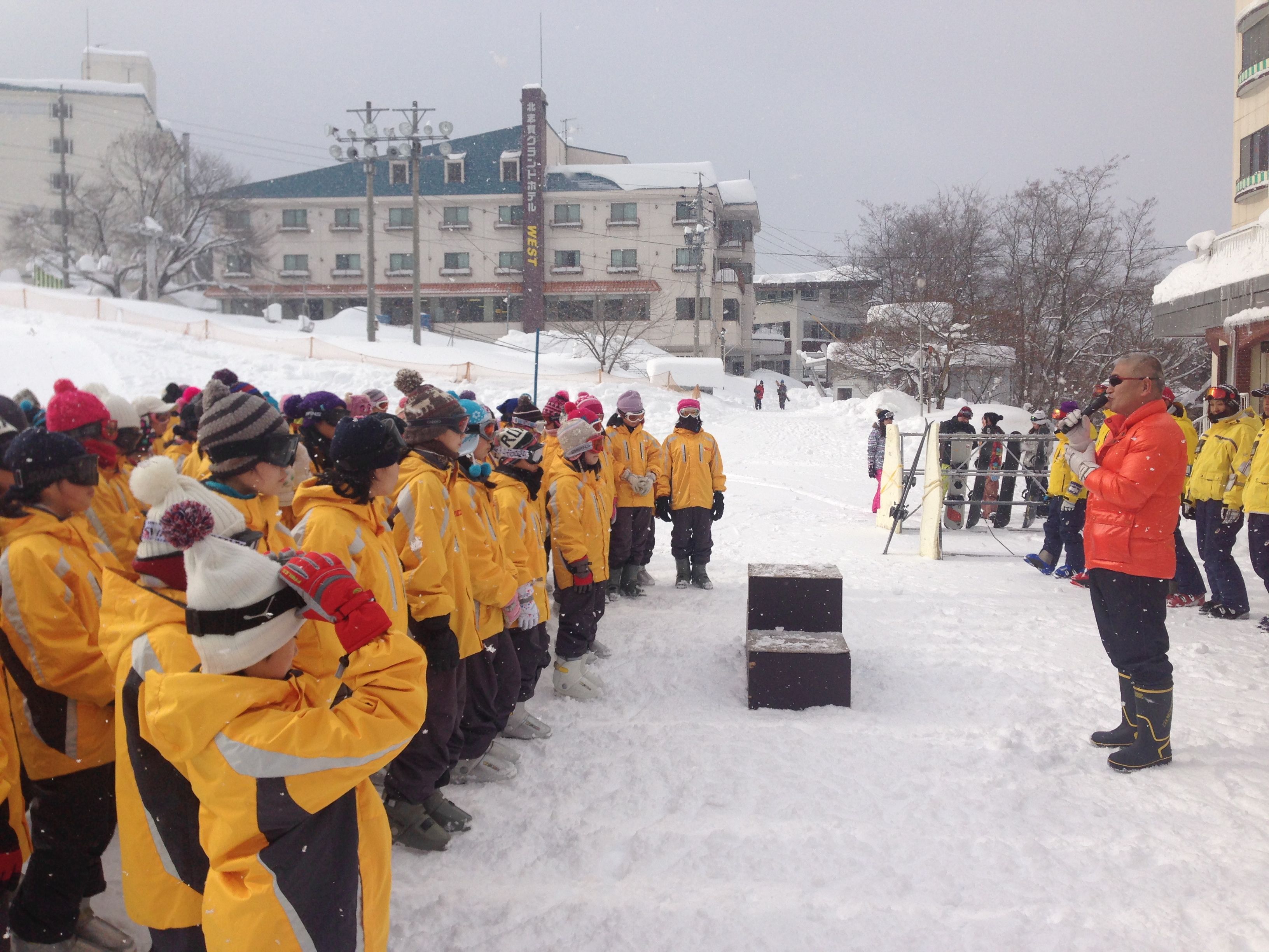 スキー練習会も二日目になりました。 けが人、体調を崩す児童は、1人もいません。 今日は、開所式が行われ、インストラクターの先生方の紹介がありました。お天気にも恵まれ、とても良いコンディションのなかスキーを練習しました。